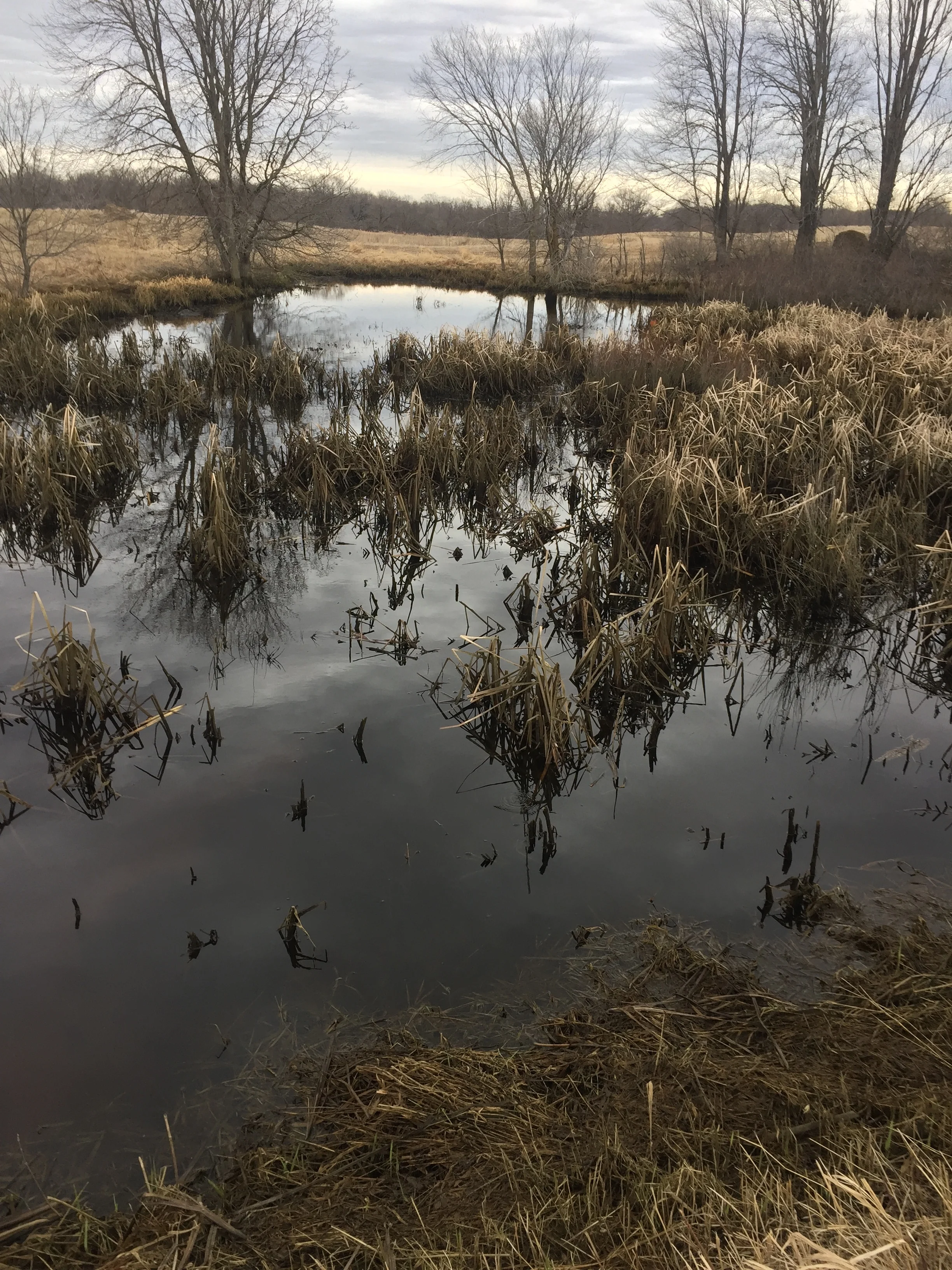 Duck legs (and wings) braised in red wine with wild rice pilaf and sautéed wild nettles.