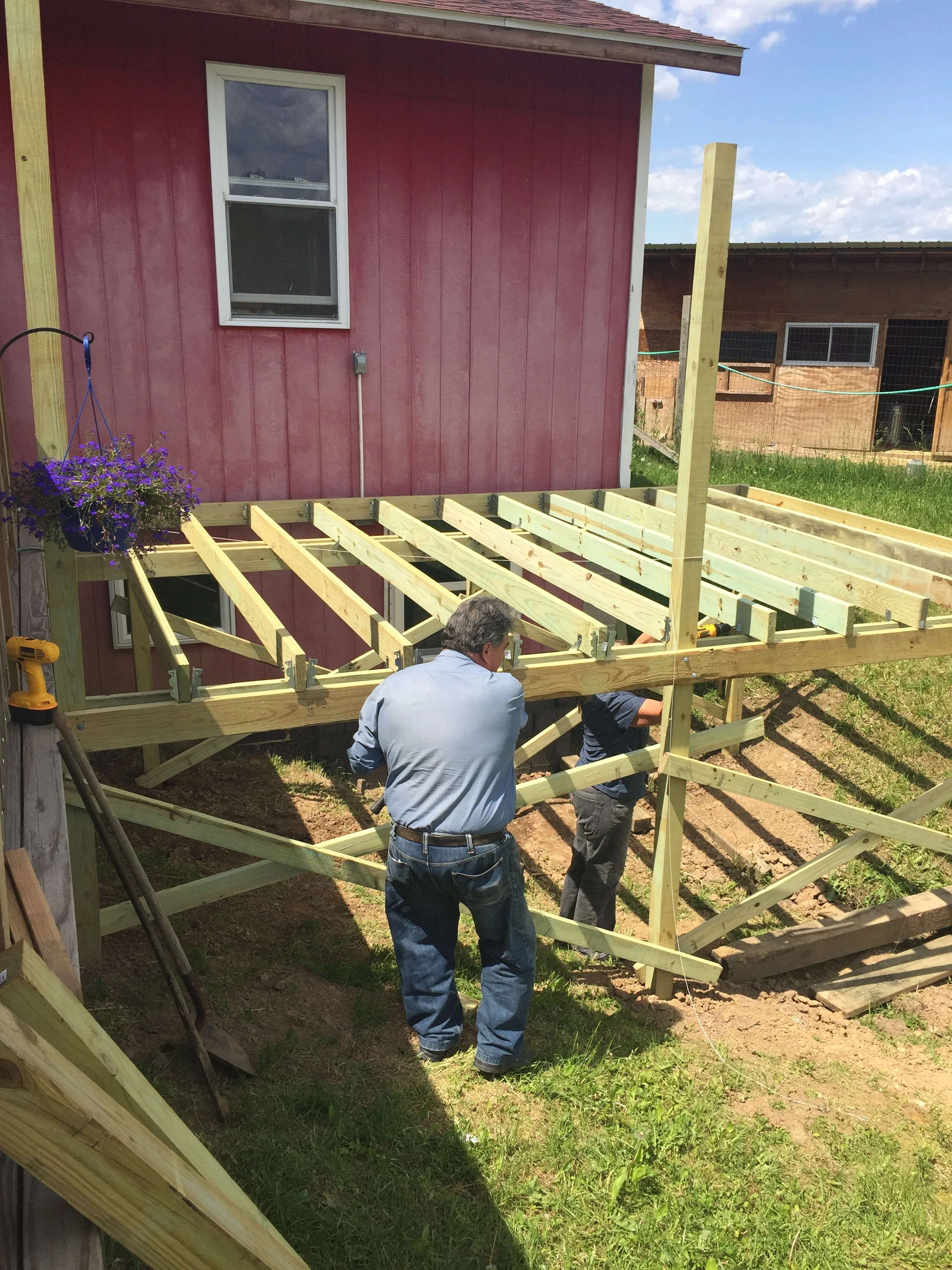 We will finish the deck over the rest of this summer, as we also work on finishing the wallboard and flooring in the addition. The deck will help with next year’s project of replacing windows. Dan and Jeni return to their home today, Wednesday. Michael is due to go and help our daughter and son in law move into their new home starting on Sunday.