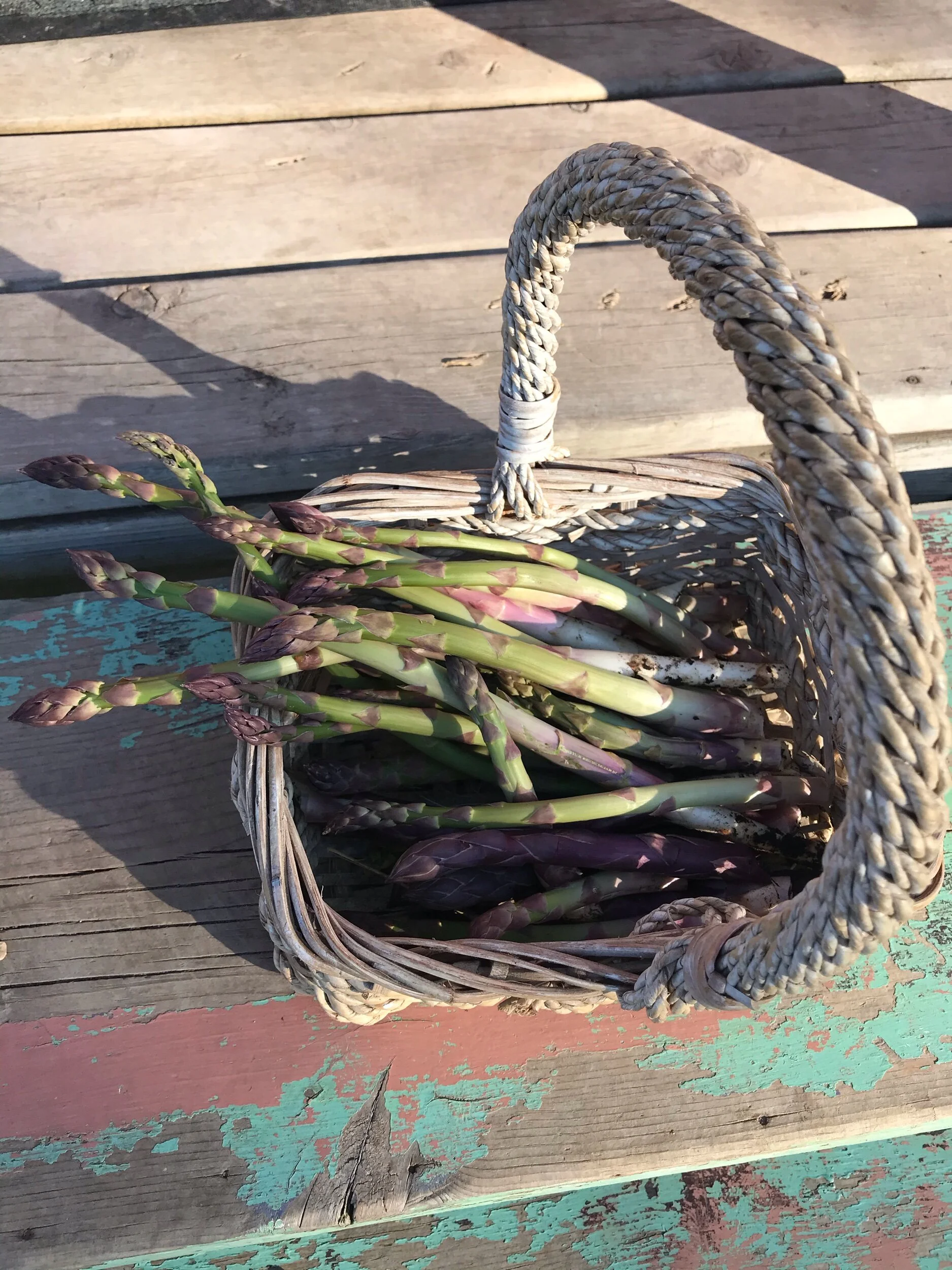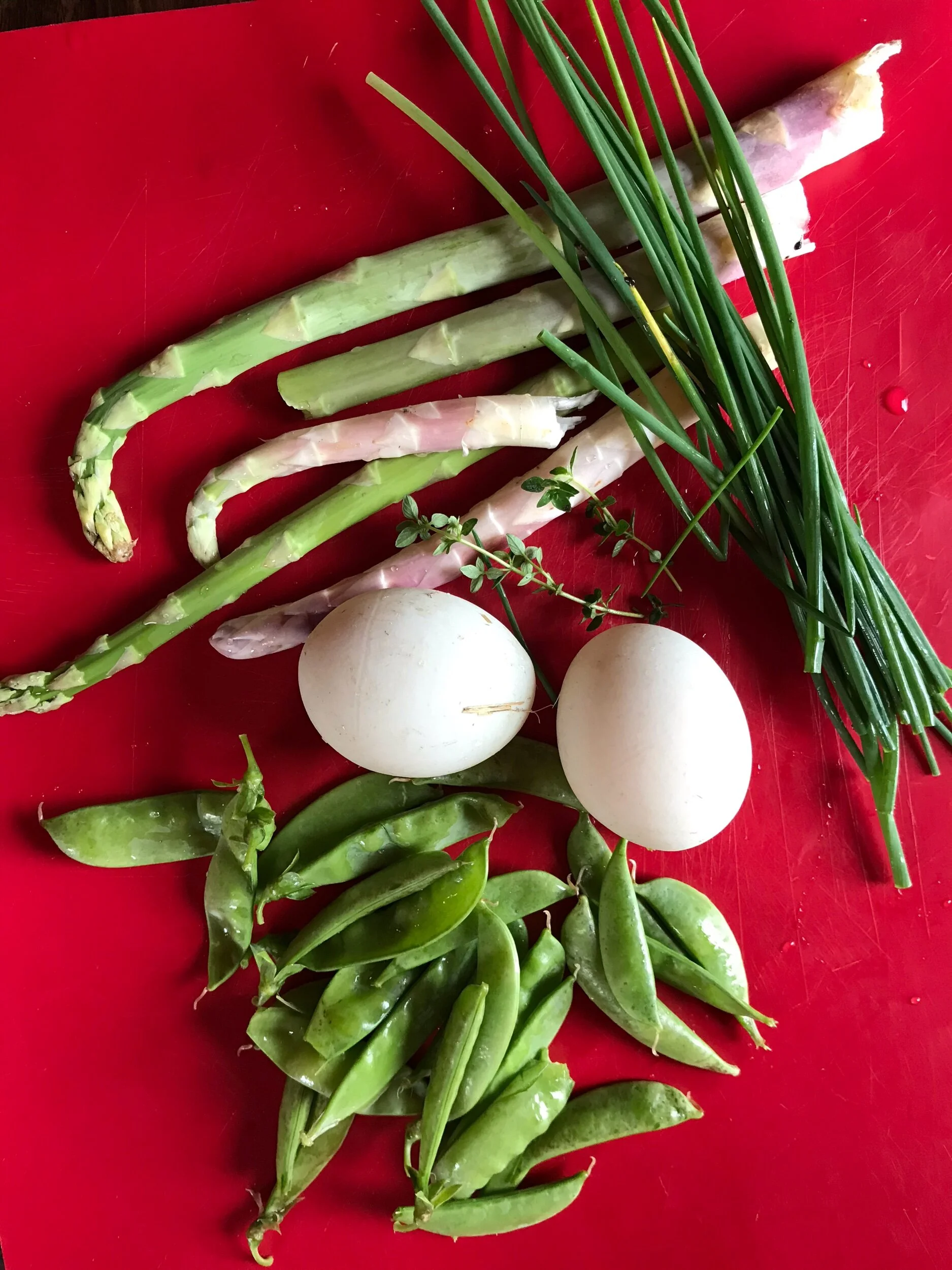 Breakfast fodder from the gardens. Okay, the peas wait for tonight’s dinner.