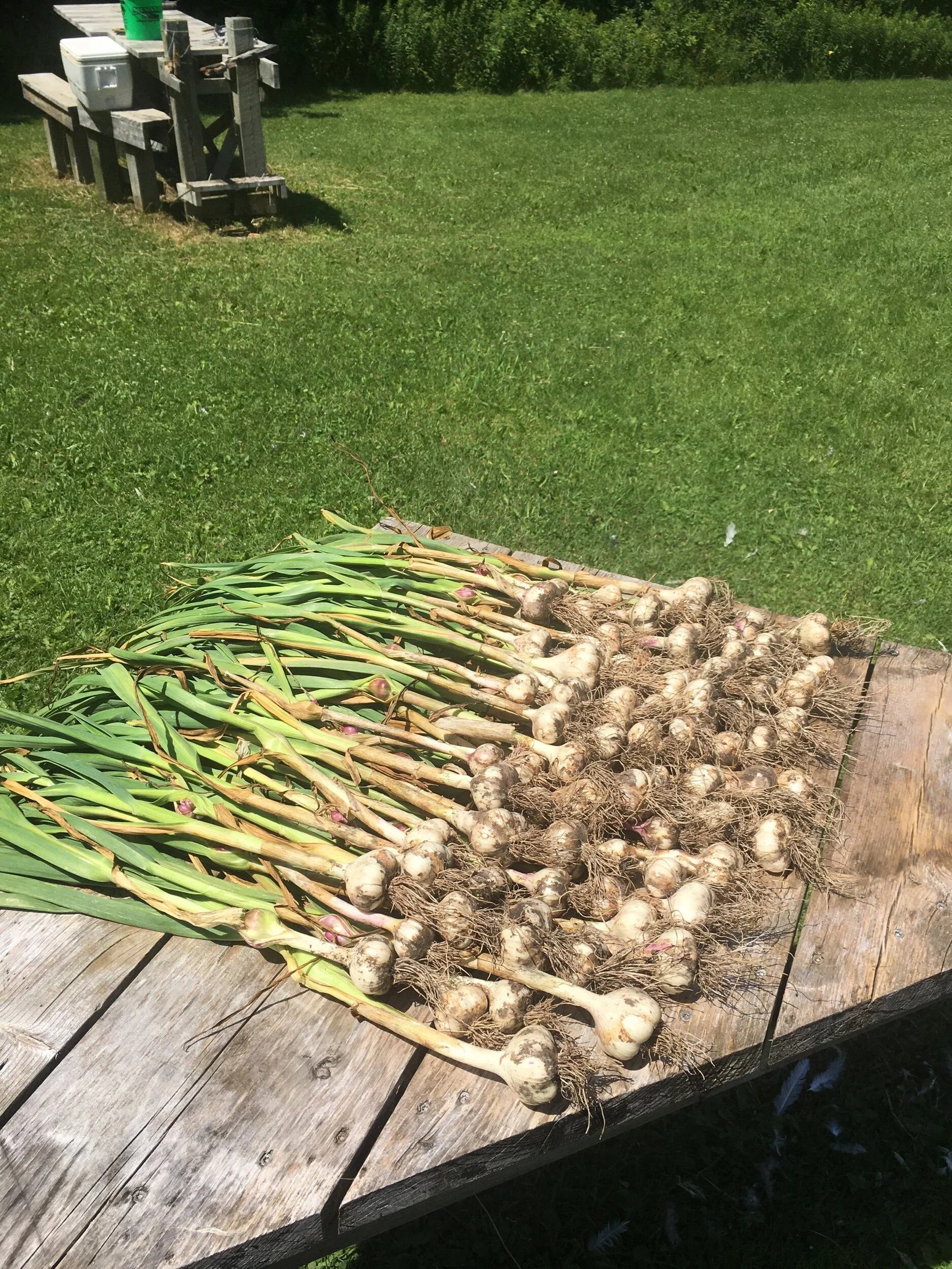 Garlic harvest: River Giant. Garlic and onions form part of dinner.