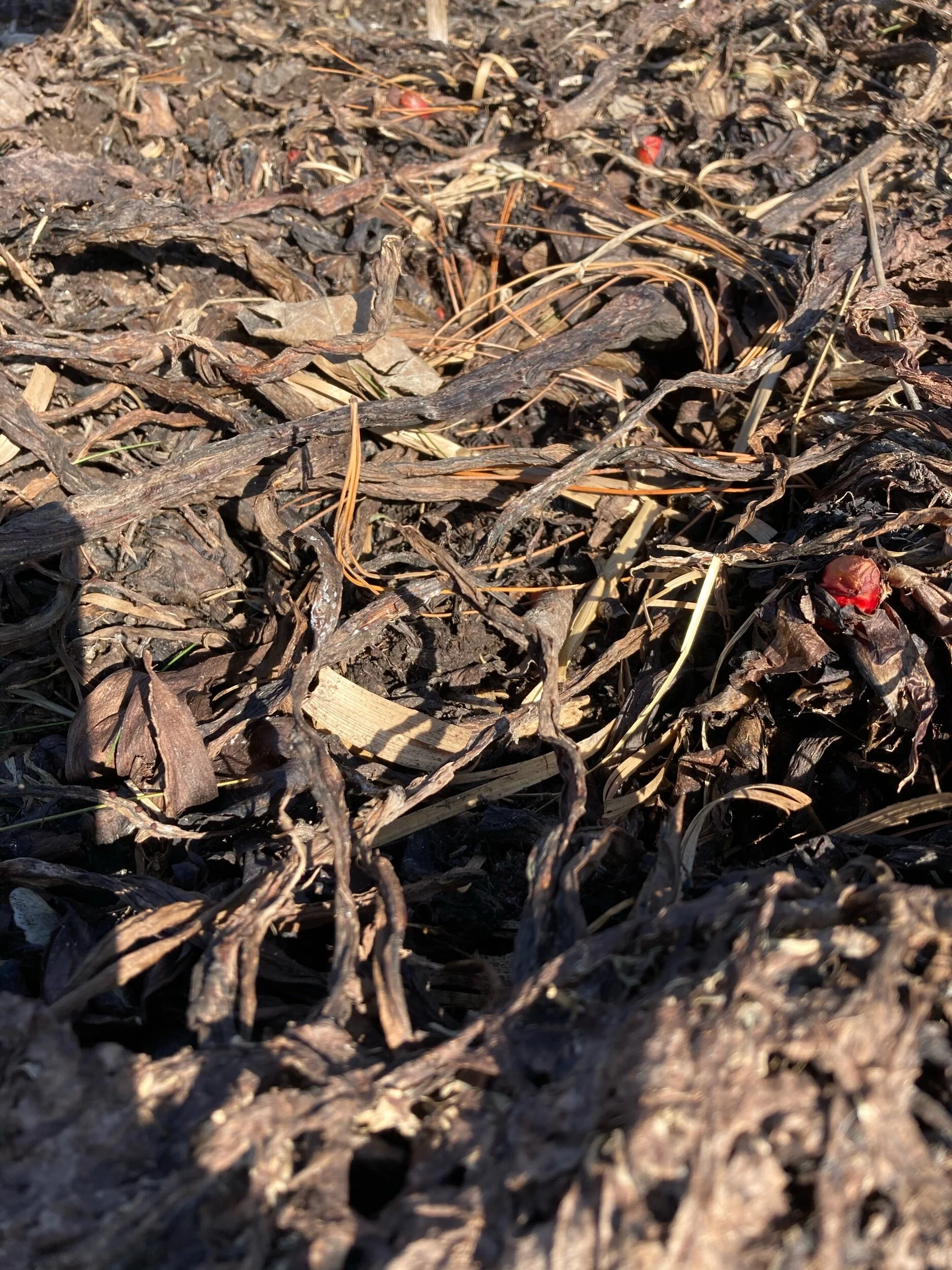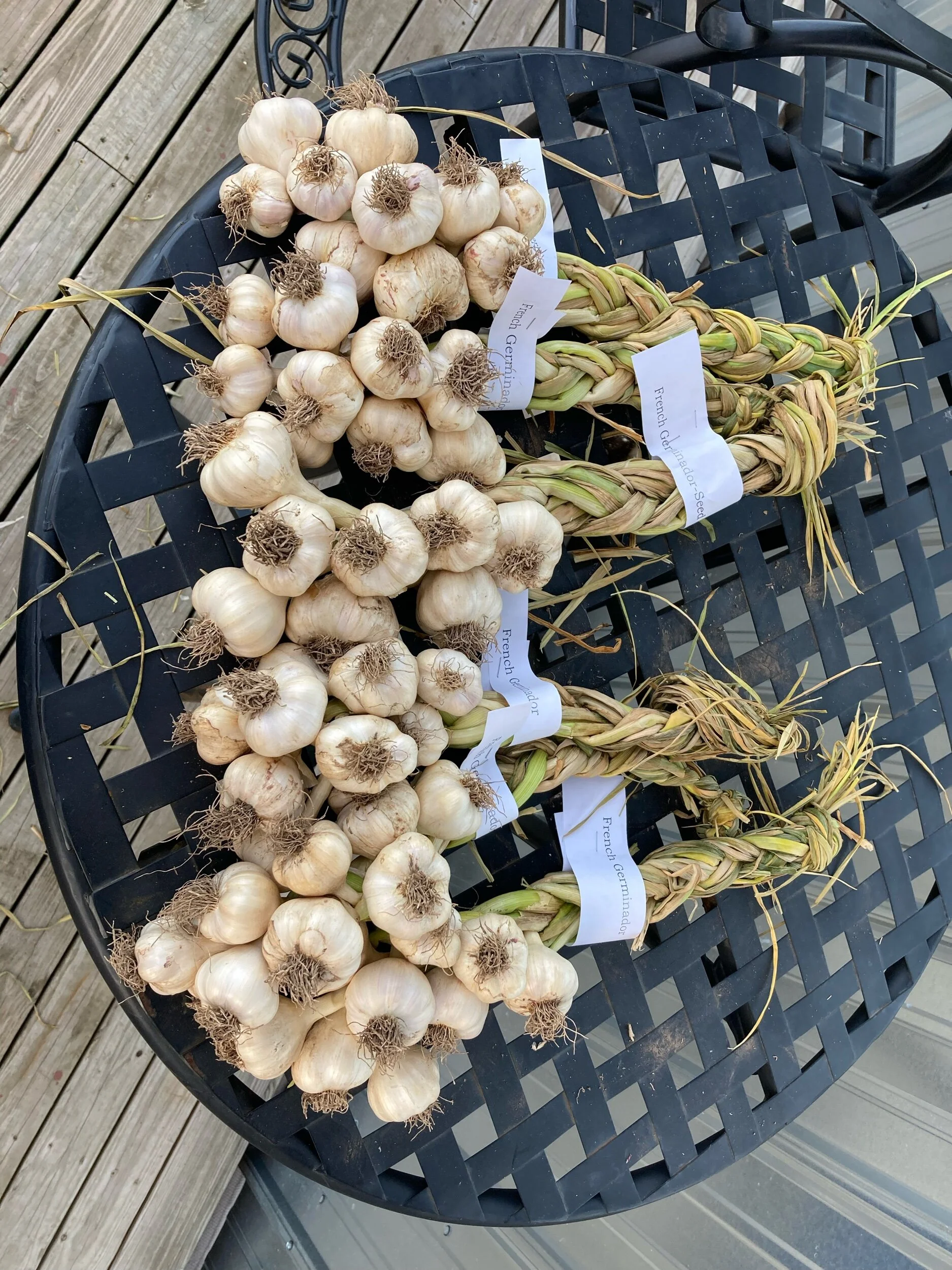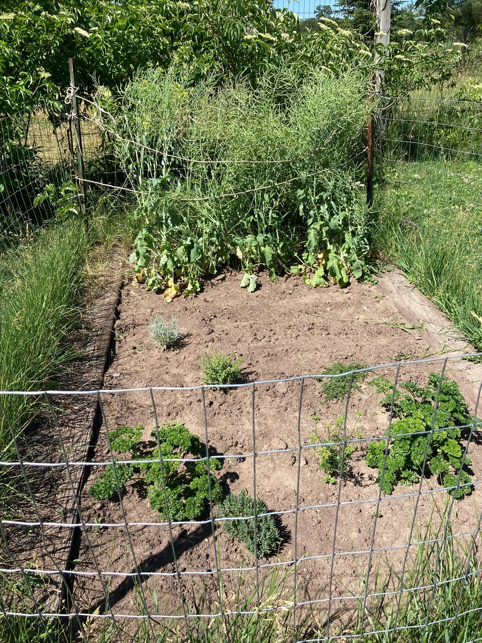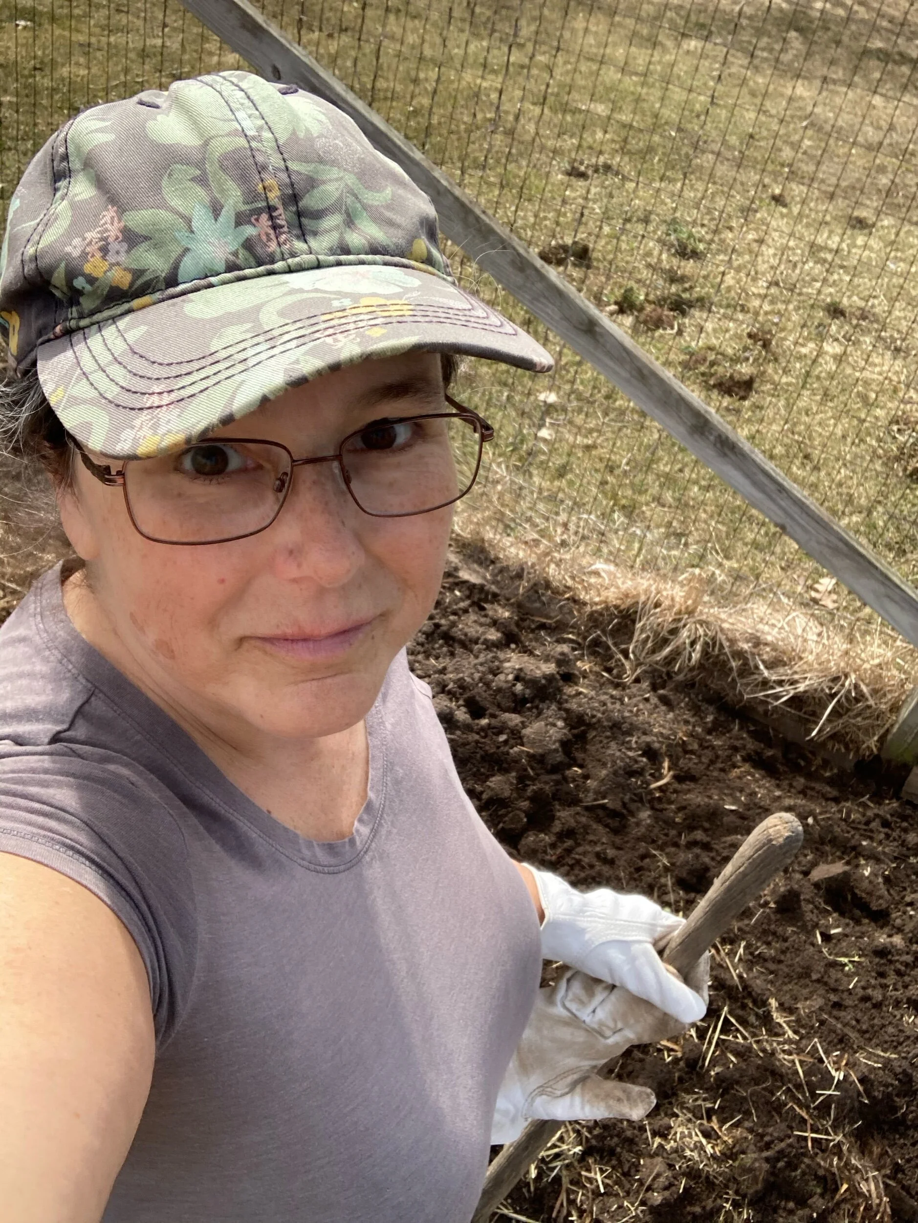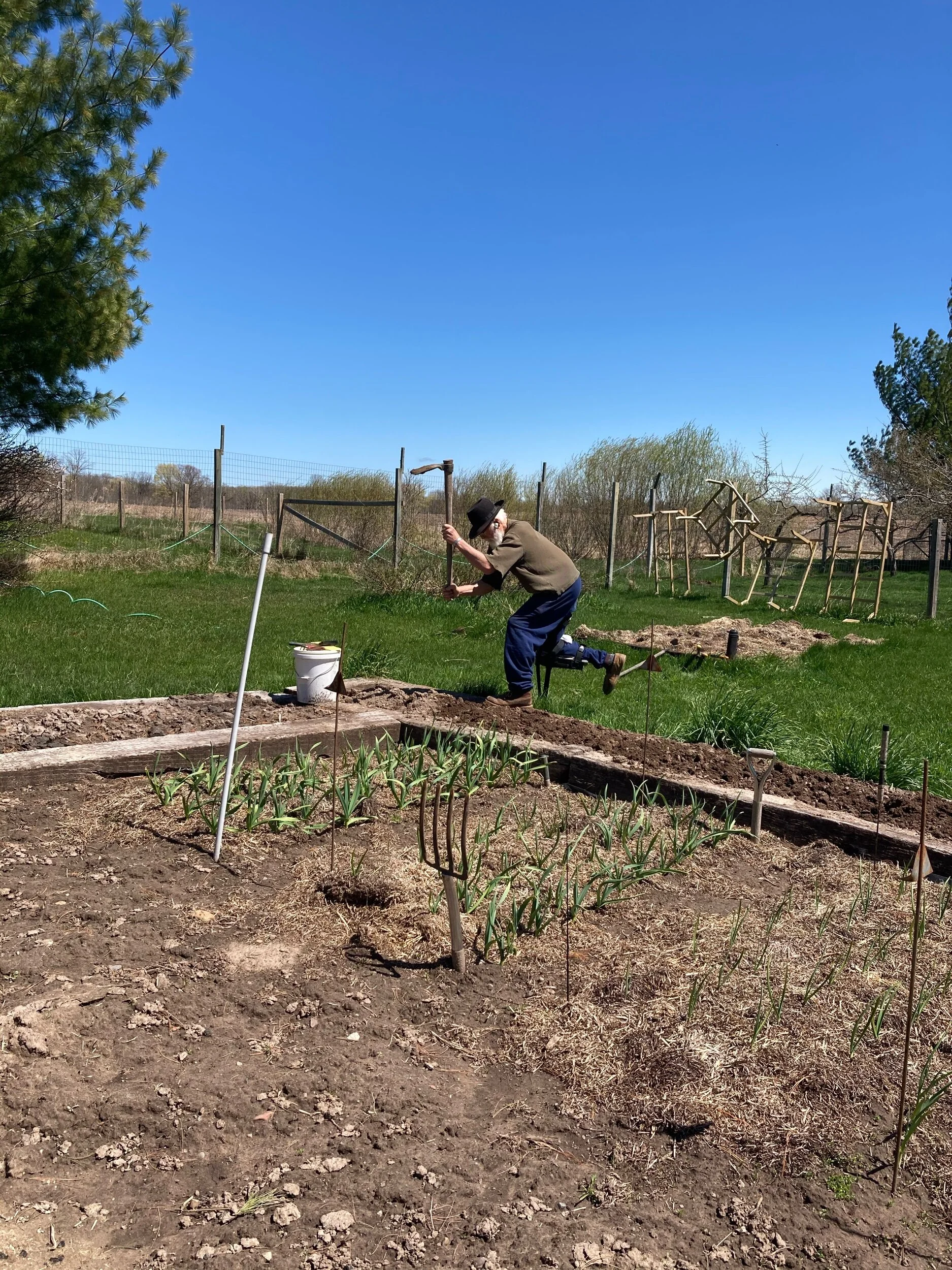 My mother has any number of irons in the fire, which is situation normal! I brought her garlic, so we got one of her raised beds cleared, turned over, potting soil added, and bulbs planted.