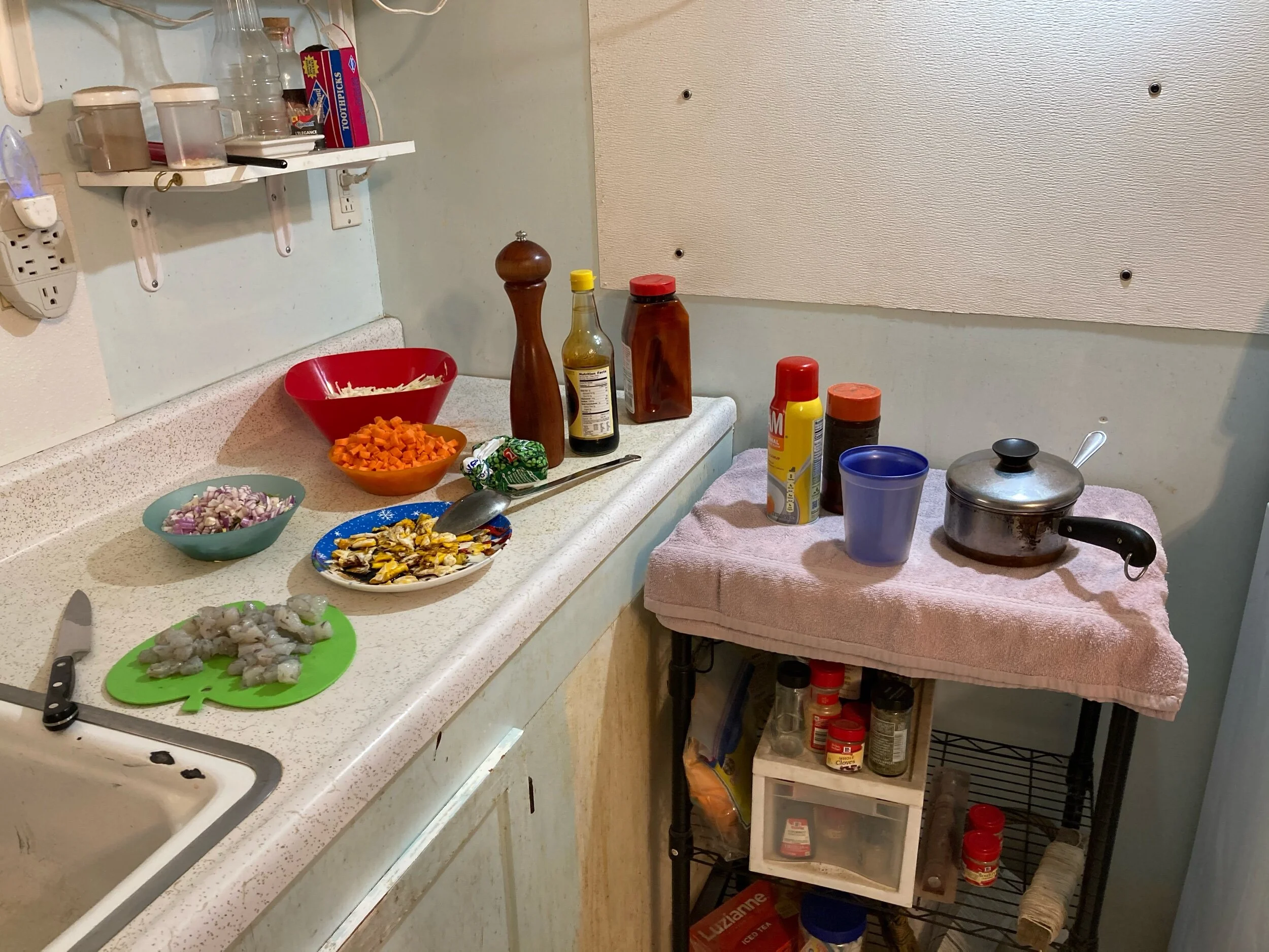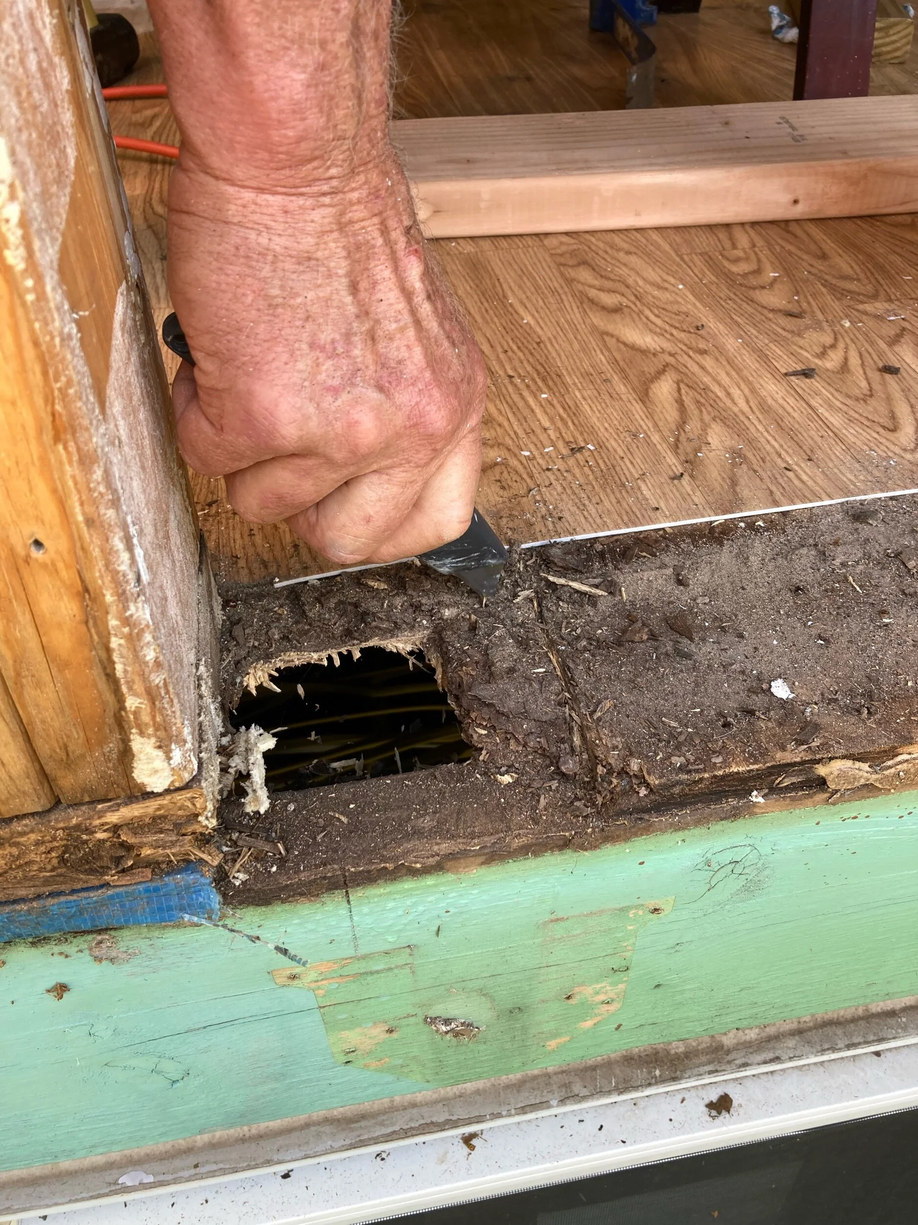 I repaired her tin cutter, that had fallen apart before I arrived.