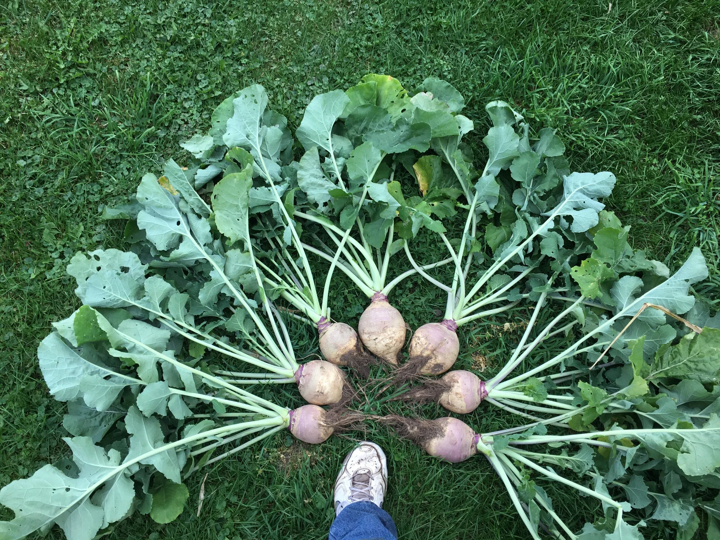 He harvested rutabagas. They are the magic ingredient in pasties.