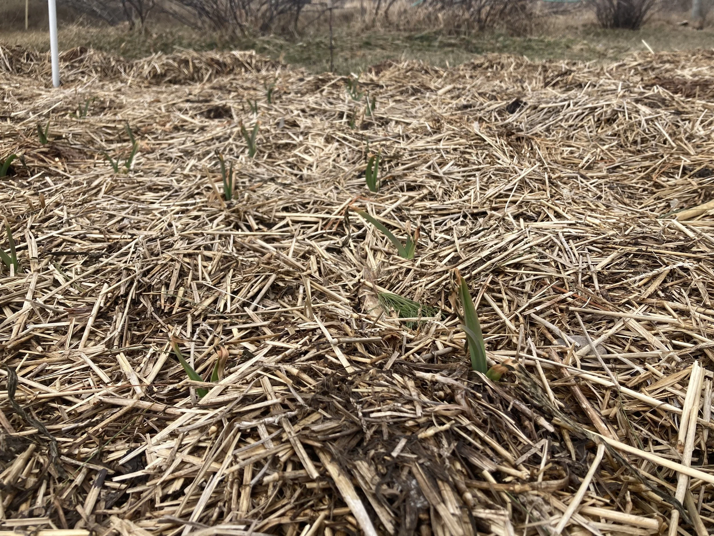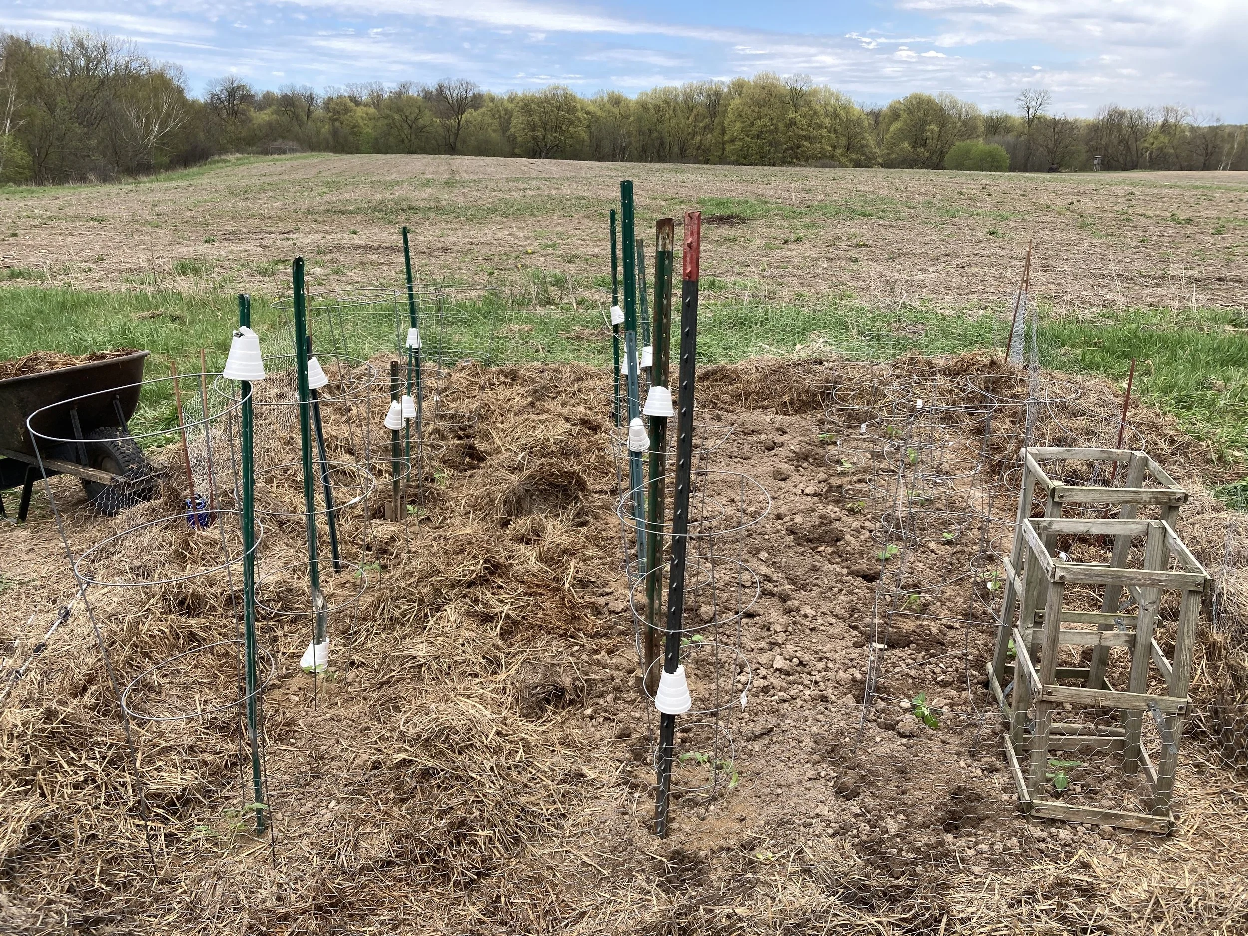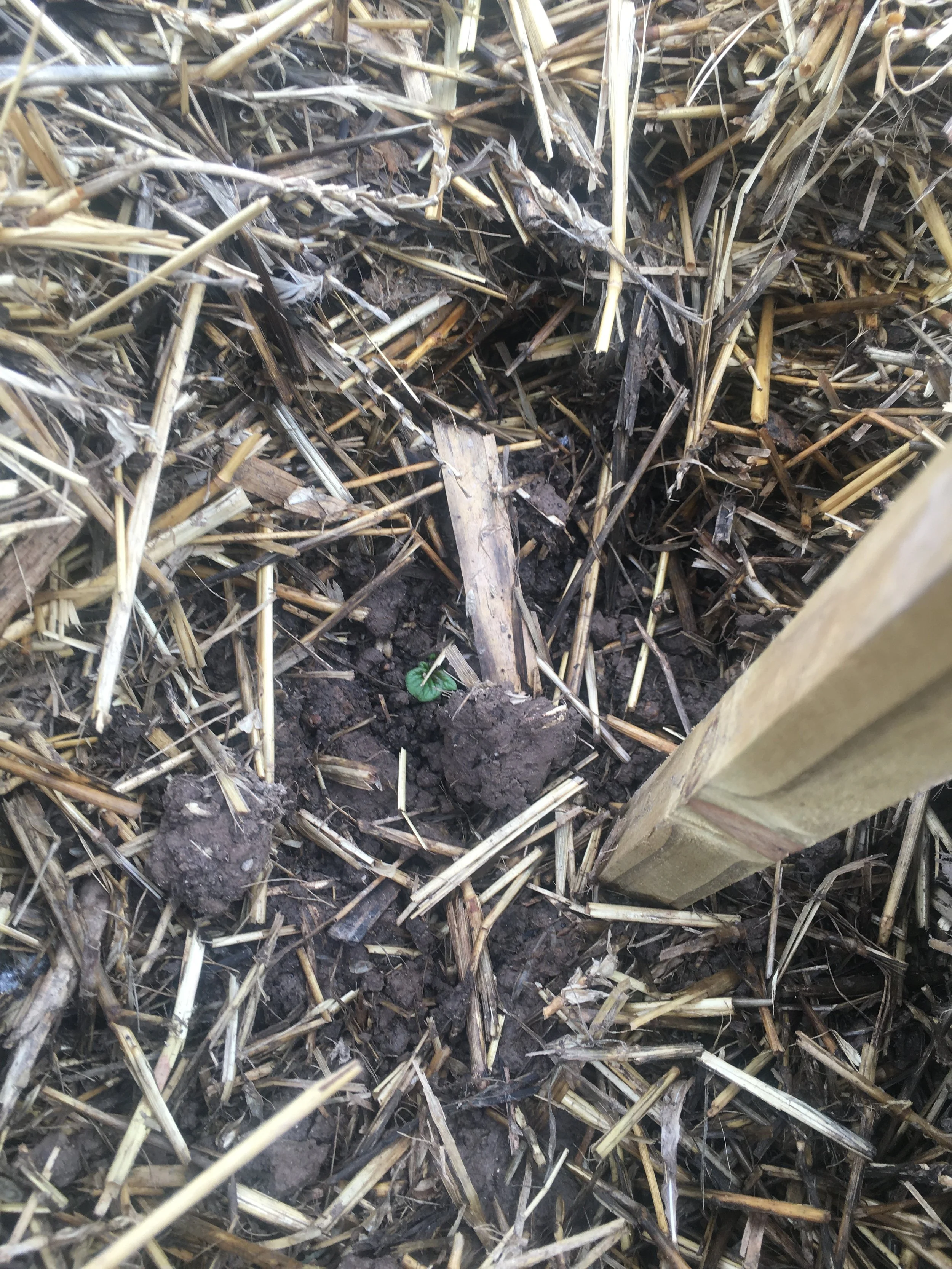 We also planted our other nightshades (tomatoes, eggplants, and peppers) in new dirt. We had to cover these delicate plants with straw a couple of days ago due to frost danger. They survived!