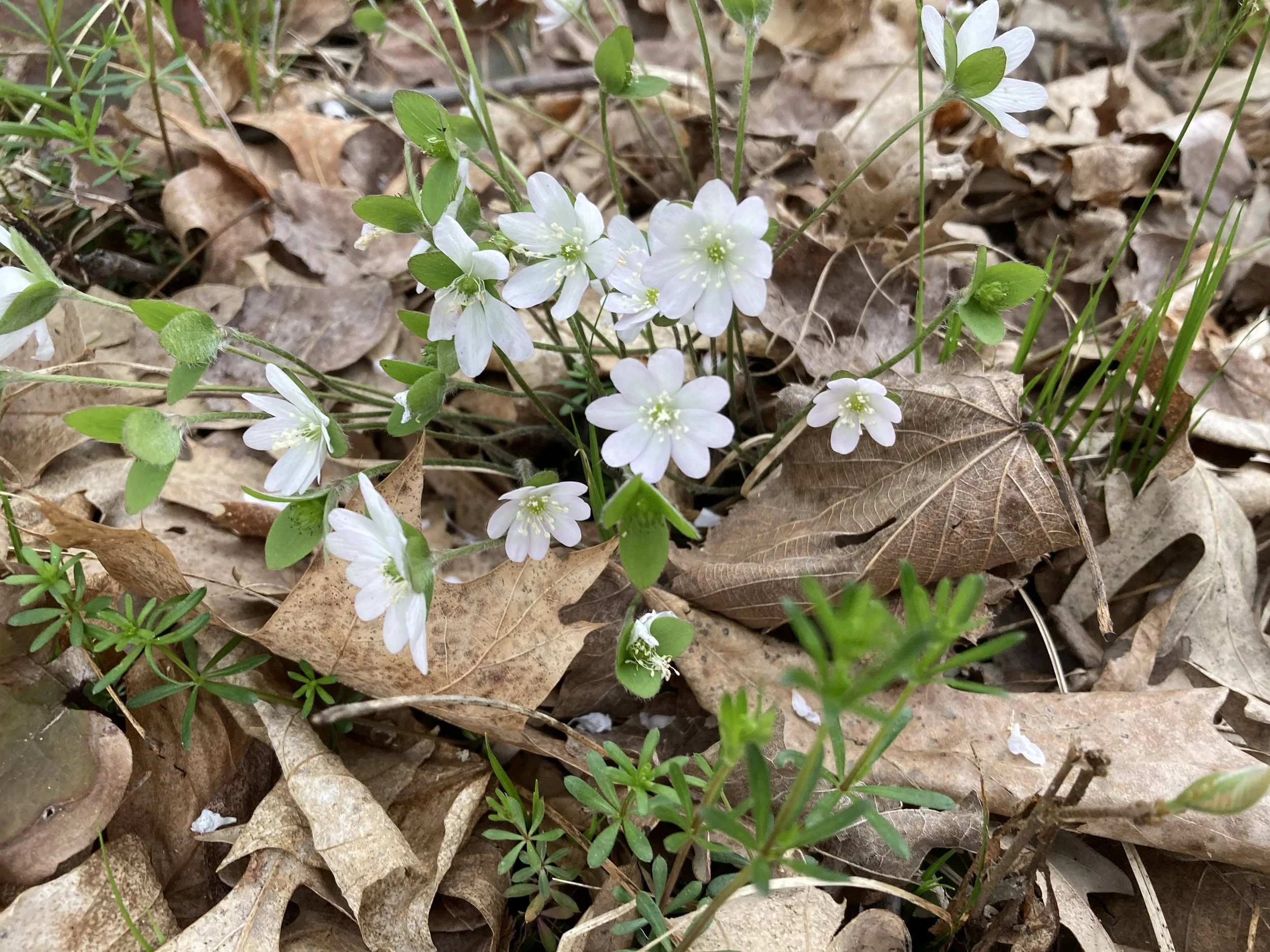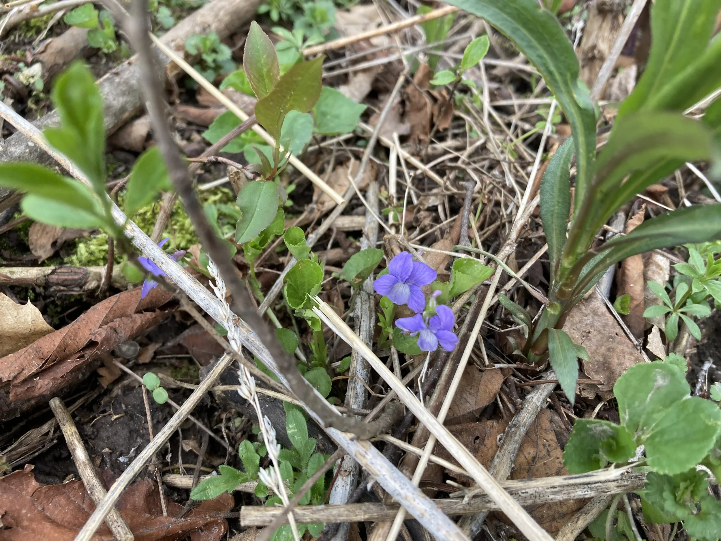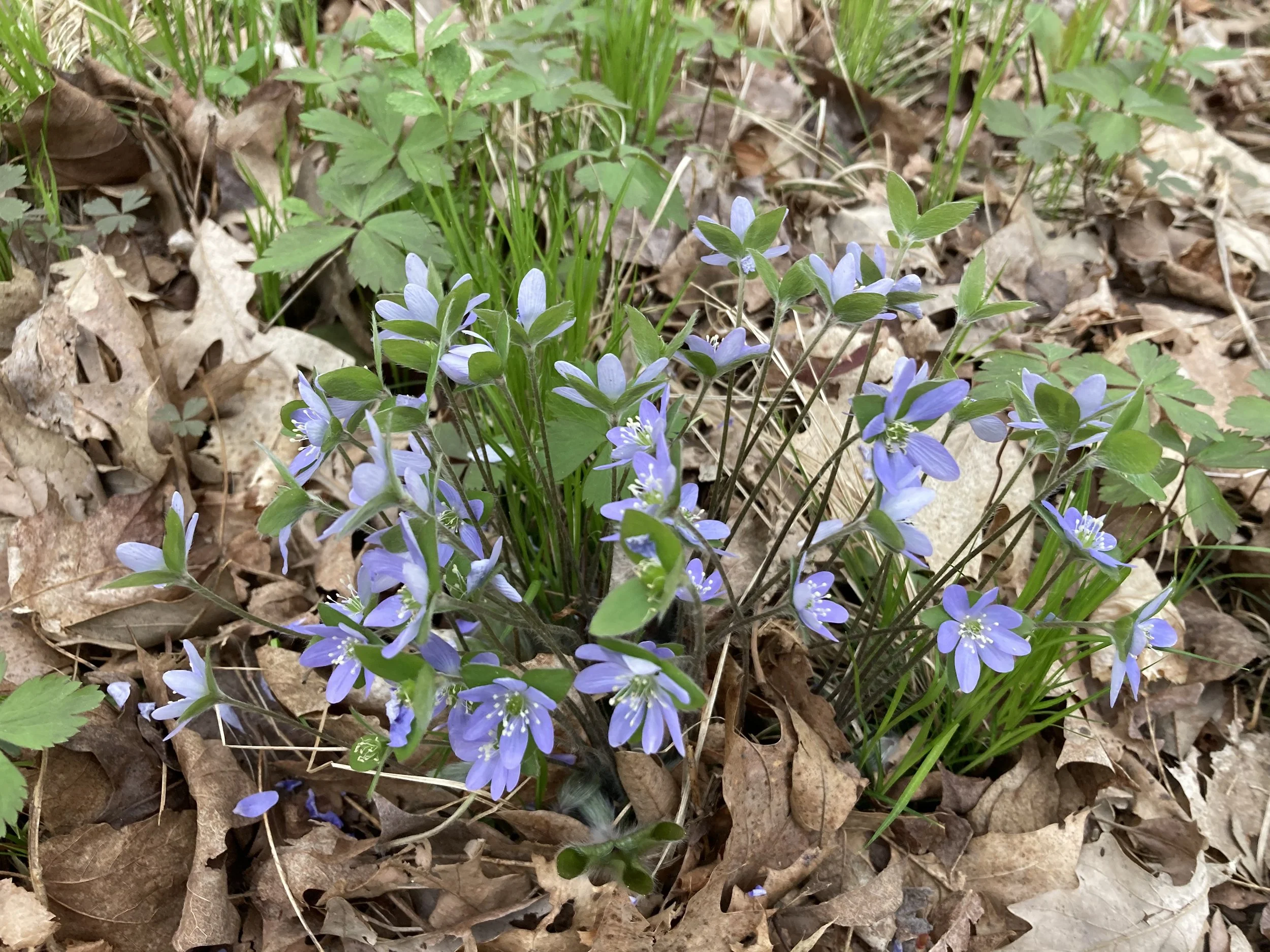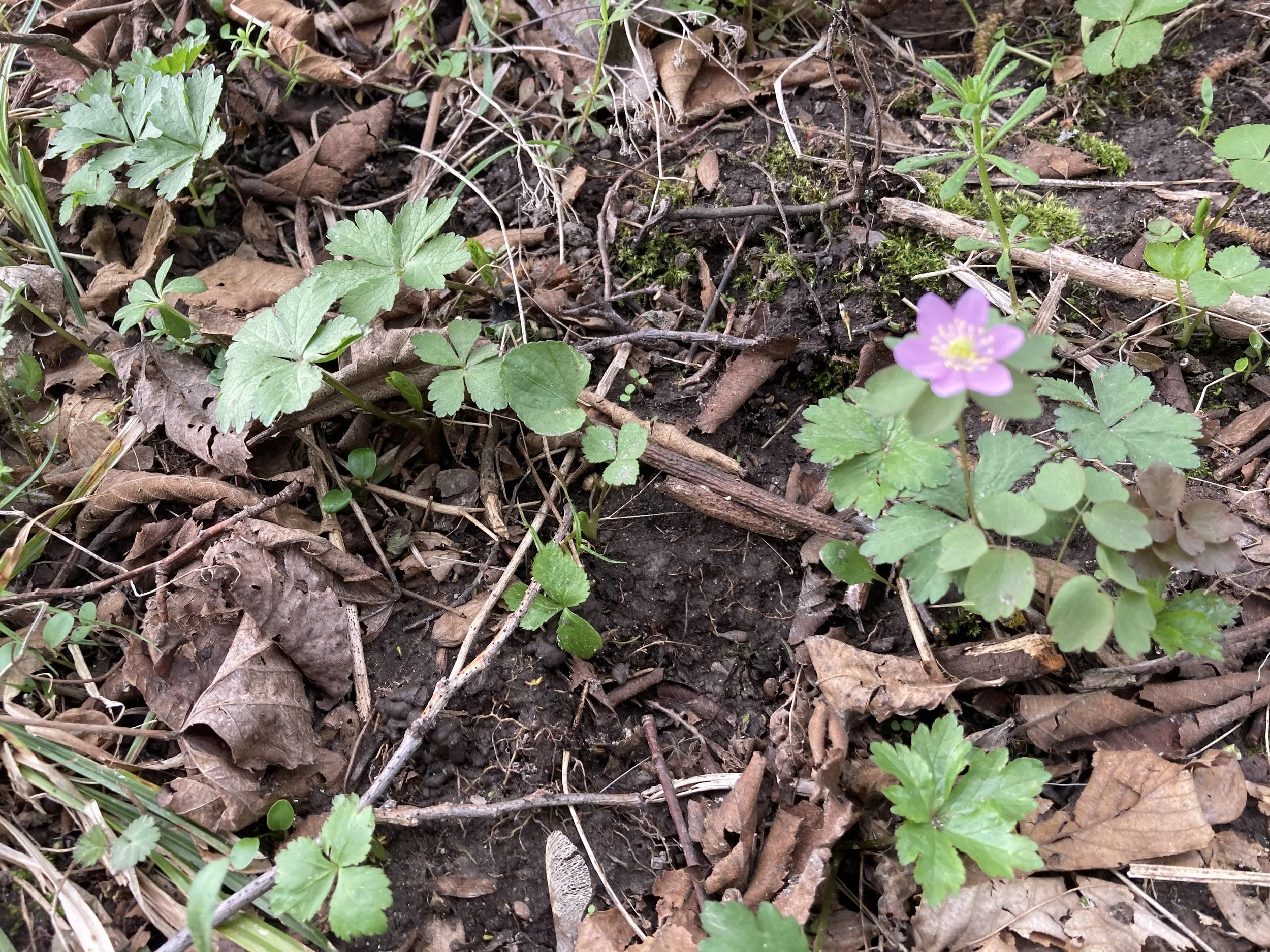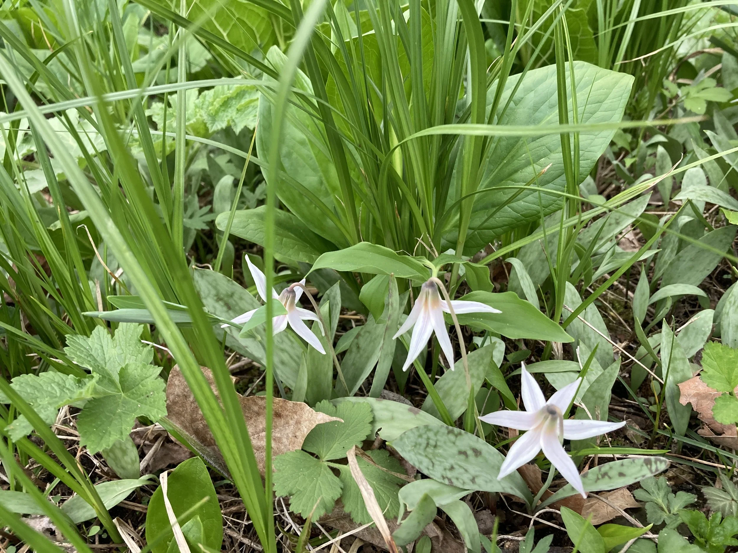 Penstemon, Sweet William, wild geraniums, mustard, strawberries, and yellow violets accent the intense and varied greens of spring.