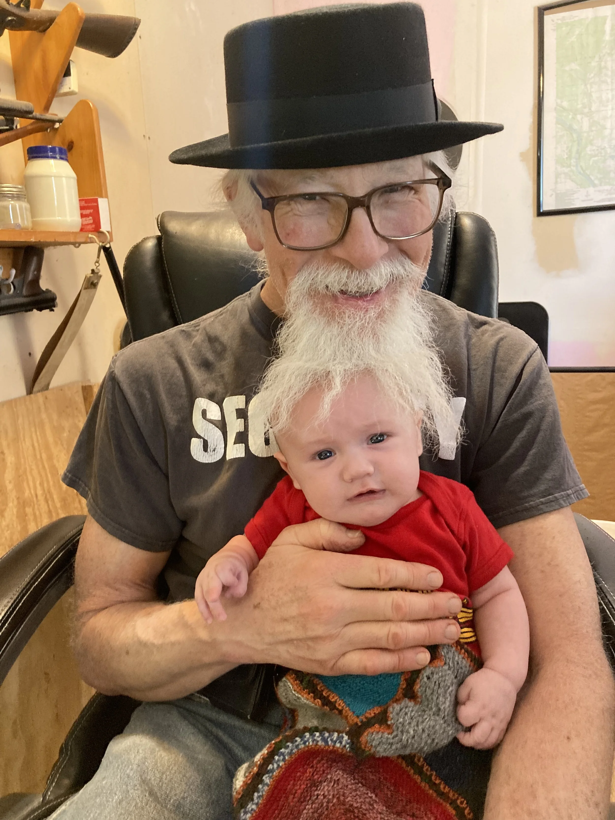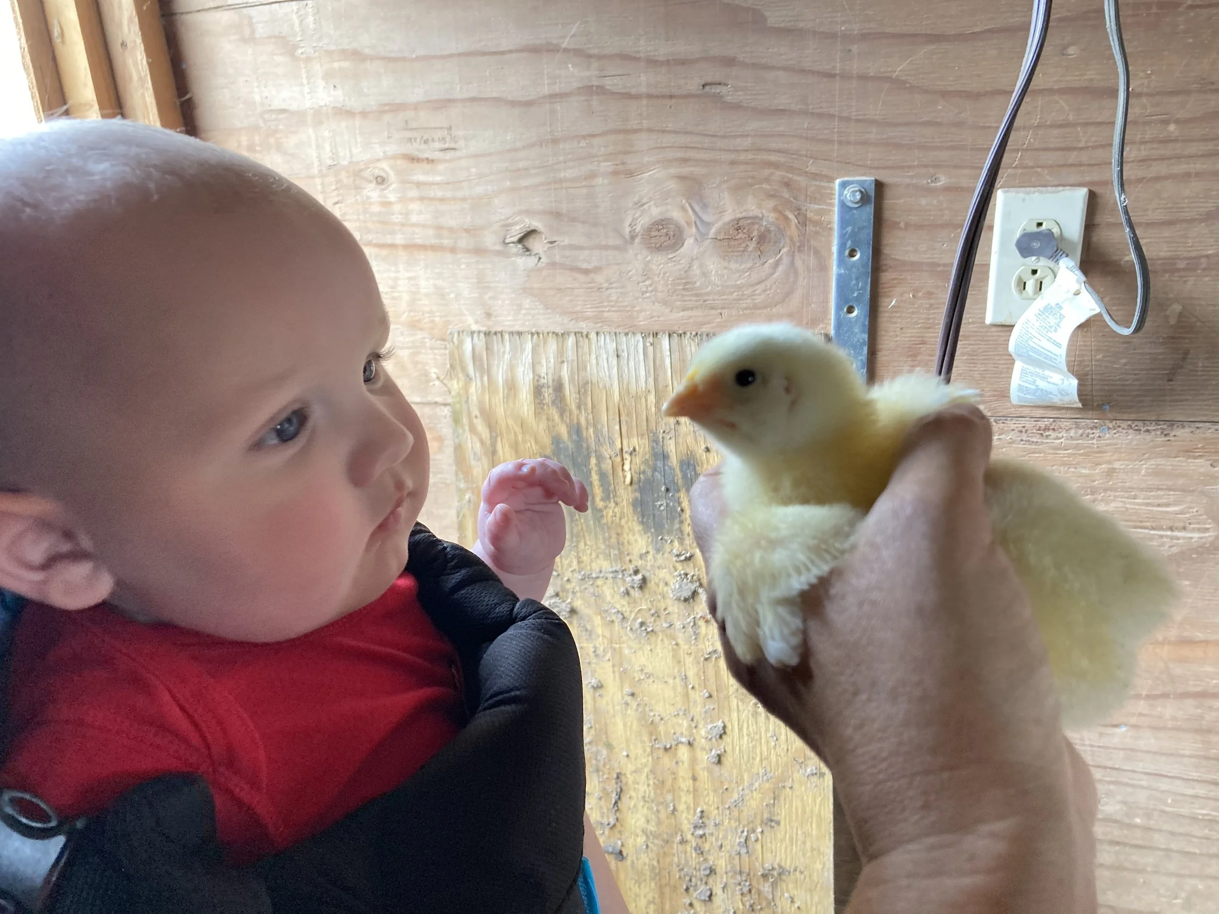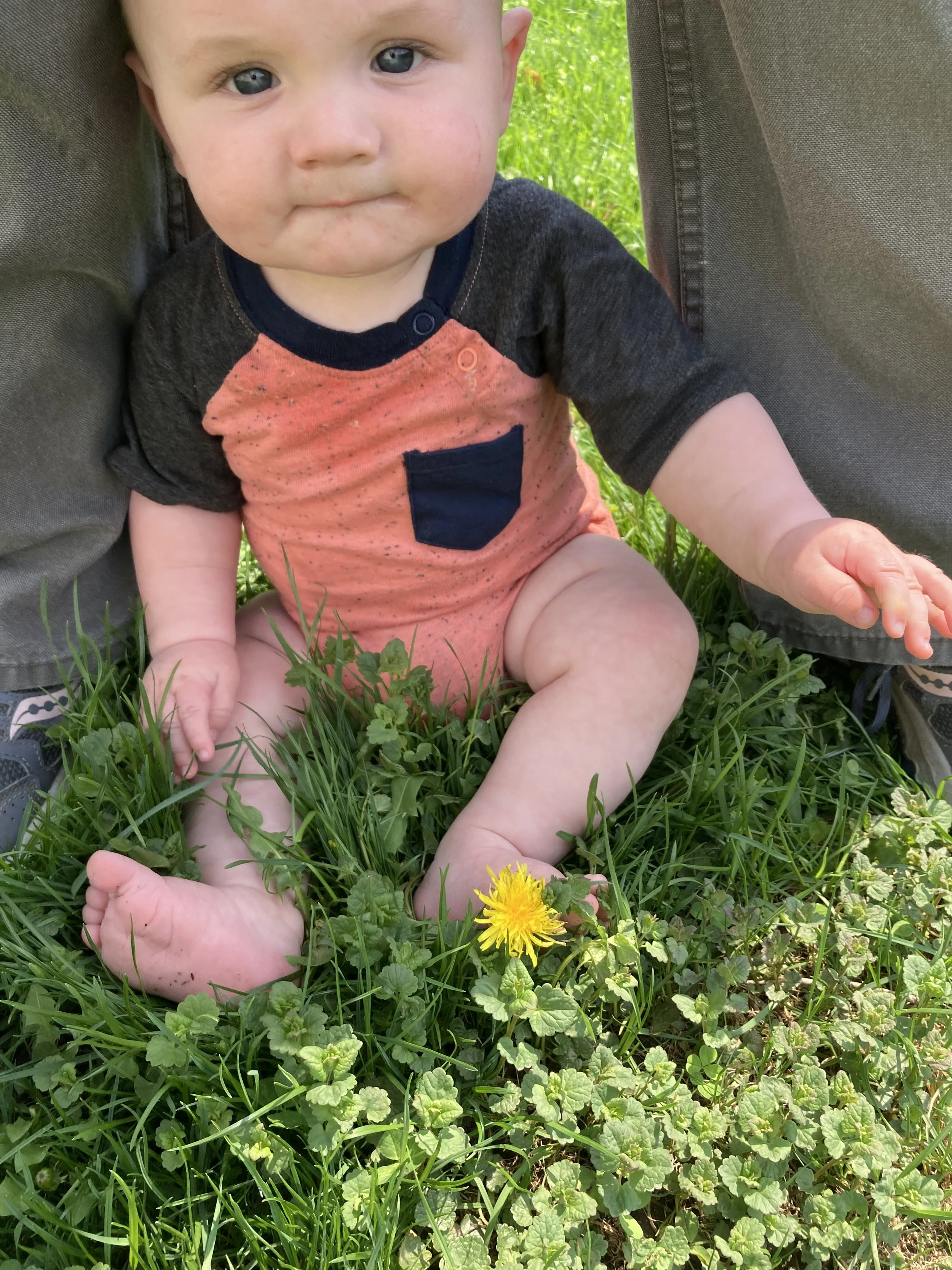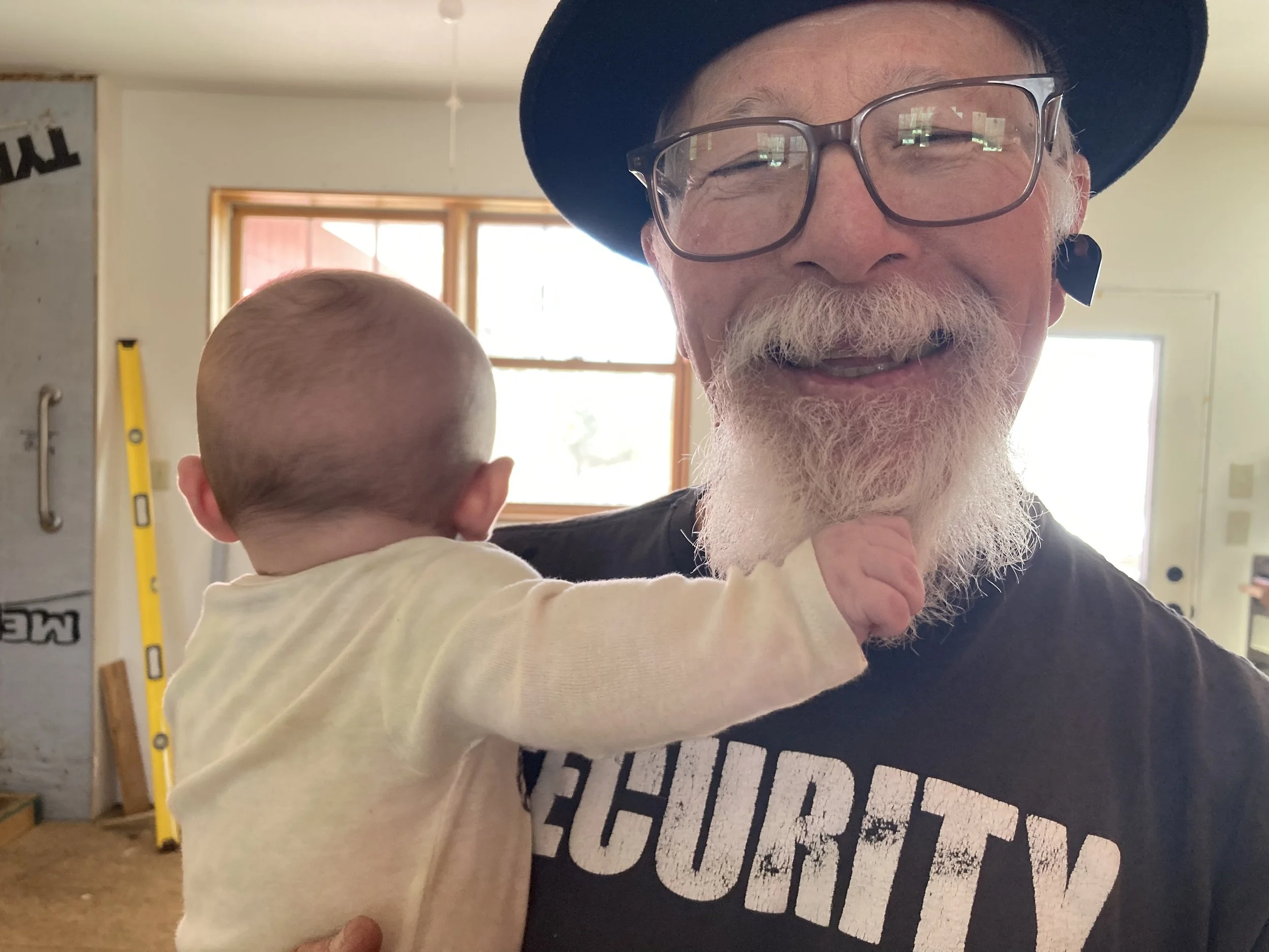 The radishes he planted in the raised beds surrounding the big garden say hello.