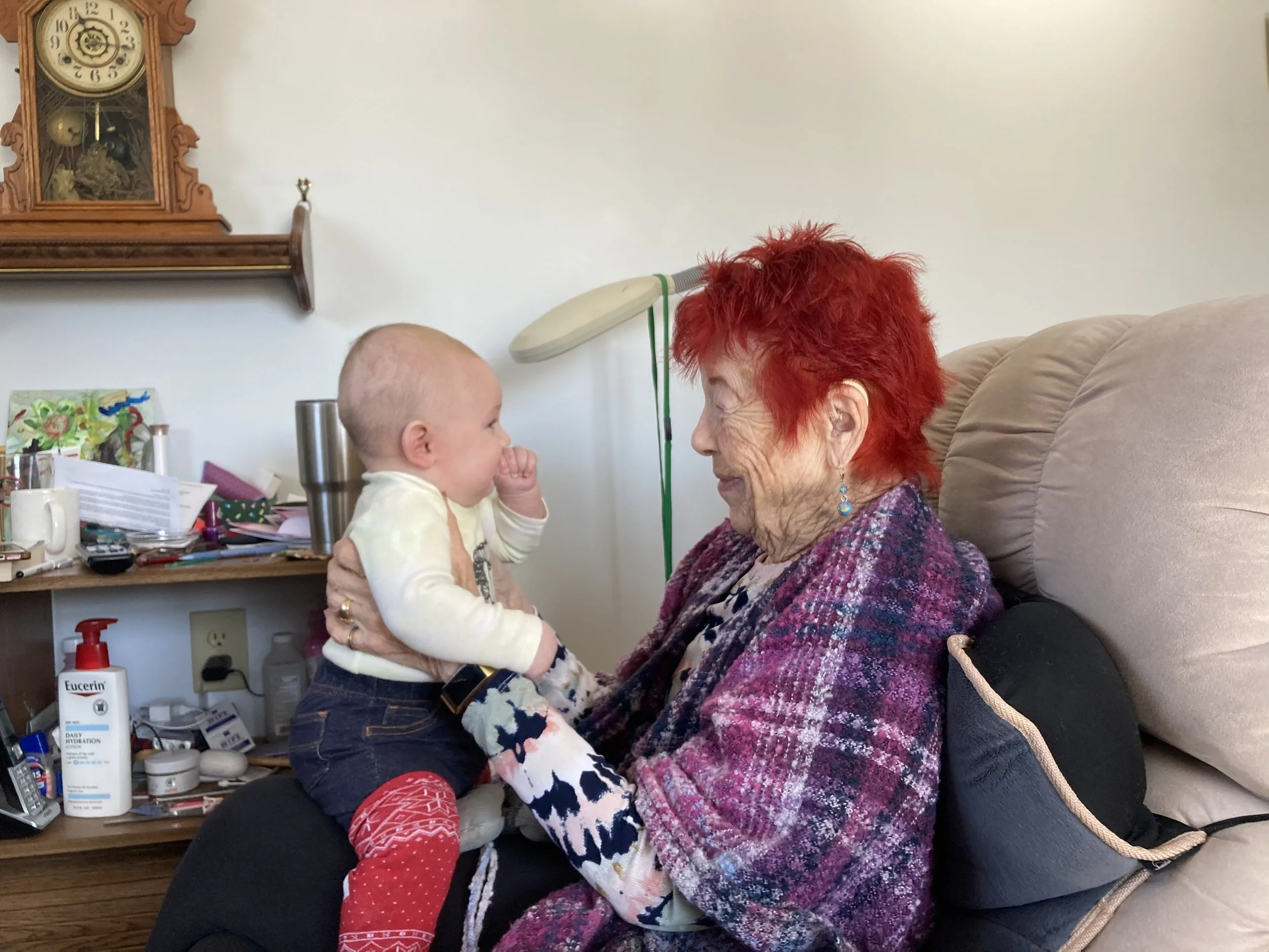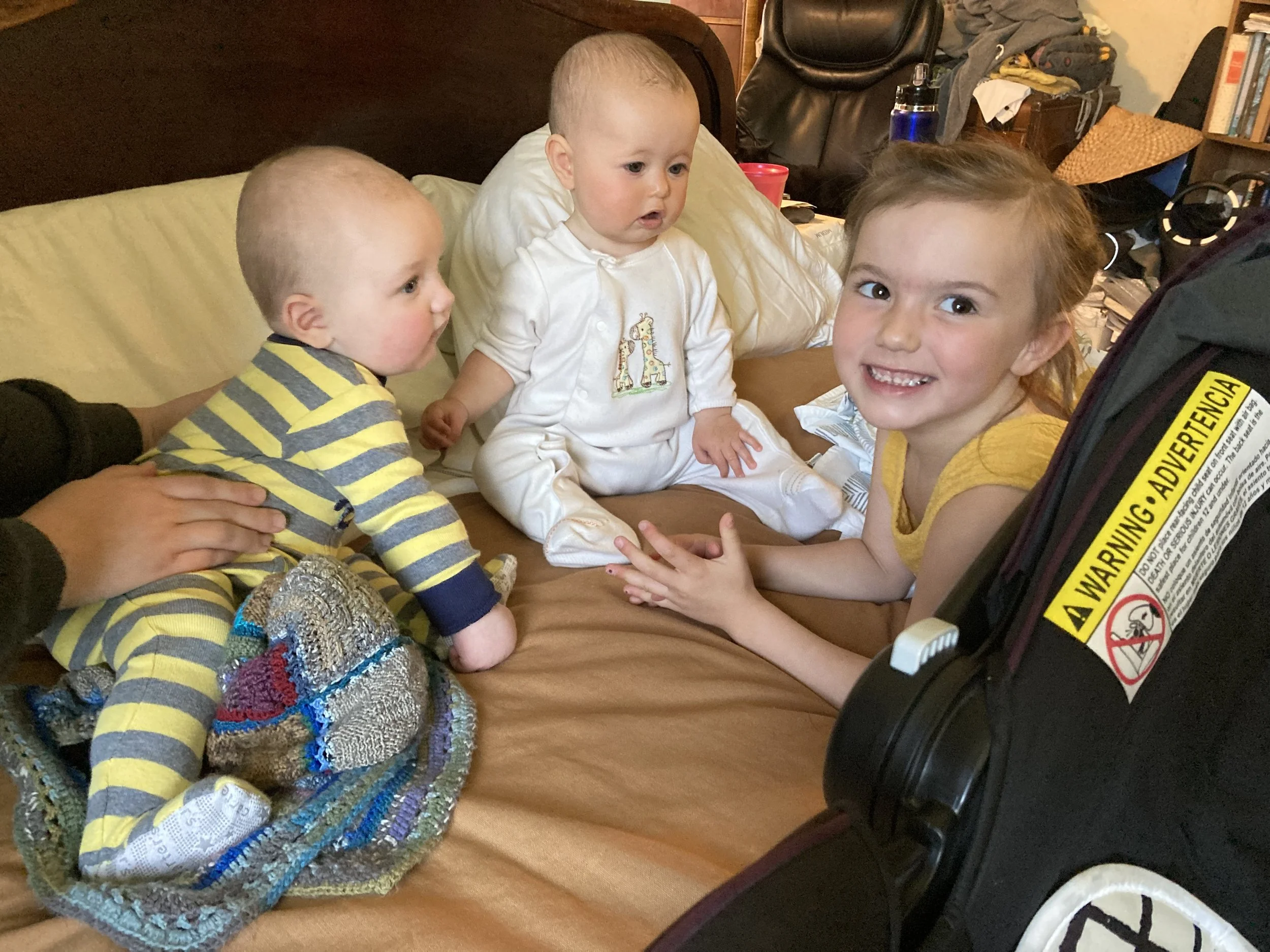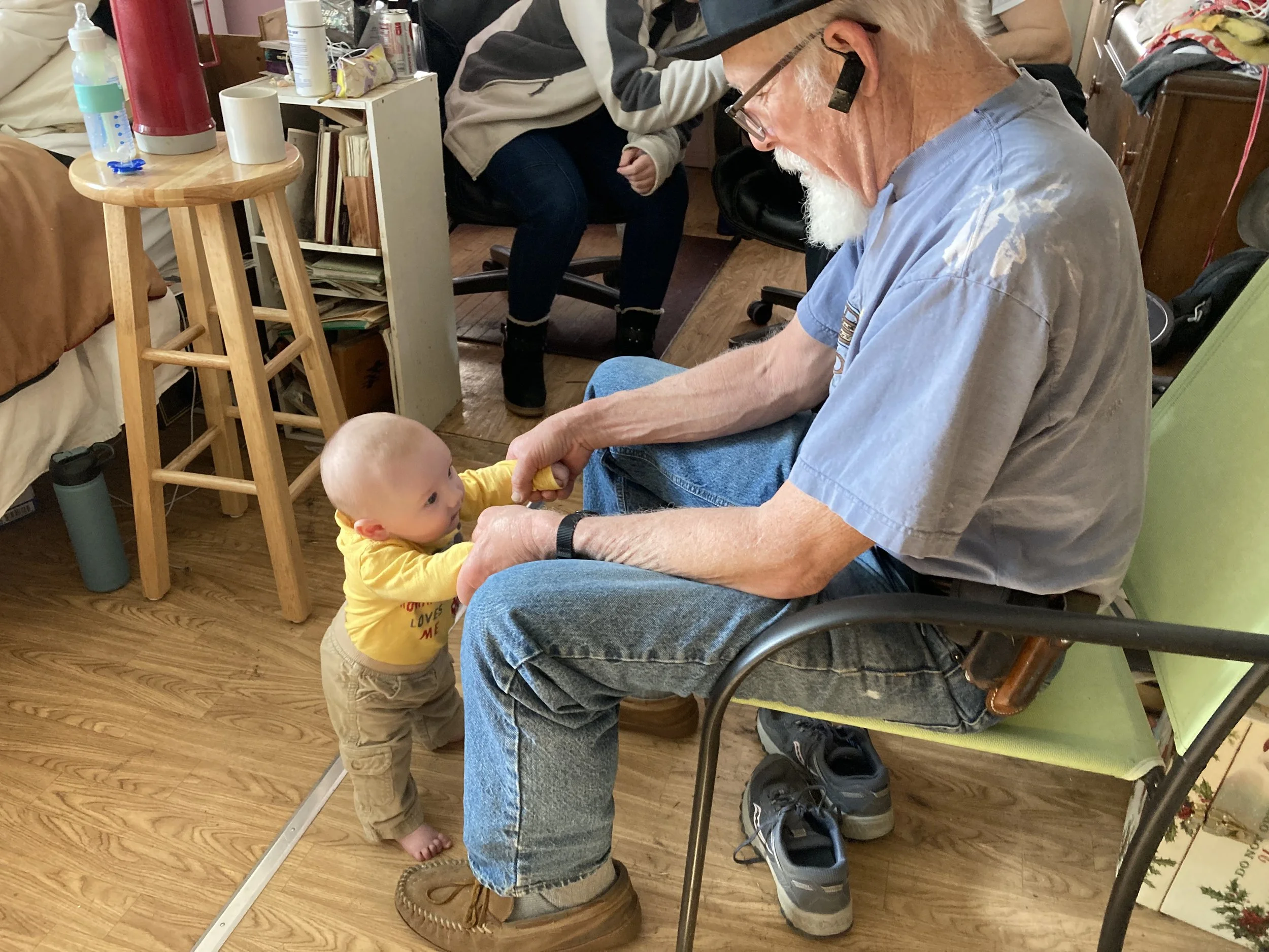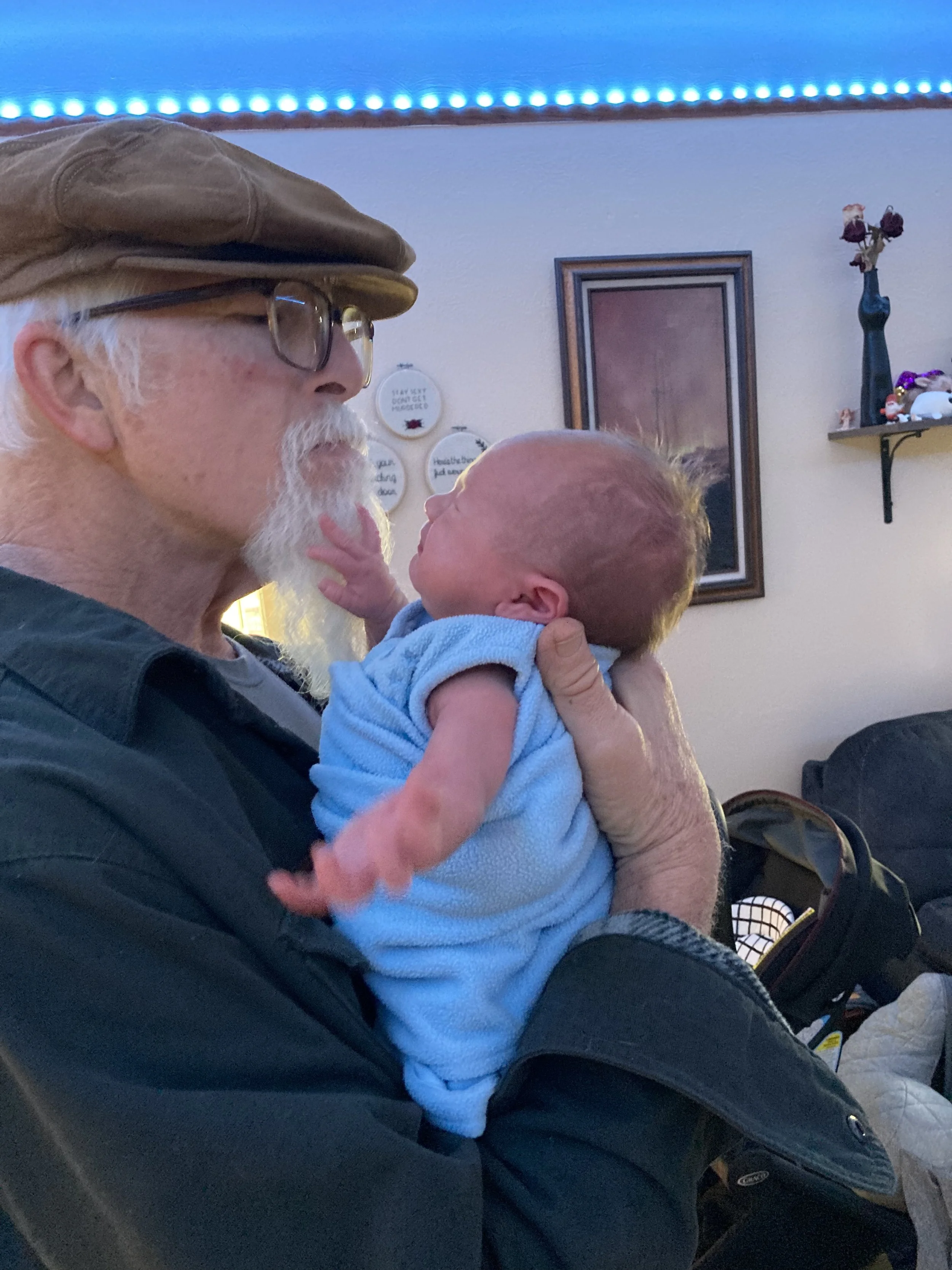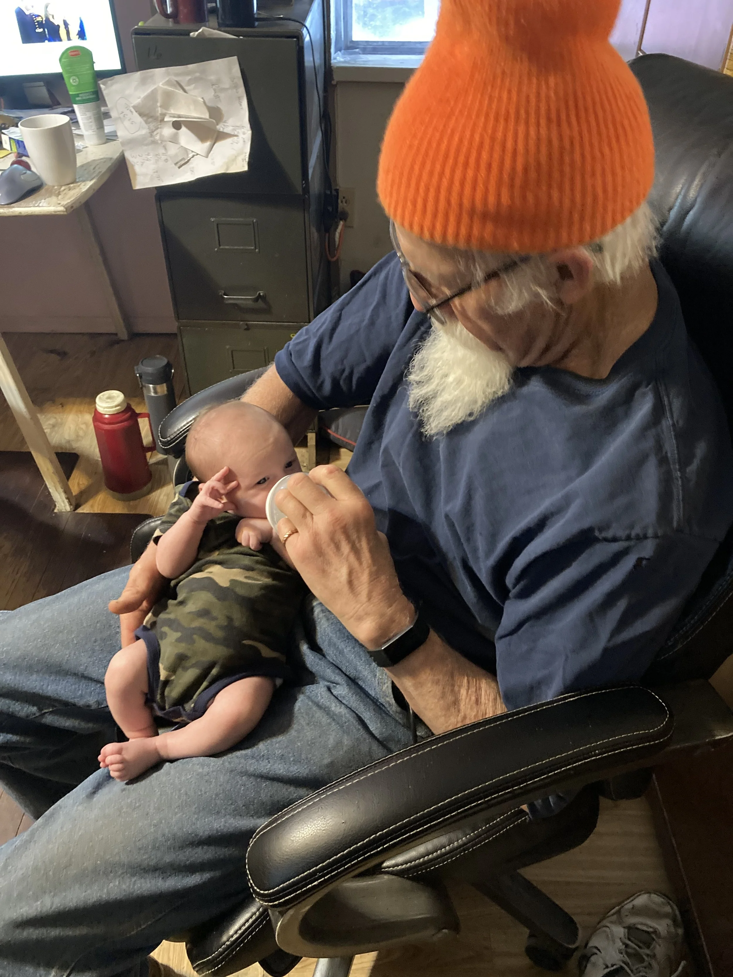 The radishes he planted in the raised beds surrounding the big garden say hello.