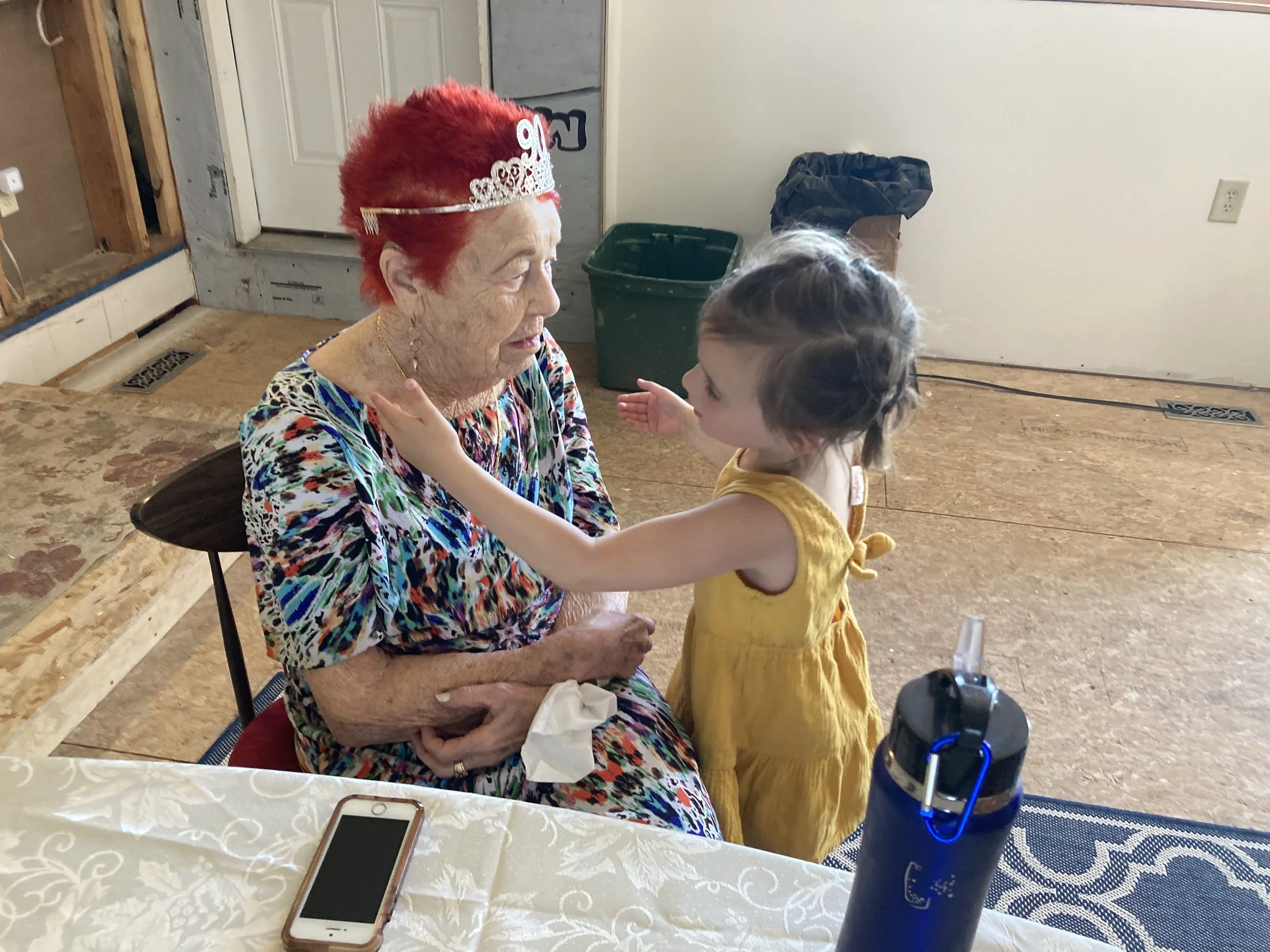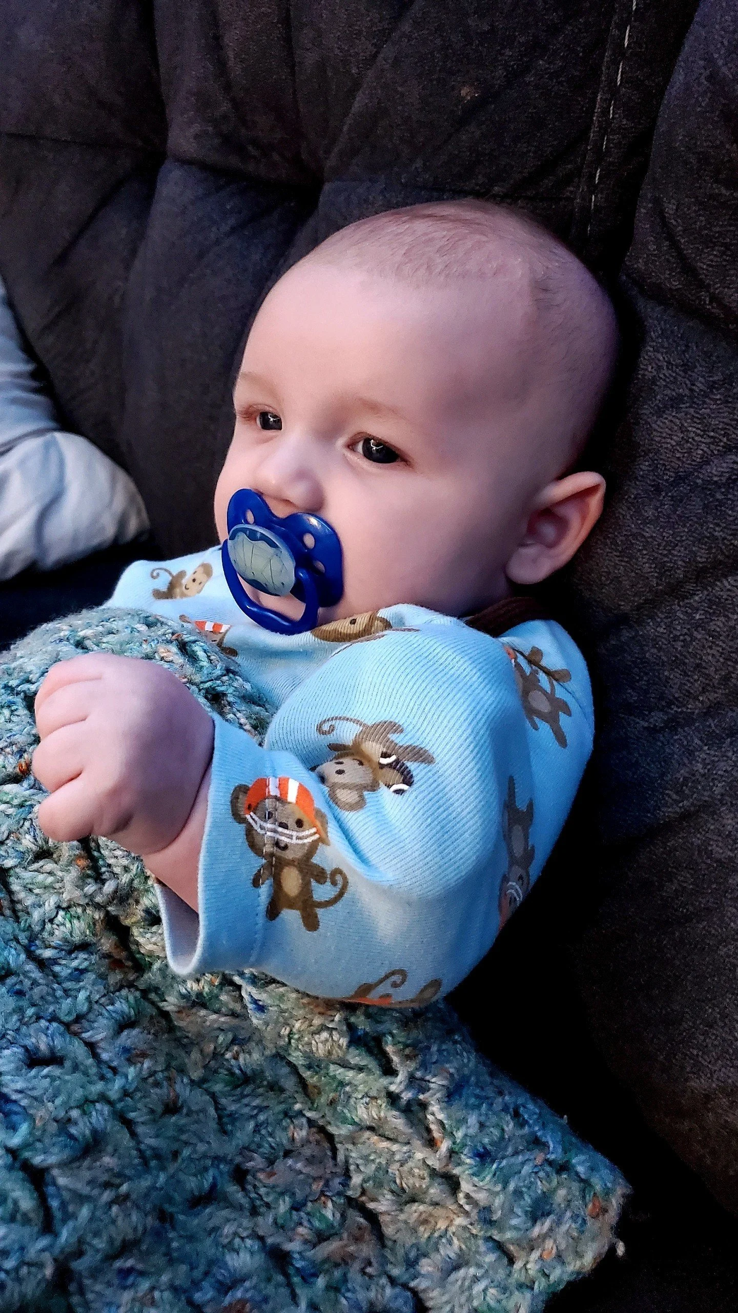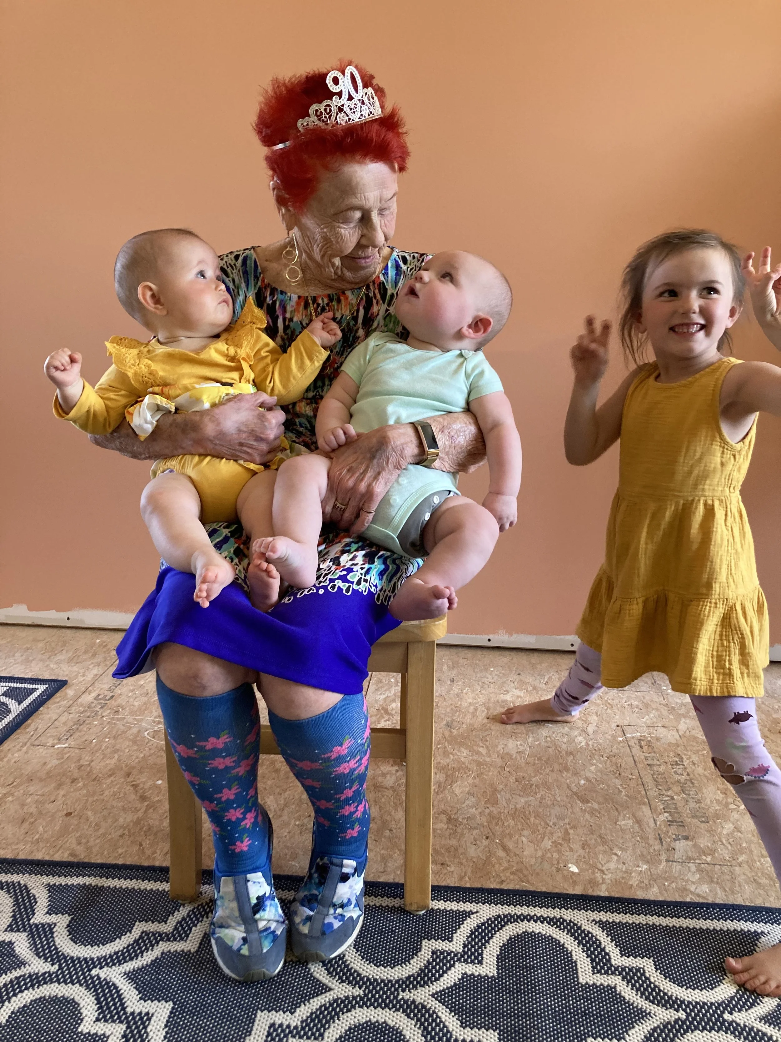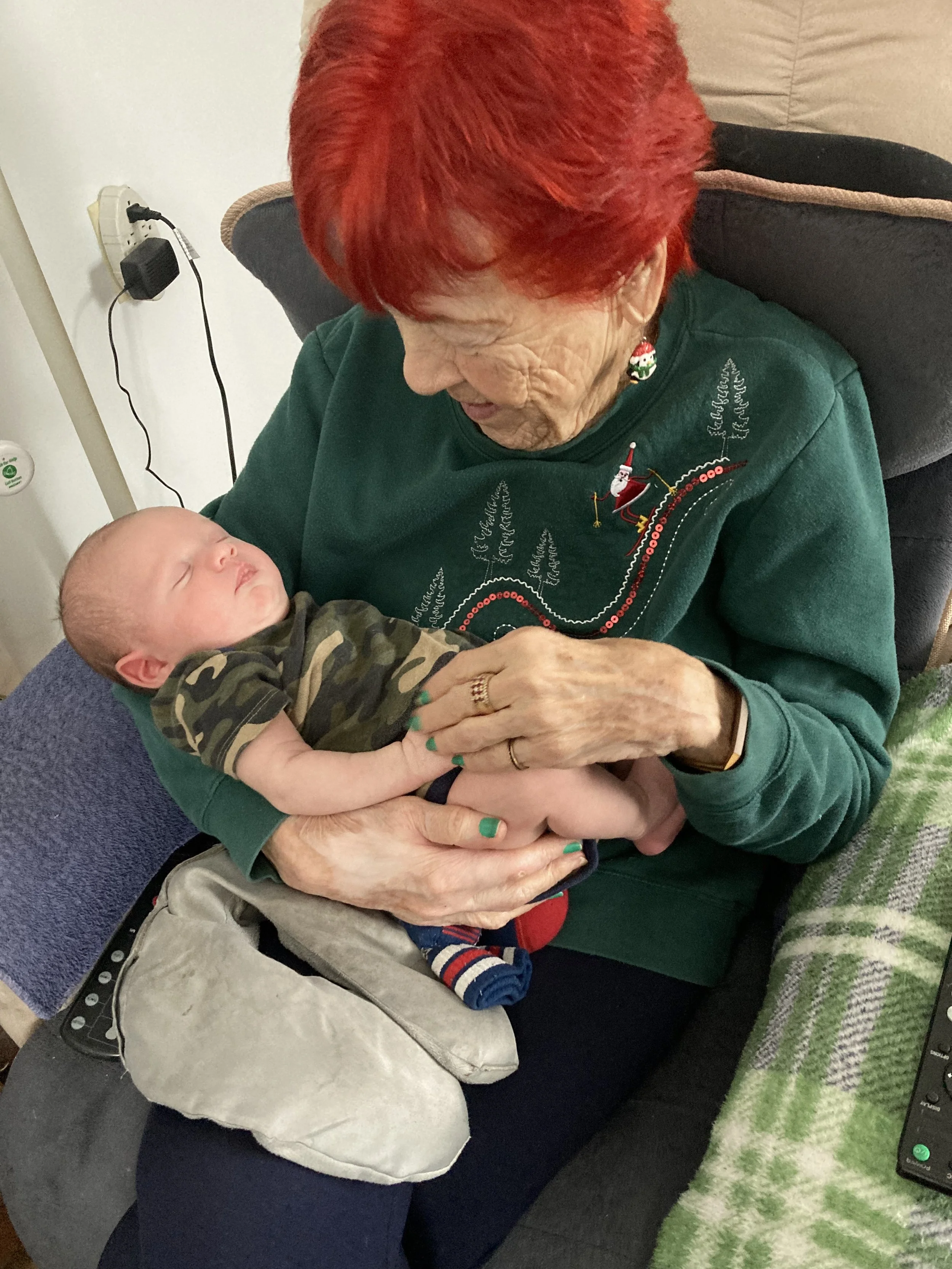 The radishes he planted in the raised beds surrounding the big garden say hello.