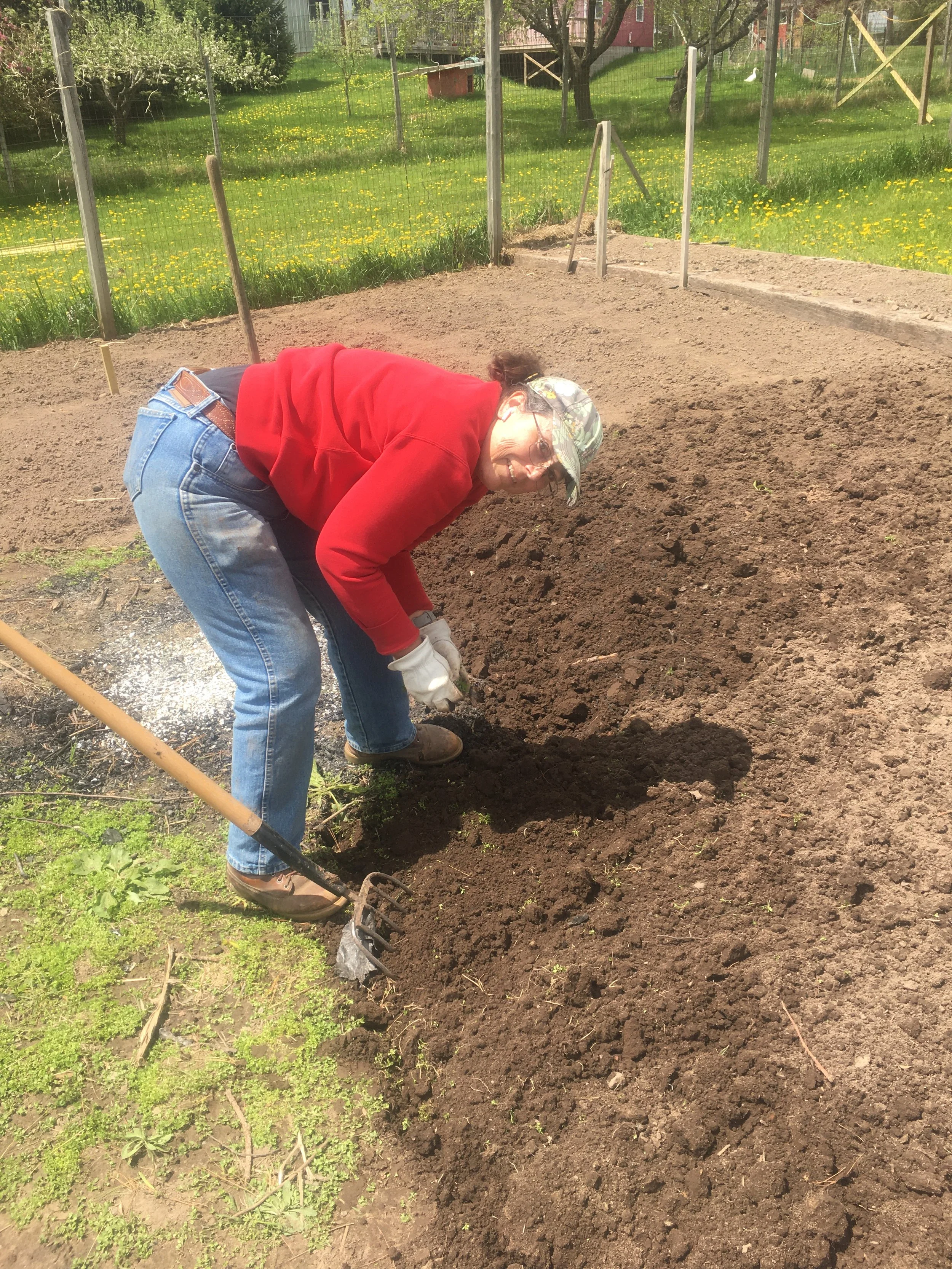 And Michael planted the popcorn. He also planted onions. Cabbages and carrots go in today.