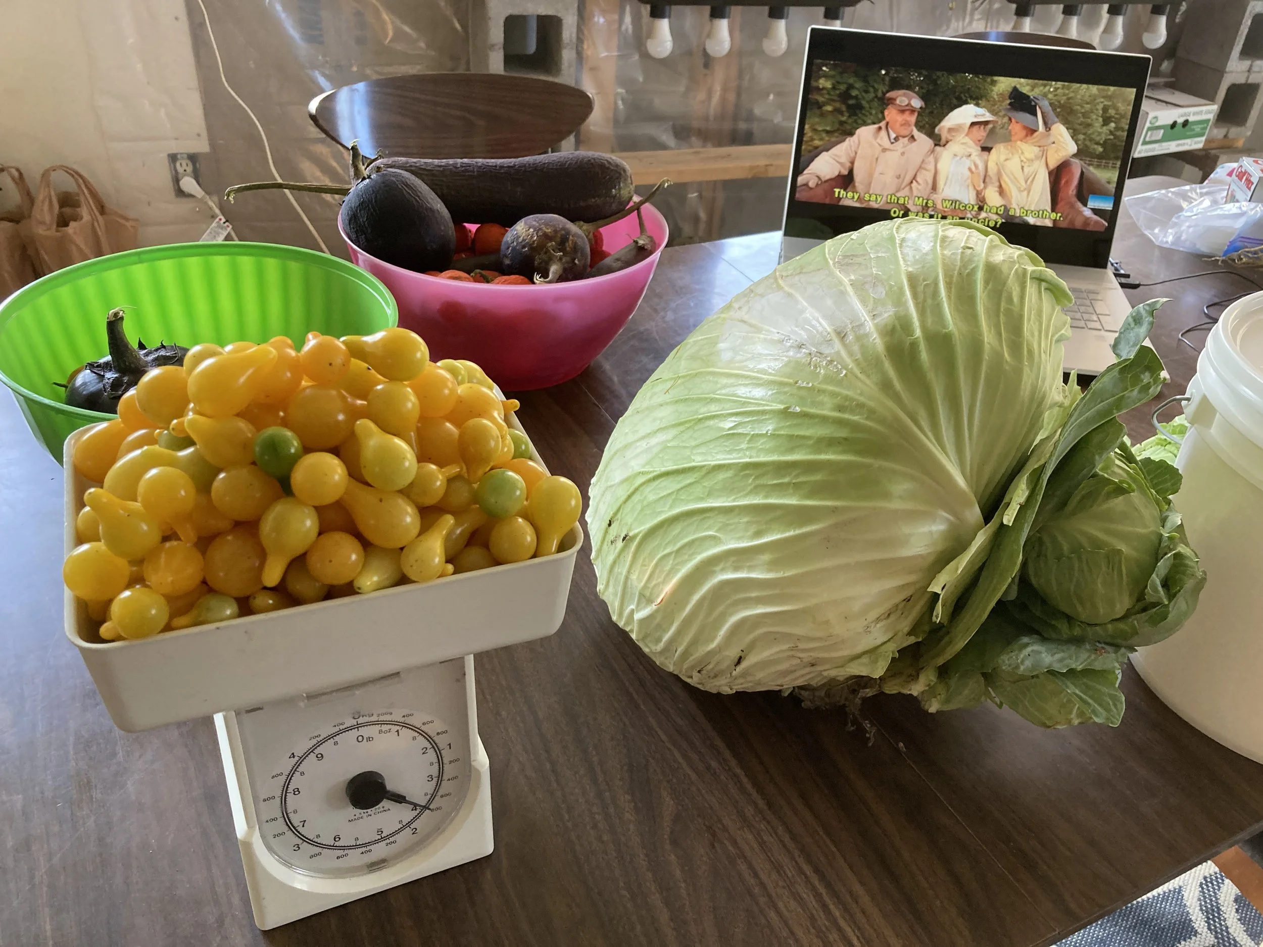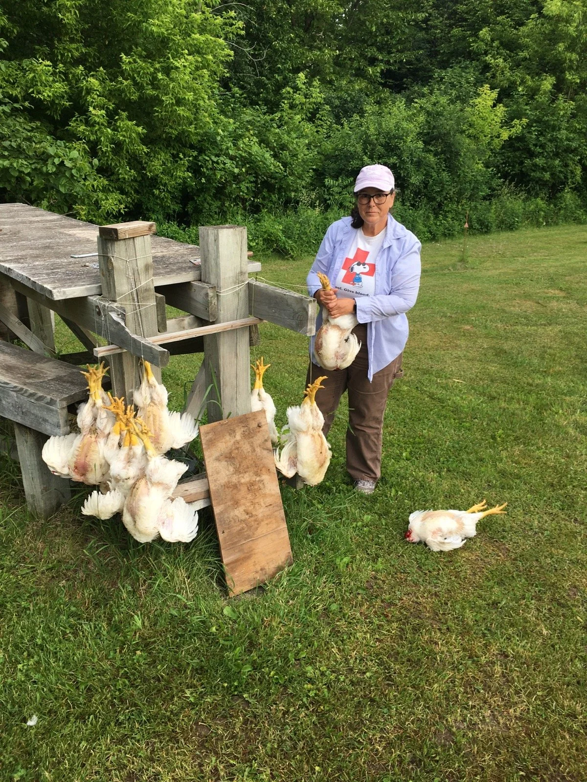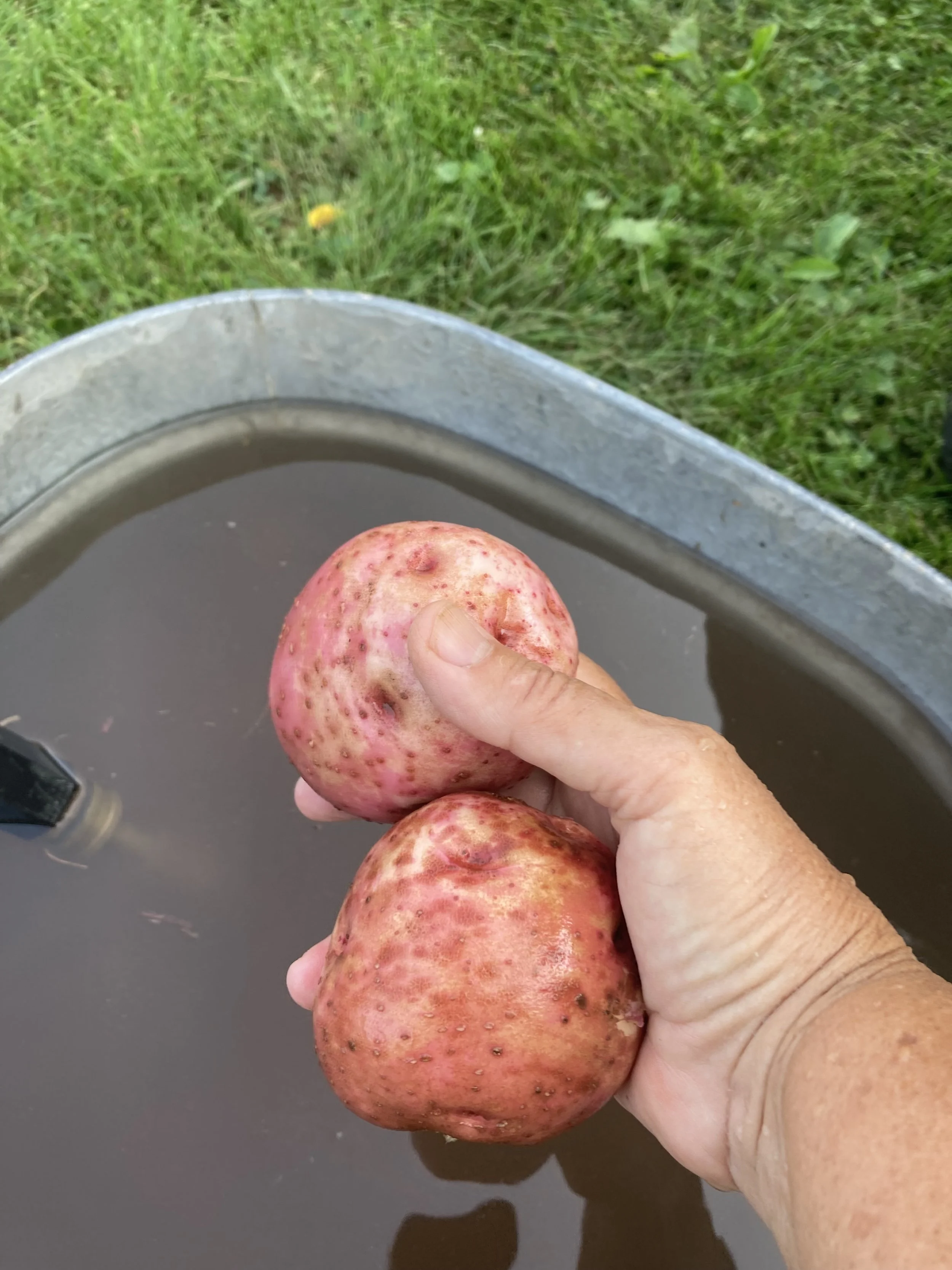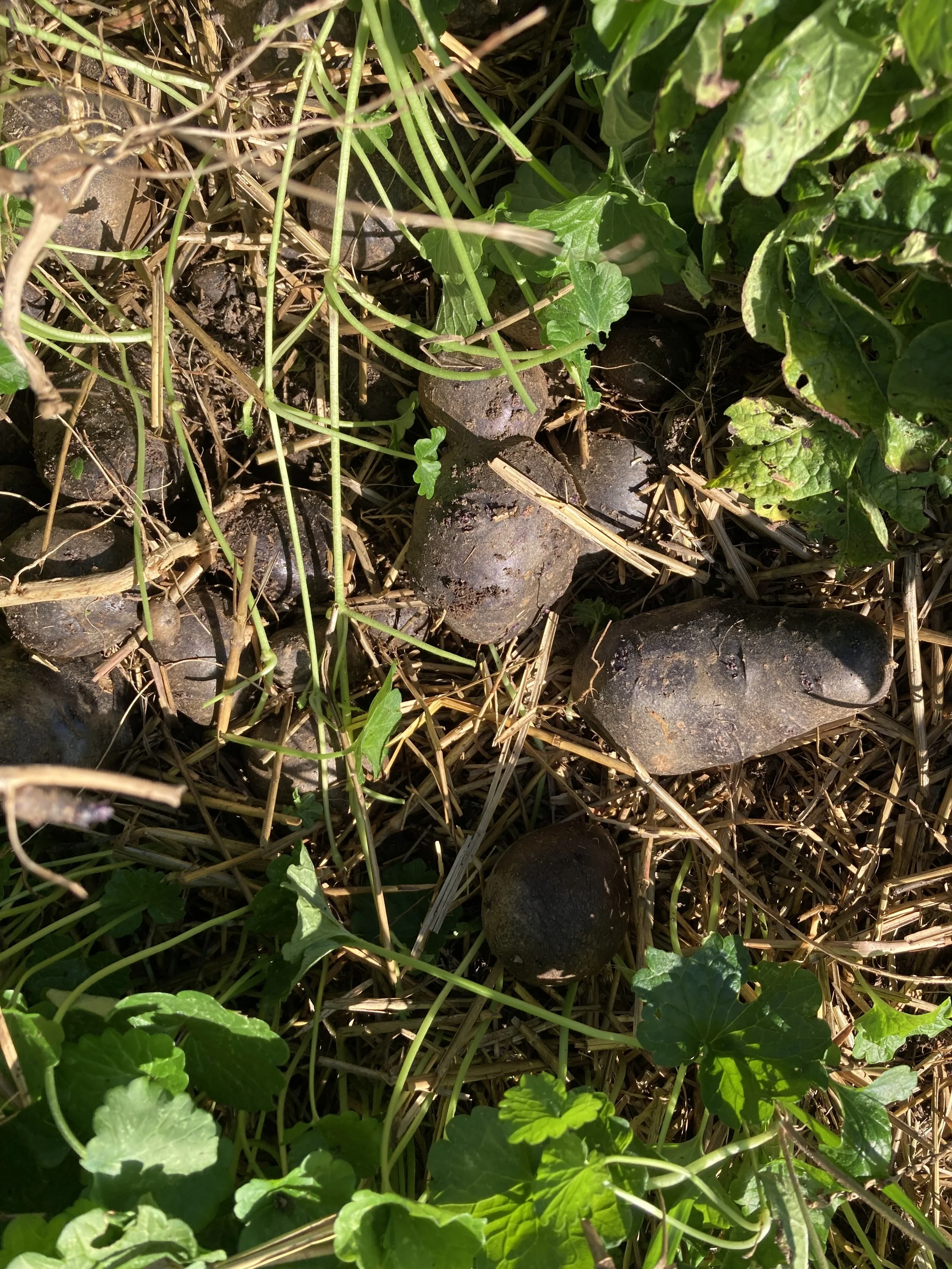 We grow four varieties of garlic: two hard neck and two soft neck. The “neck” refers to the stems. These are River Giant, and they loved the weather this year! Only a few tried to bolt (creating a hard neck in a soft neck variety), so I was able to braid them easily. I will bundle the hard necks. All will go down into the basement, where it is dry, cool, and dark. We are just finishing off last year’s garlic, which means we planted enough, but not too much. The soft necks tend to last longer than the hard neck varieties, as the paper around each clove clings tighter, protecting them from dehydration.