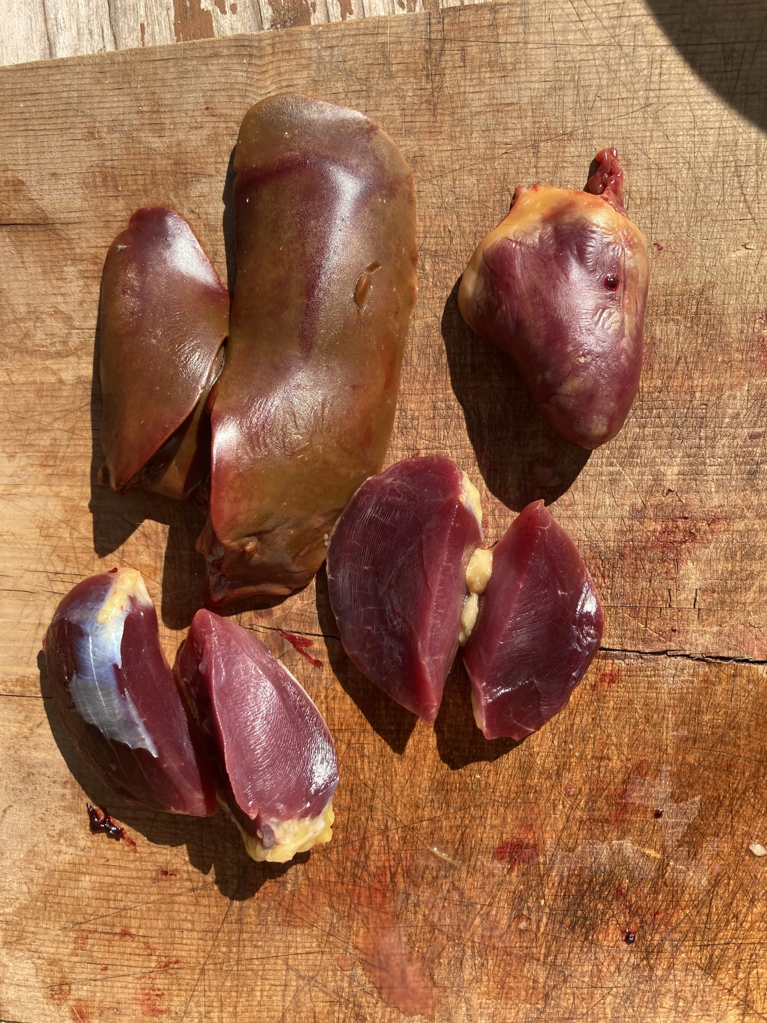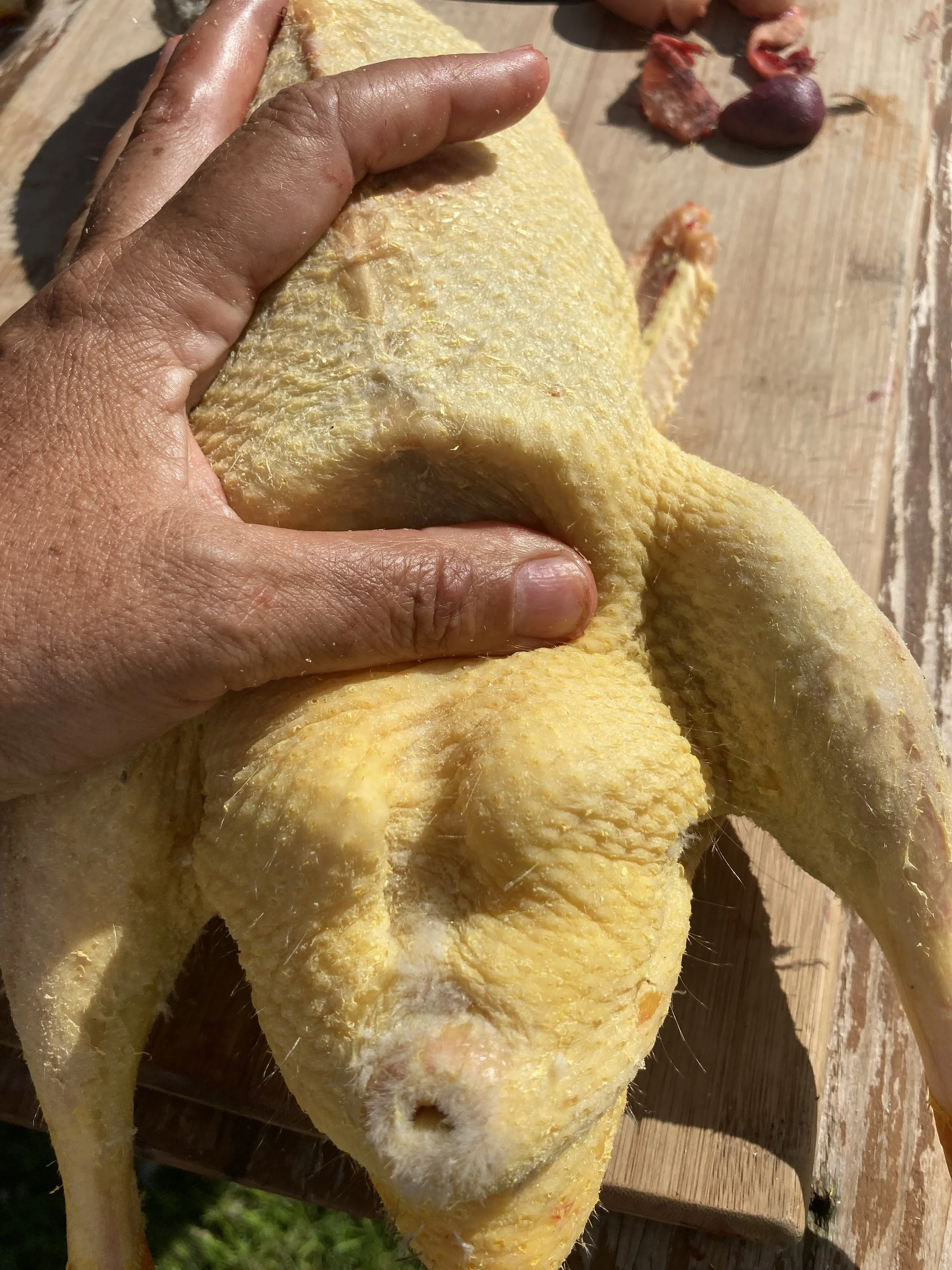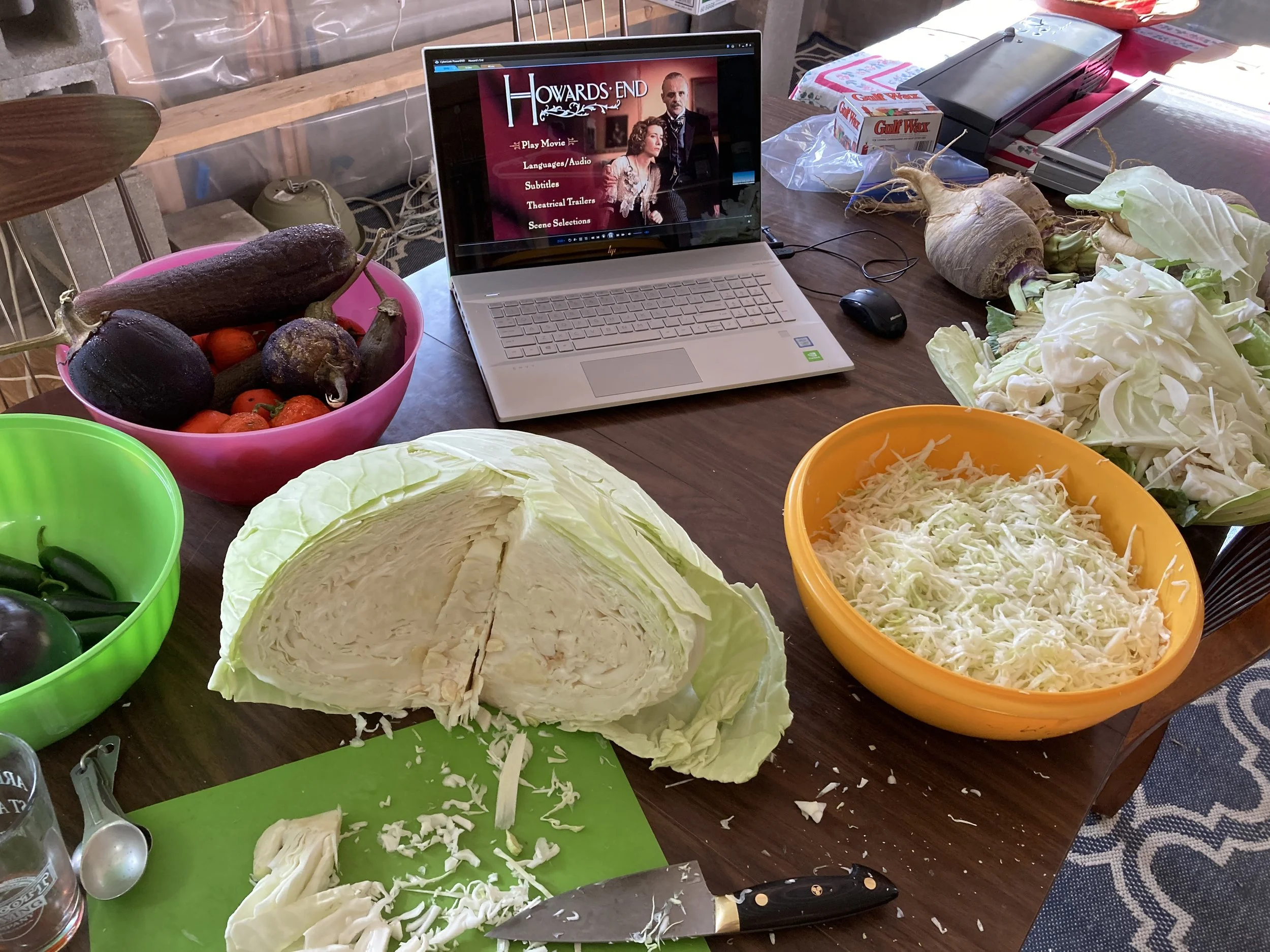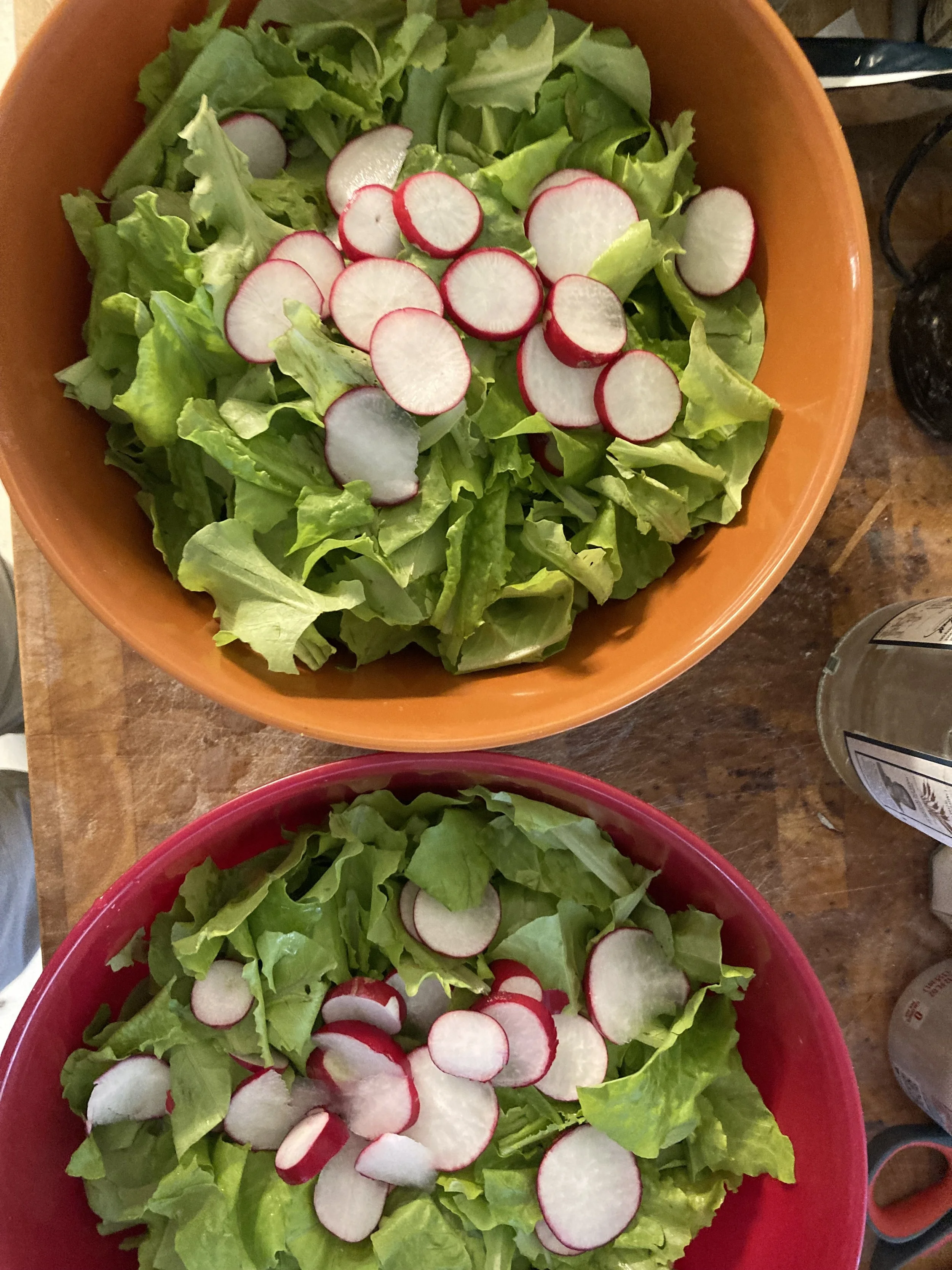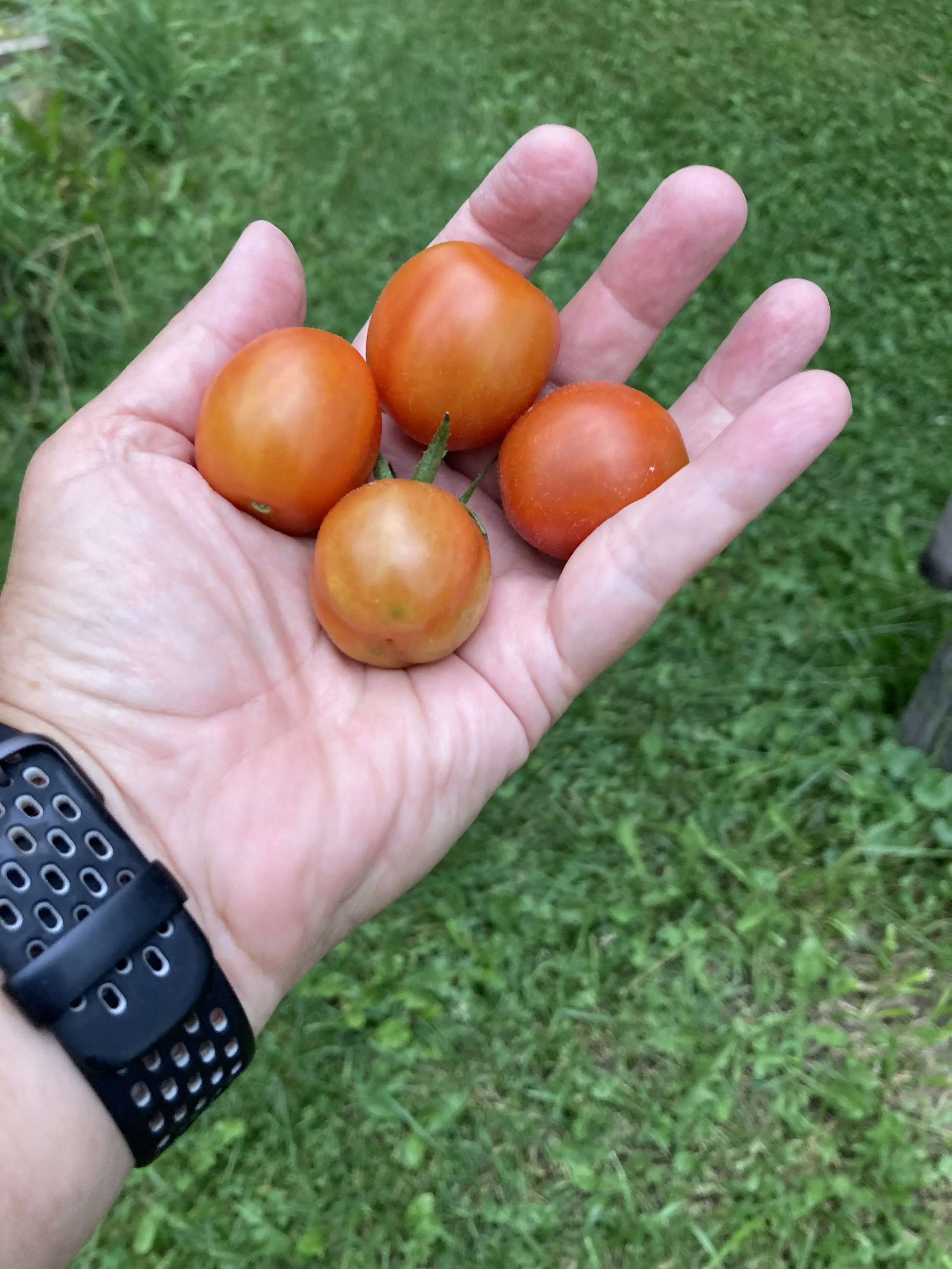 We grow four varieties of garlic: two hard neck and two soft neck. The “neck” refers to the stems. These are River Giant, and they loved the weather this year! Only a few tried to bolt (creating a hard neck in a soft neck variety), so I was able to braid them easily. I will bundle the hard necks. All will go down into the basement, where it is dry, cool, and dark. We are just finishing off last year’s garlic, which means we planted enough, but not too much. The soft necks tend to last longer than the hard neck varieties, as the paper around each clove clings tighter, protecting them from dehydration.