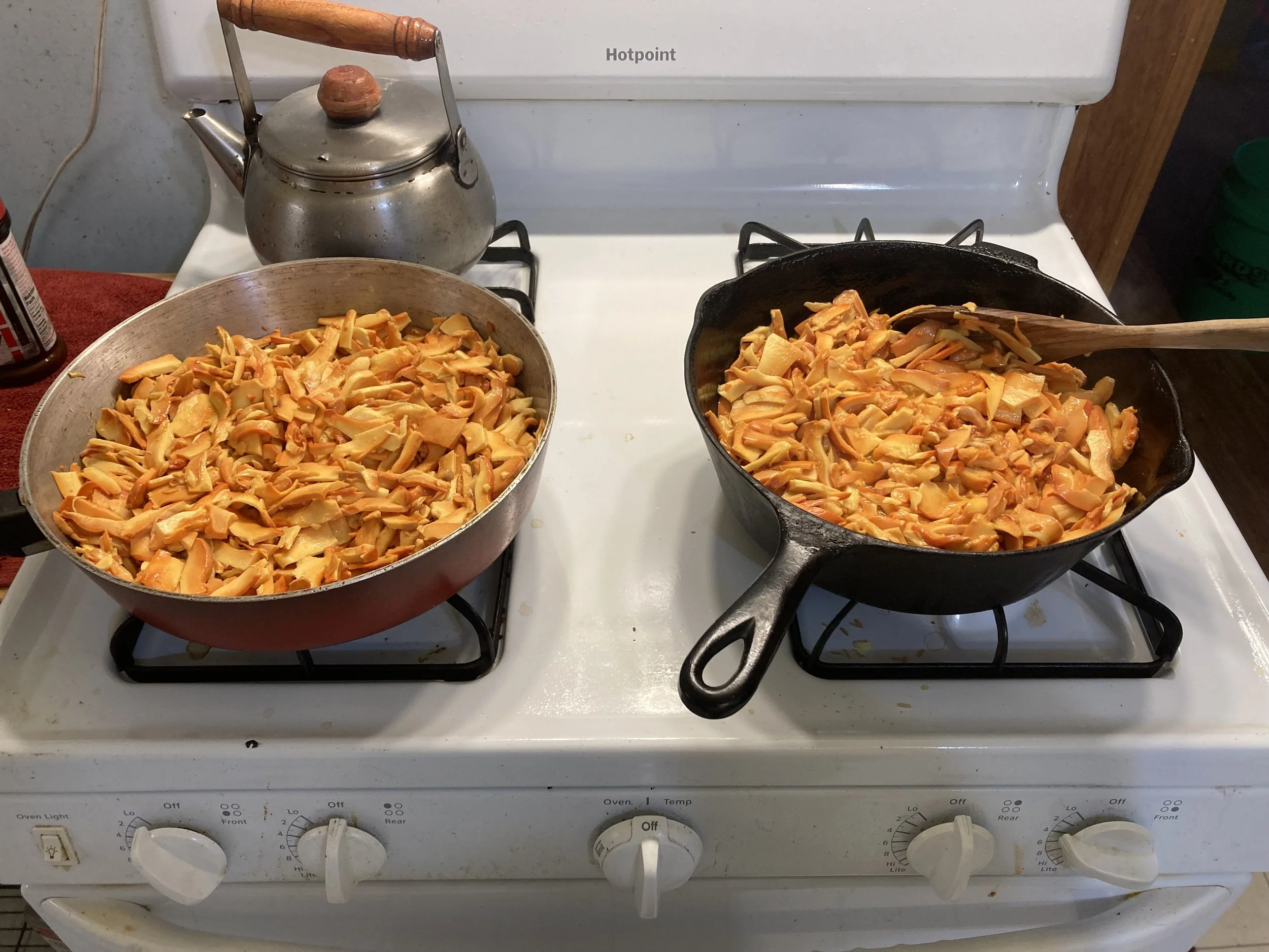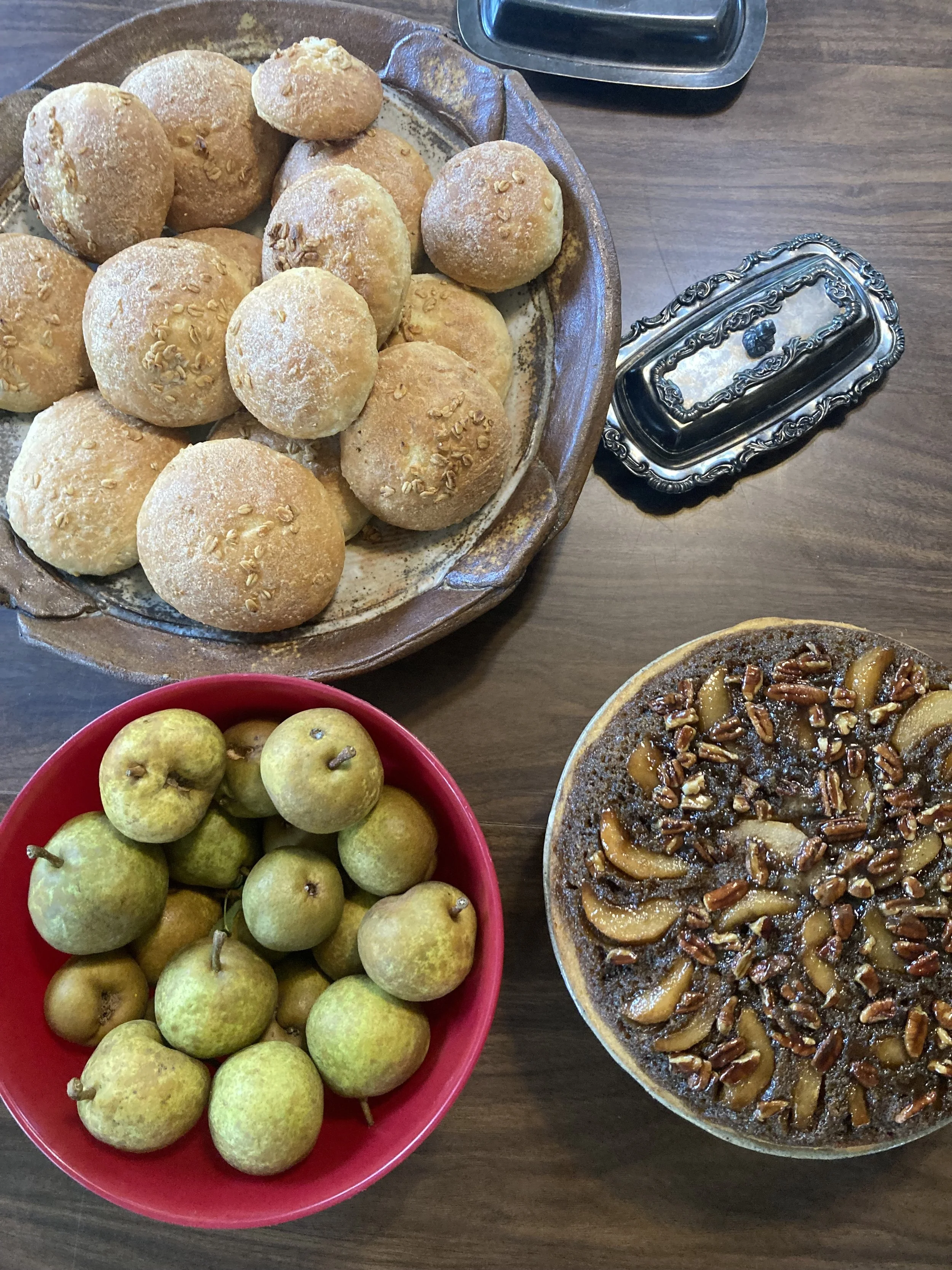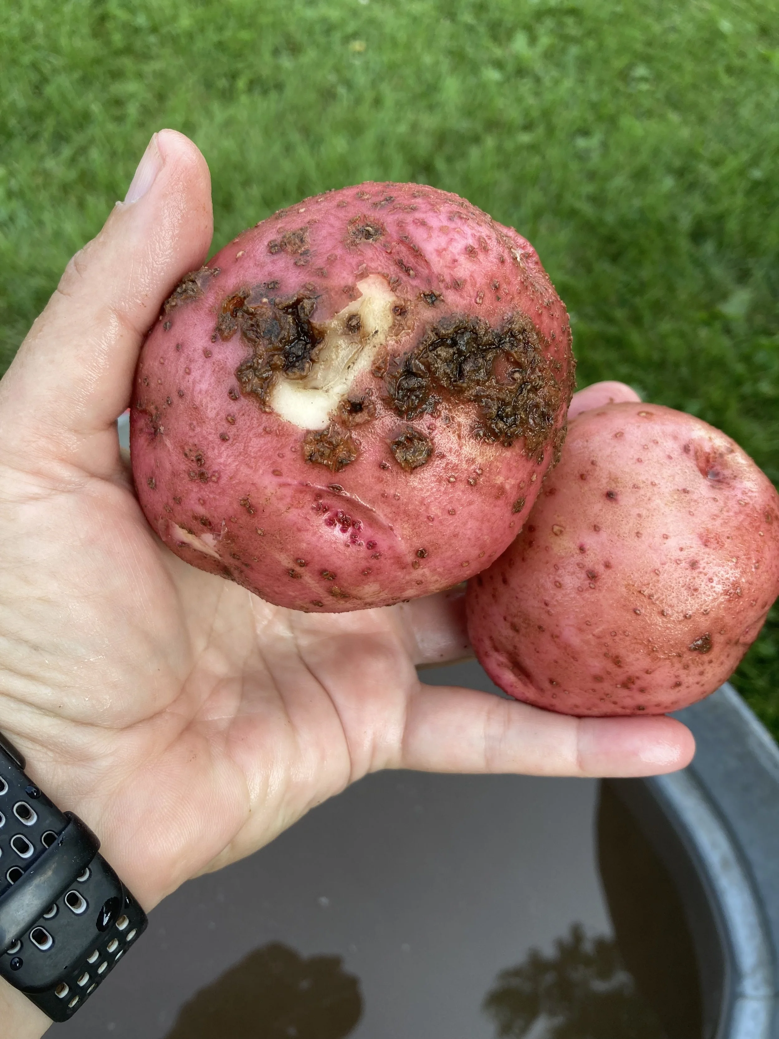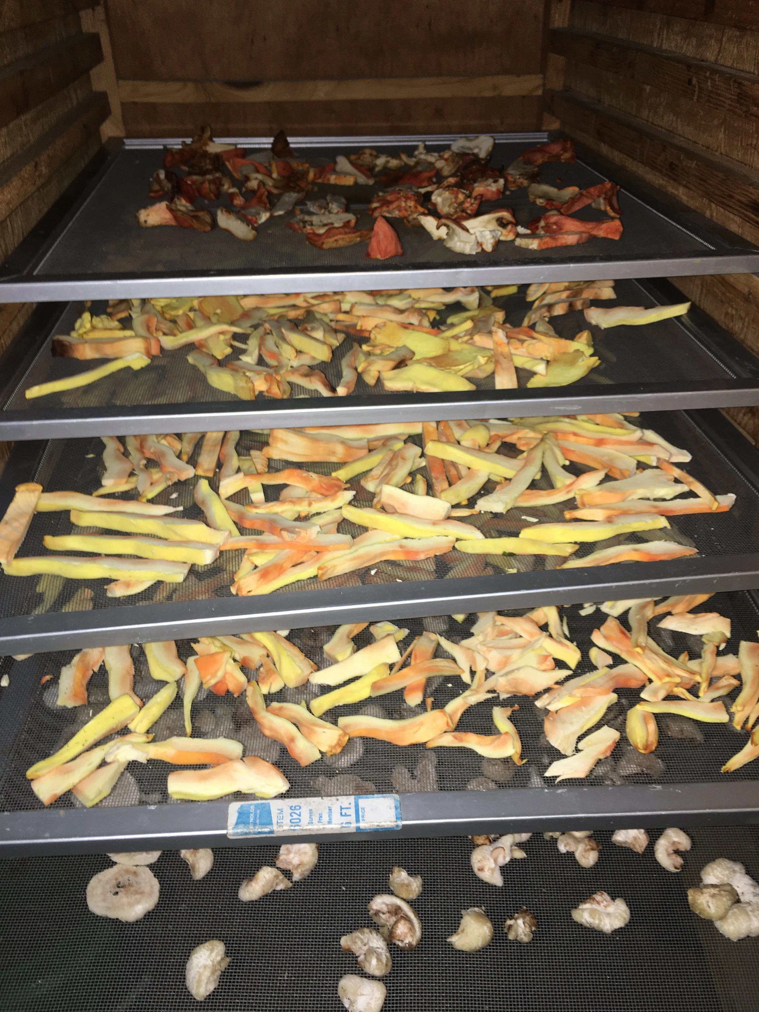 We grow four varieties of garlic: two hard neck and two soft neck. The “neck” refers to the stems. These are River Giant, and they loved the weather this year! Only a few tried to bolt (creating a hard neck in a soft neck variety), so I was able to braid them easily. I will bundle the hard necks. All will go down into the basement, where it is dry, cool, and dark. We are just finishing off last year’s garlic, which means we planted enough, but not too much. The soft necks tend to last longer than the hard neck varieties, as the paper around each clove clings tighter, protecting them from dehydration.