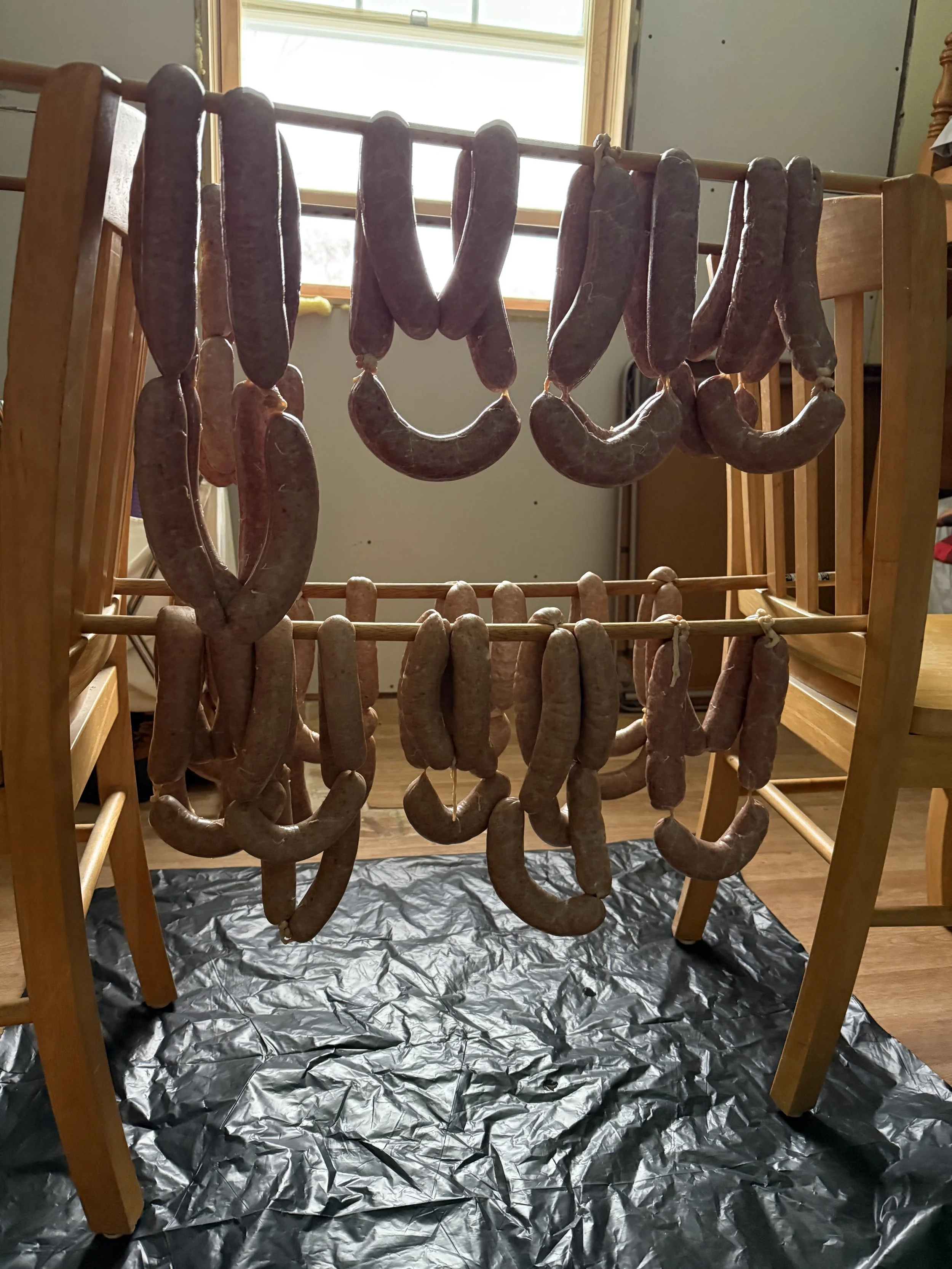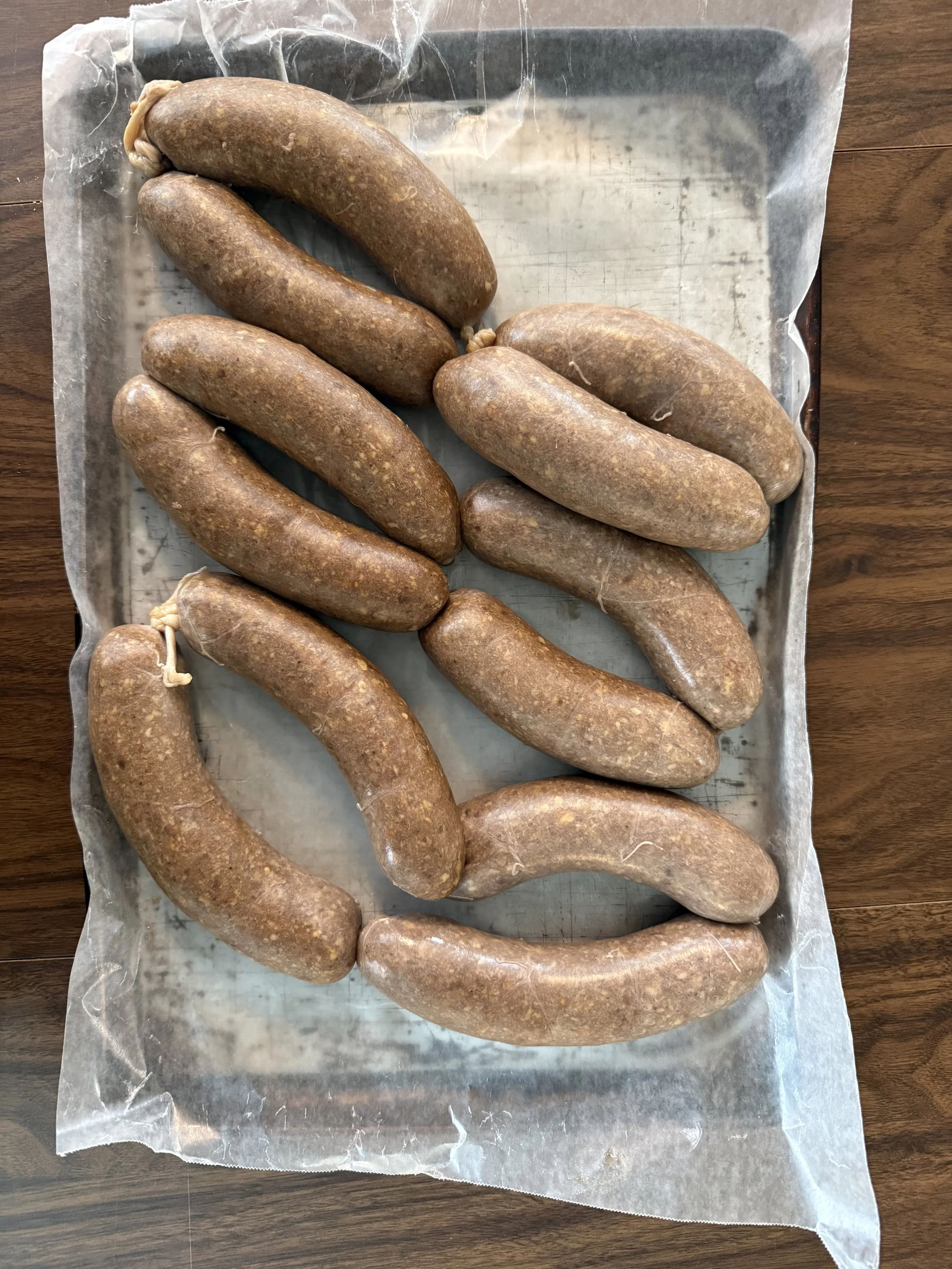 I packaged up the last of the sausages today. Our final count was 75 pounds: 25 of Swedish potato, 20 pounds of brats and 30 of kielbasa. We feed them to family and friends, but still there are many to store. I managed to find space in our freezers.
