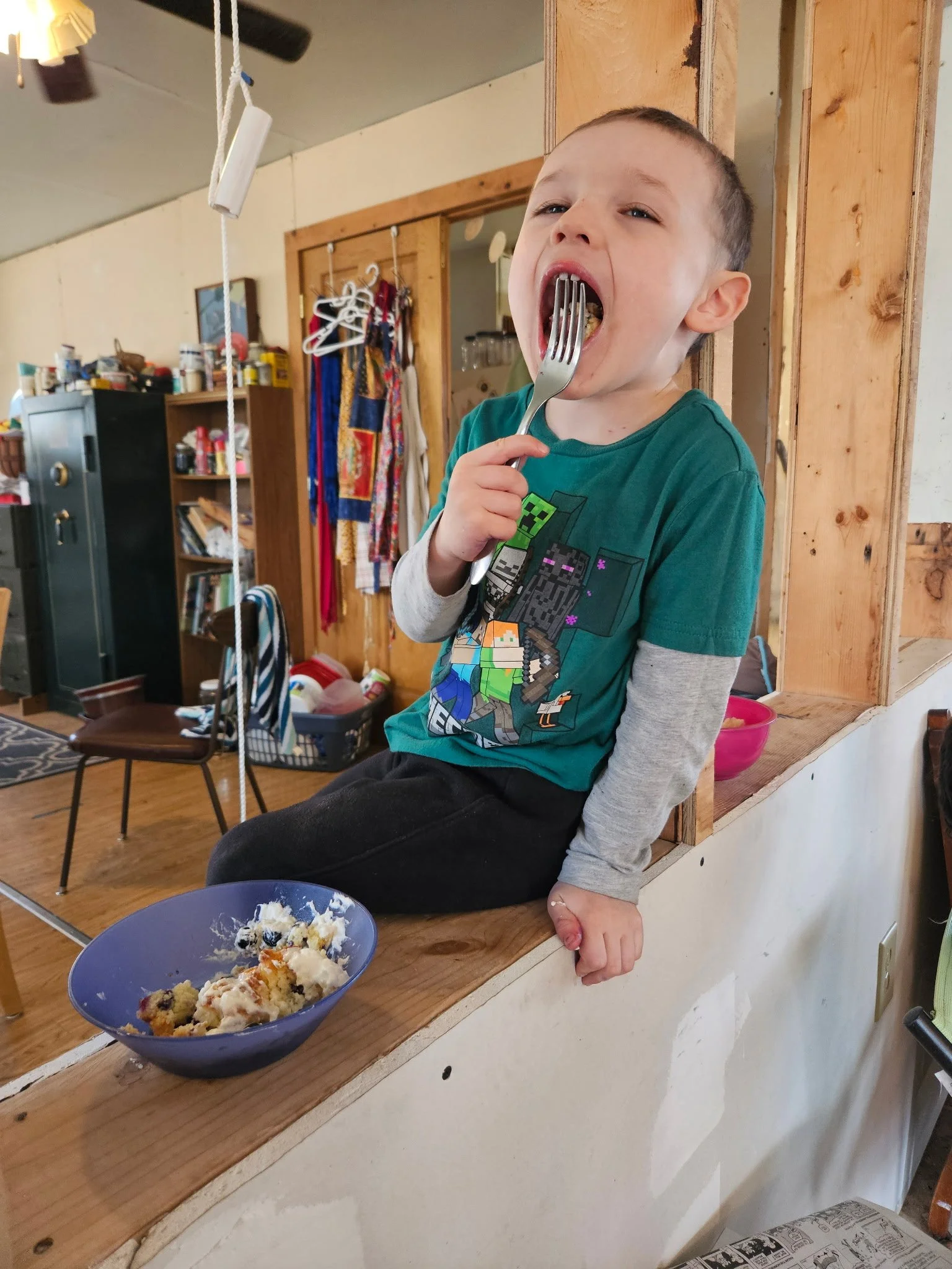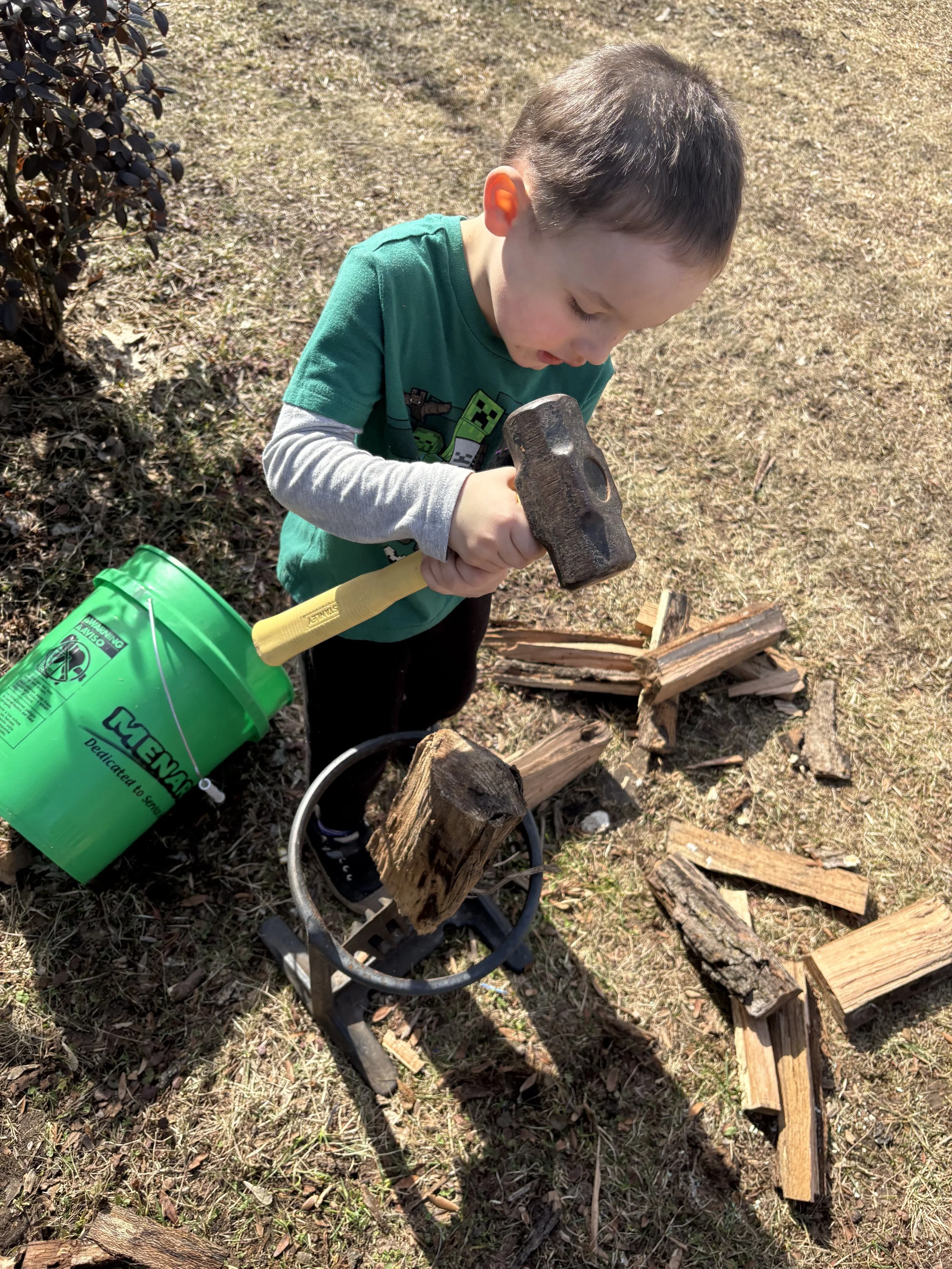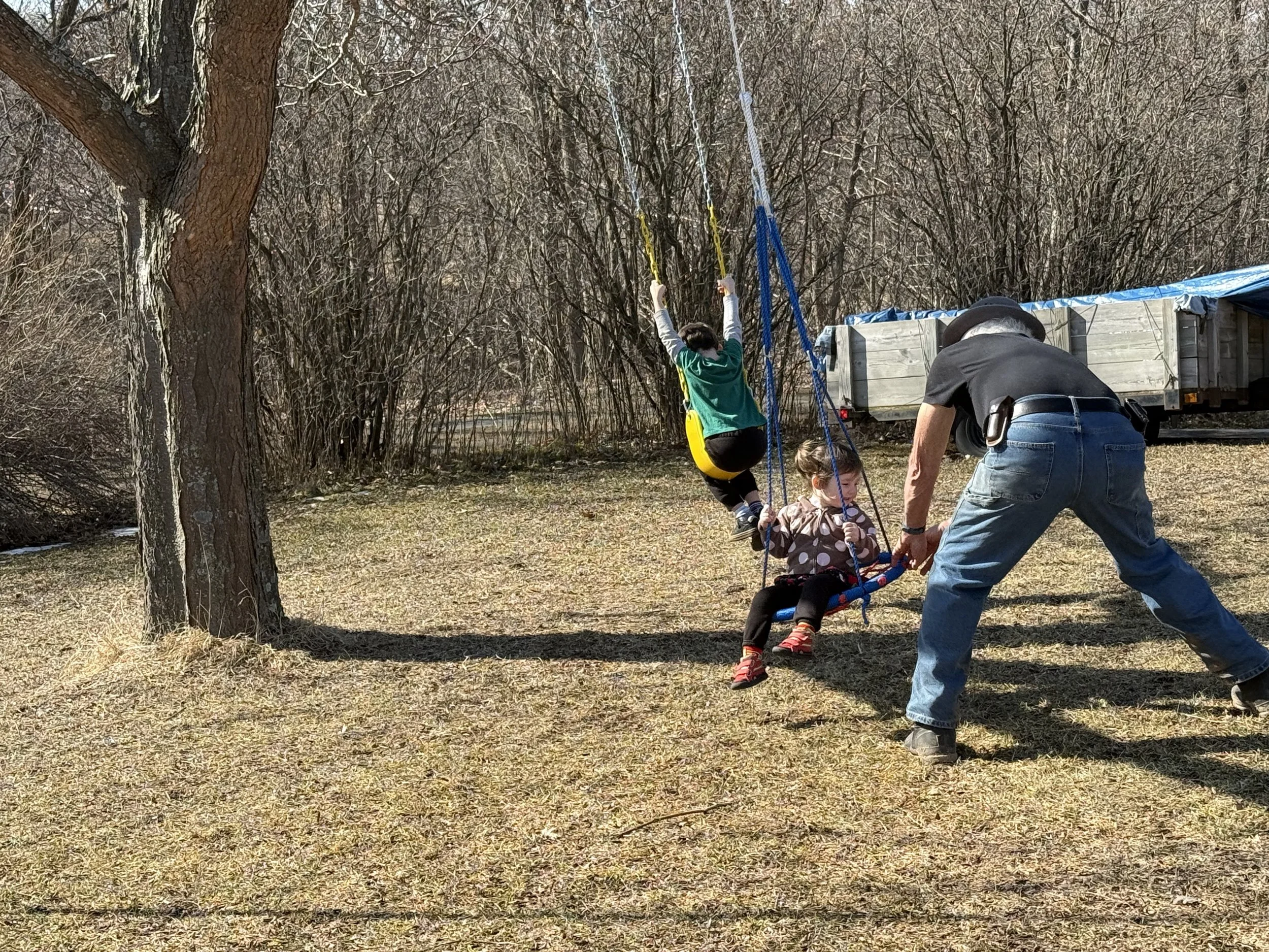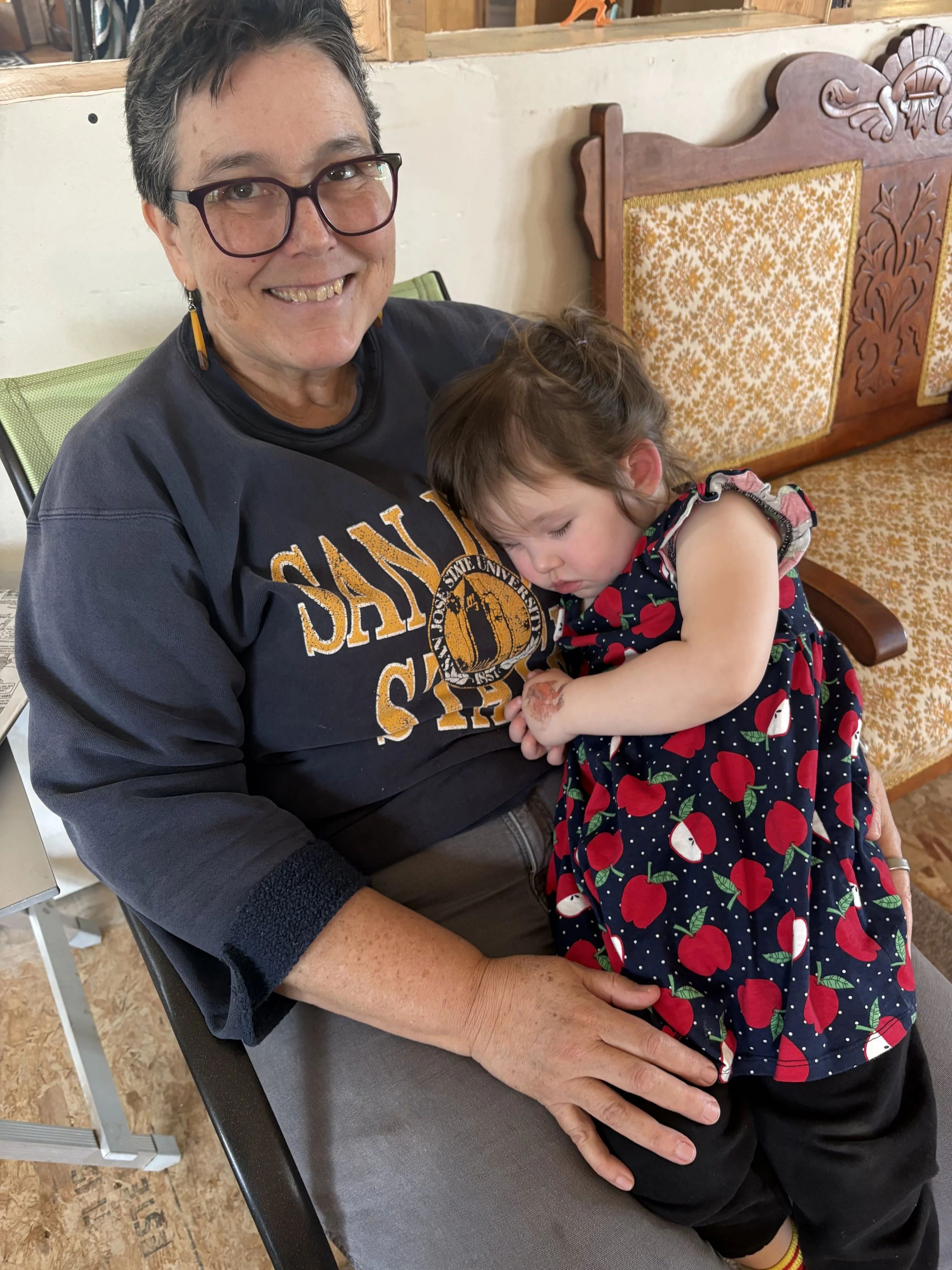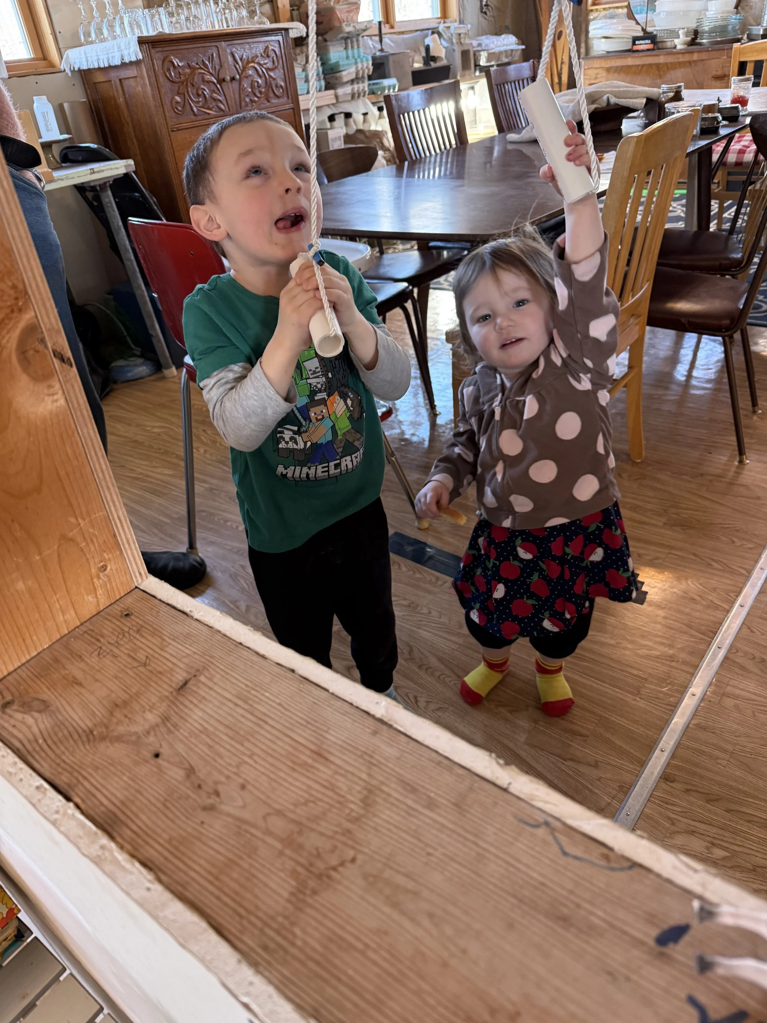 We put the younger Grands to work, tiring them out. There is nothing like holding a sleeping child.