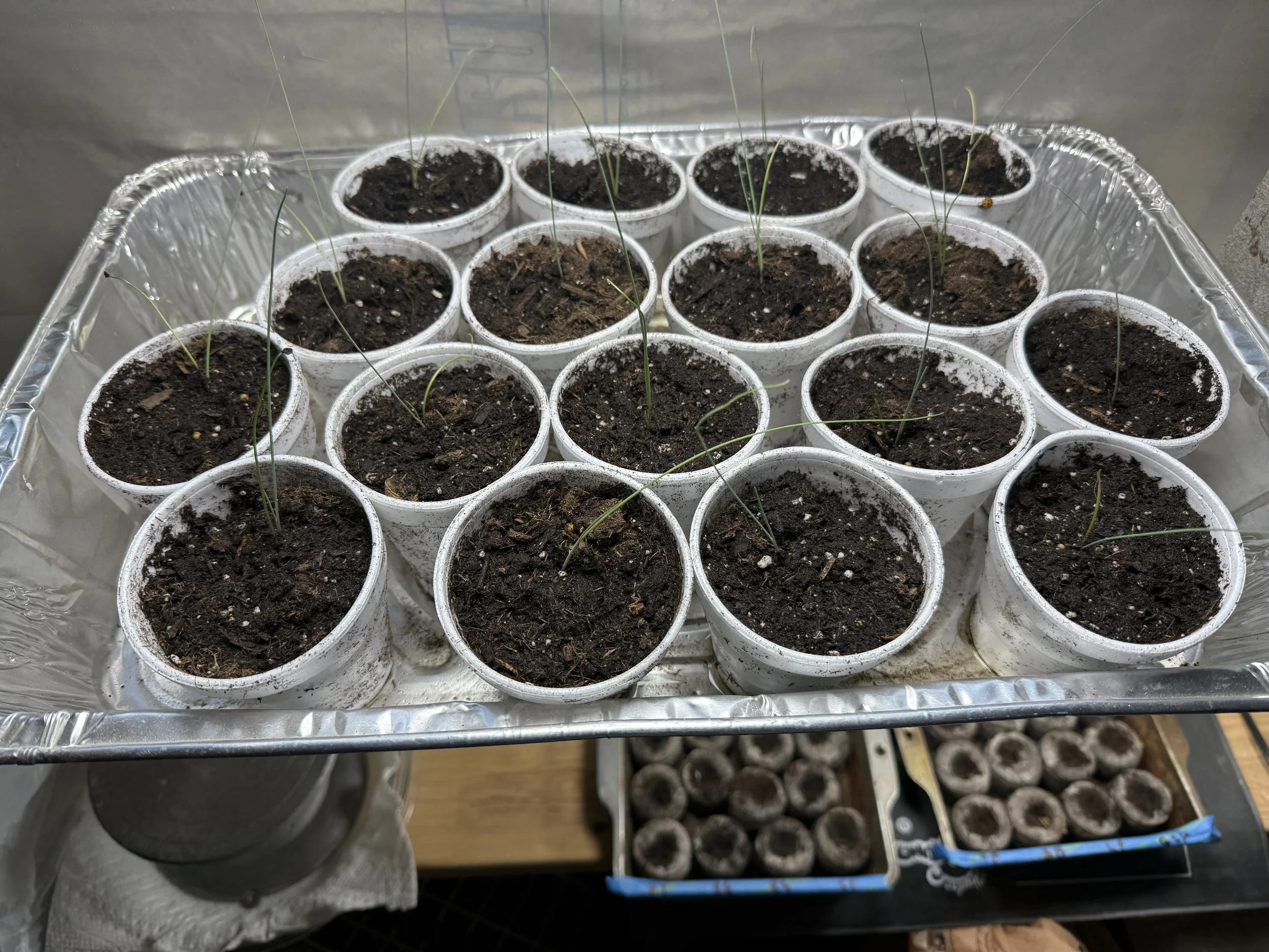 As we find signs of spring. Leeks repotted. Tomatoes and other nightshades planted. Daffodils showing. Hyacinth blooming. Garlic growing. Rhubarb breaking soil. Frogs coming to life after a winter hibernation.