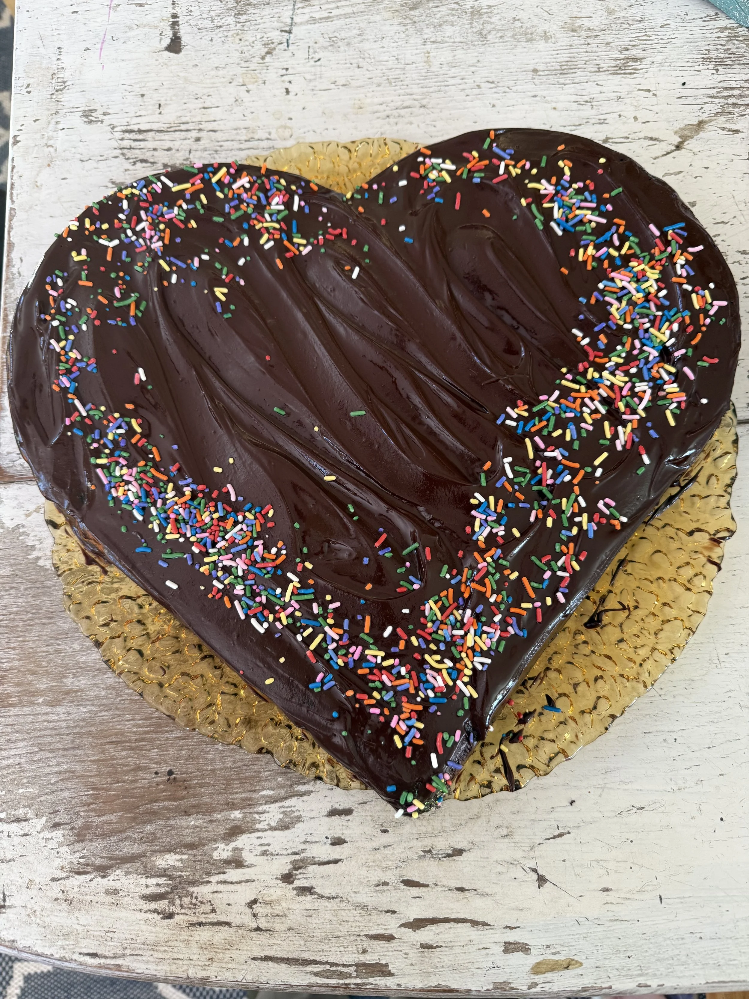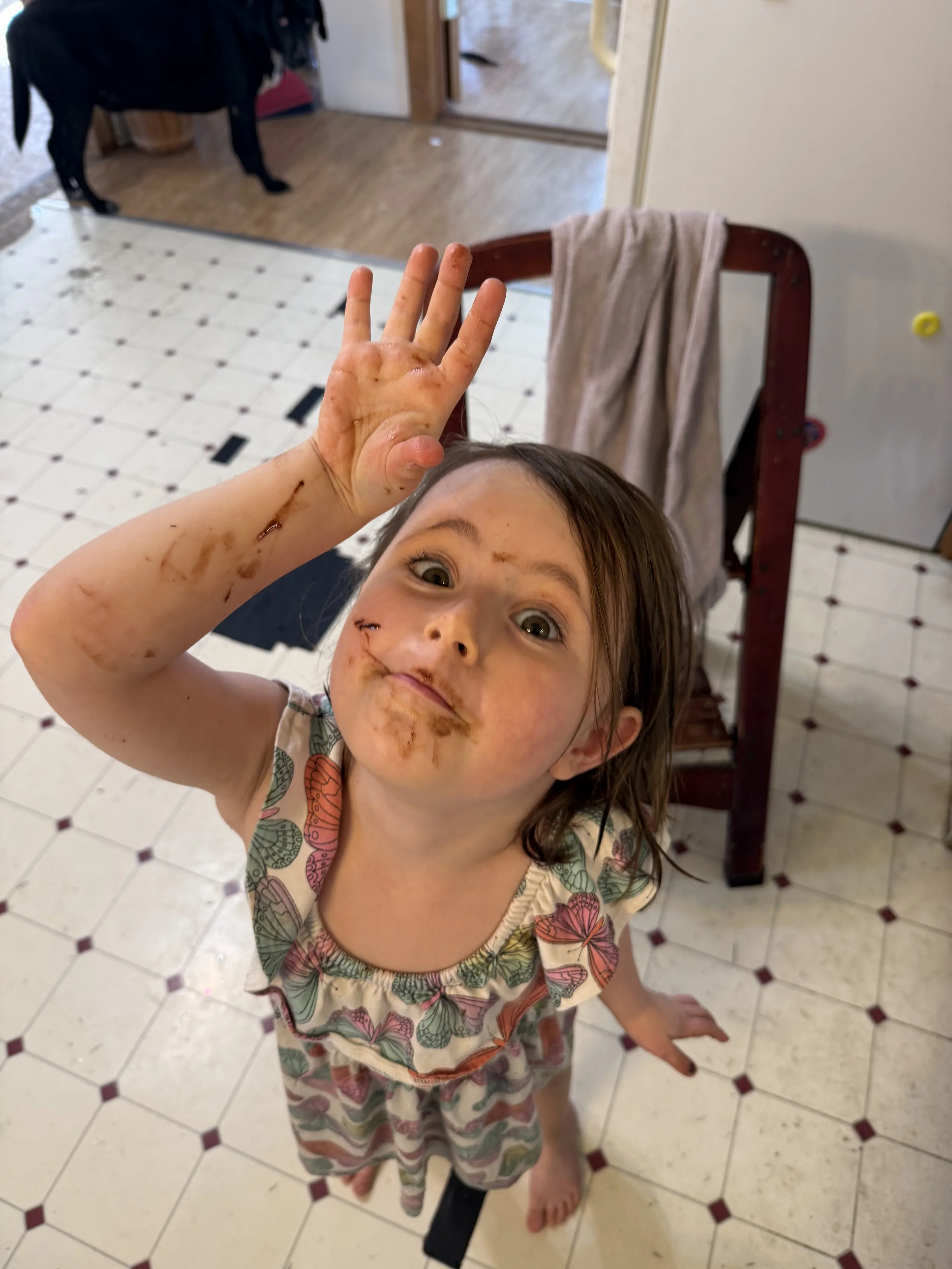 GG#2 also helped make a Valentines Day cake. They applied the sprinkles. The girls opted to save the cake for Day#3, so they could share with their cousins. Then again, they did get to gobble up the cake scraps and leftover frosting, so they may have already been adequately steeped in chocolate.