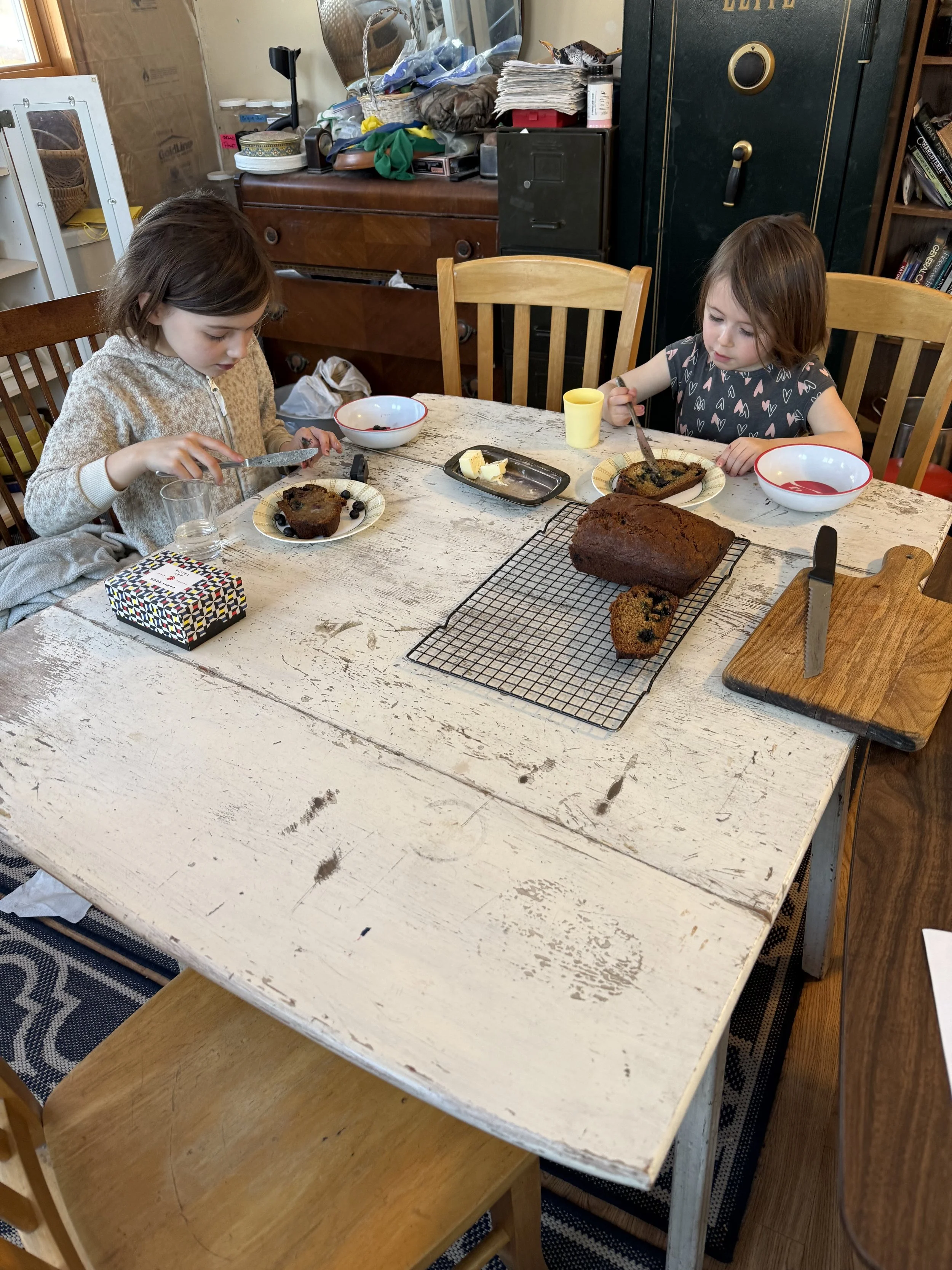 We started the first day by putting GG#2 to work making blueberry banana bread. Both girls gave it two thumbs up.