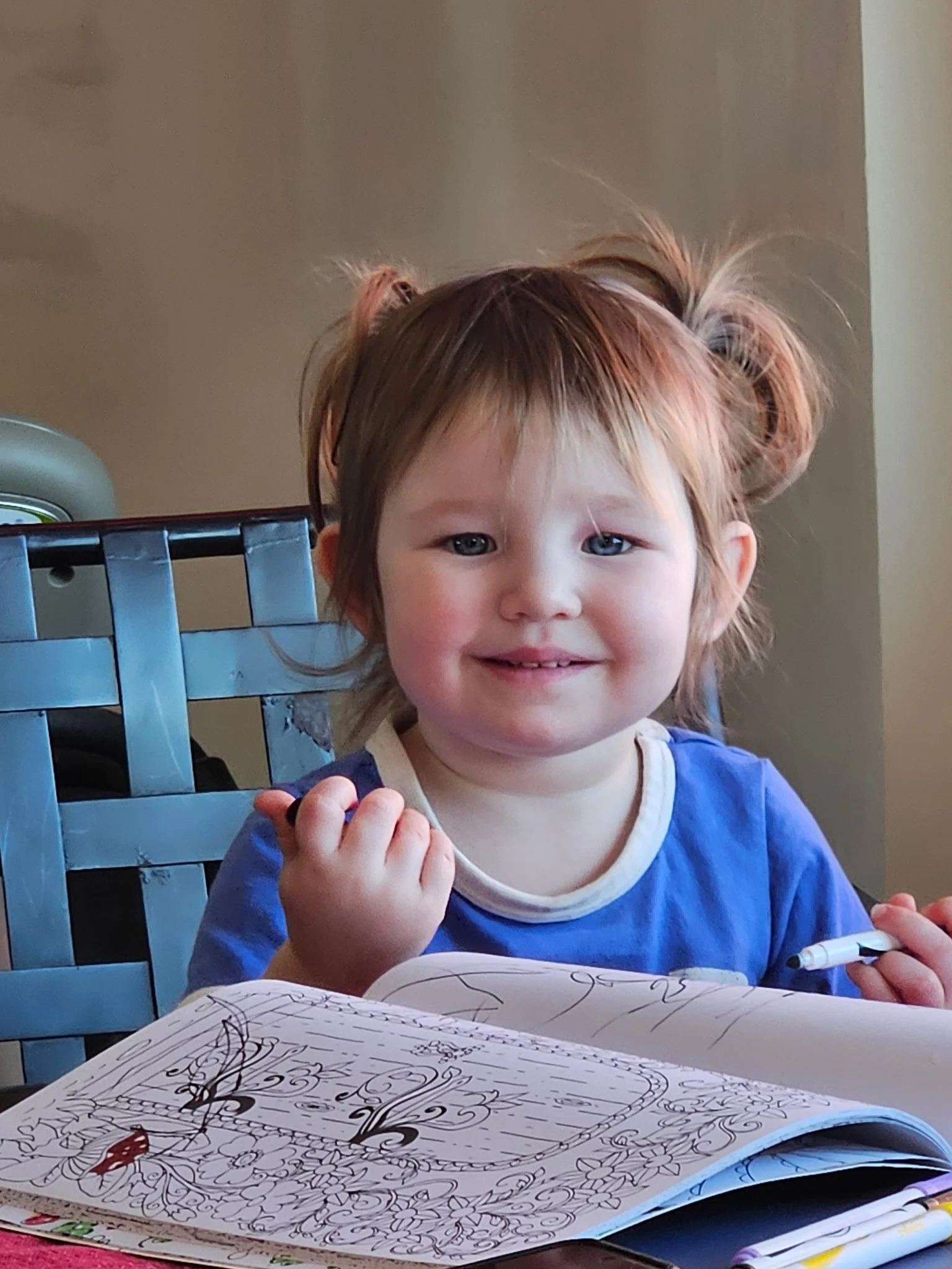 Day #3 brought the cousins. It was a whirlwind visit (hence few photos), as GG#3 wasn’t feeling chipper. Turns out she has an ear infection and RSV, which explains her need to be home and cuddled. The Grand Guy finished his artwork at home.