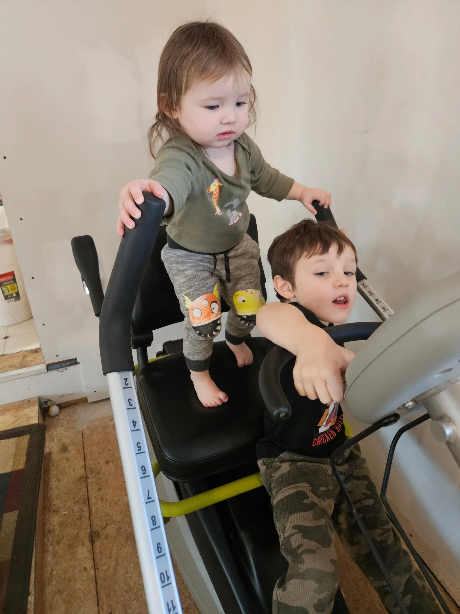 All the kids burned off some energy waiting for noon dinner by trying out our new elliptical machine. We began using it before hunting season started. We look forward to having our regular schedule back again soon. We got the elliptical to keep training during the winter and be bike-riding ready next spring.