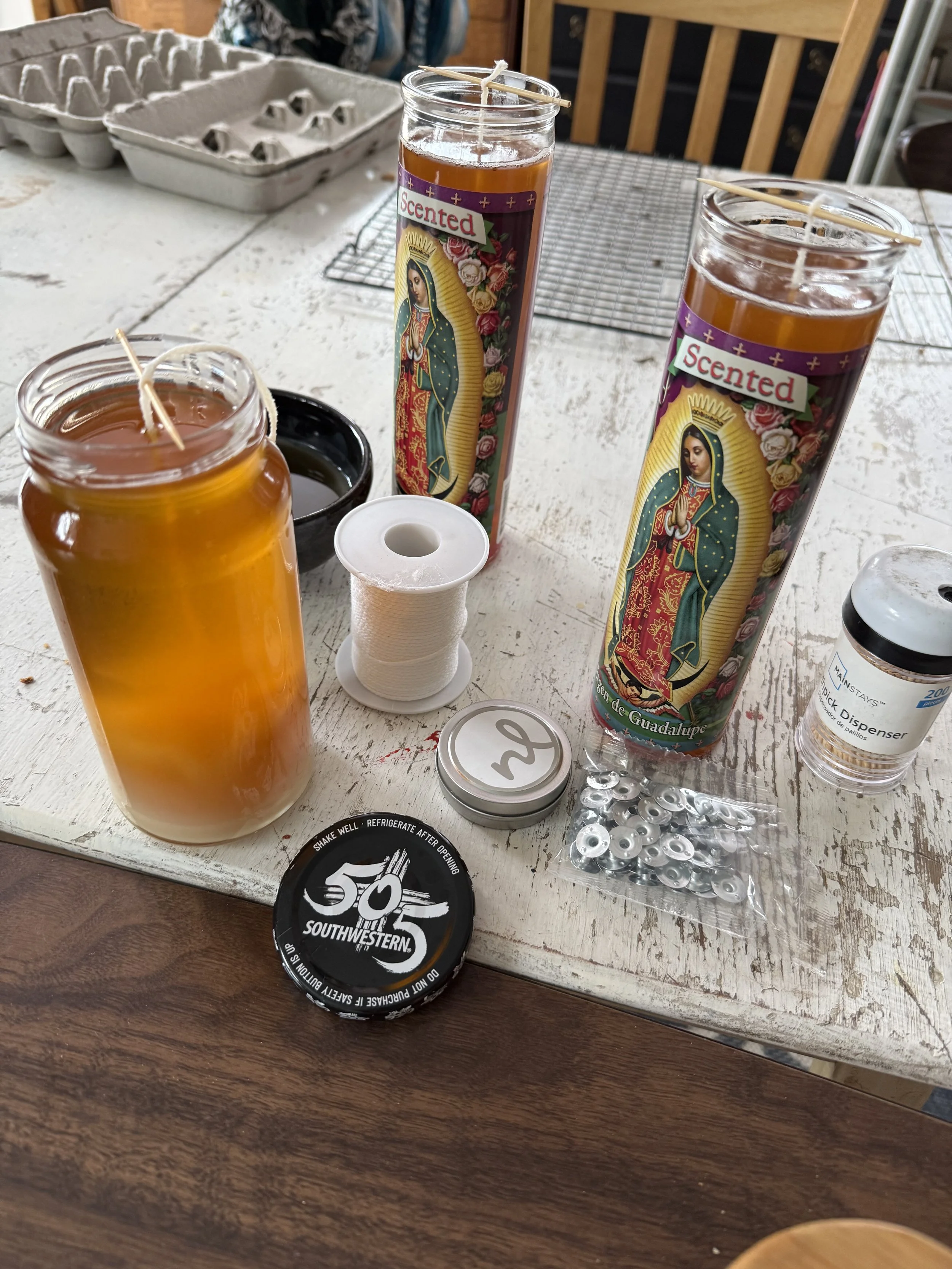 While Michael makes soap, I make candles.
