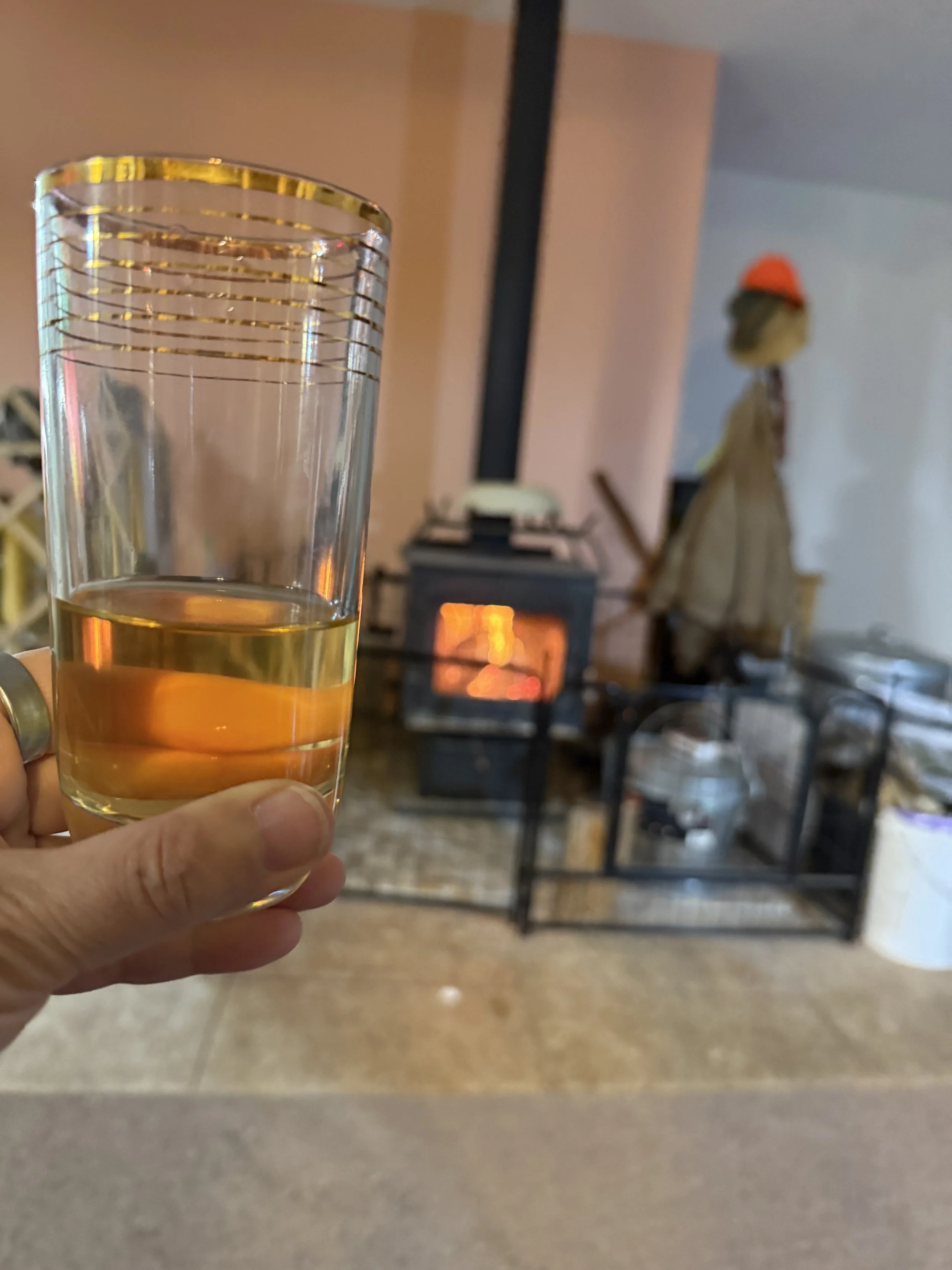 A mid-afternoon Honeycrisp cider reminds us why we grow fruit and press it. The early pears came ripe when we had no time. They fed the bees.