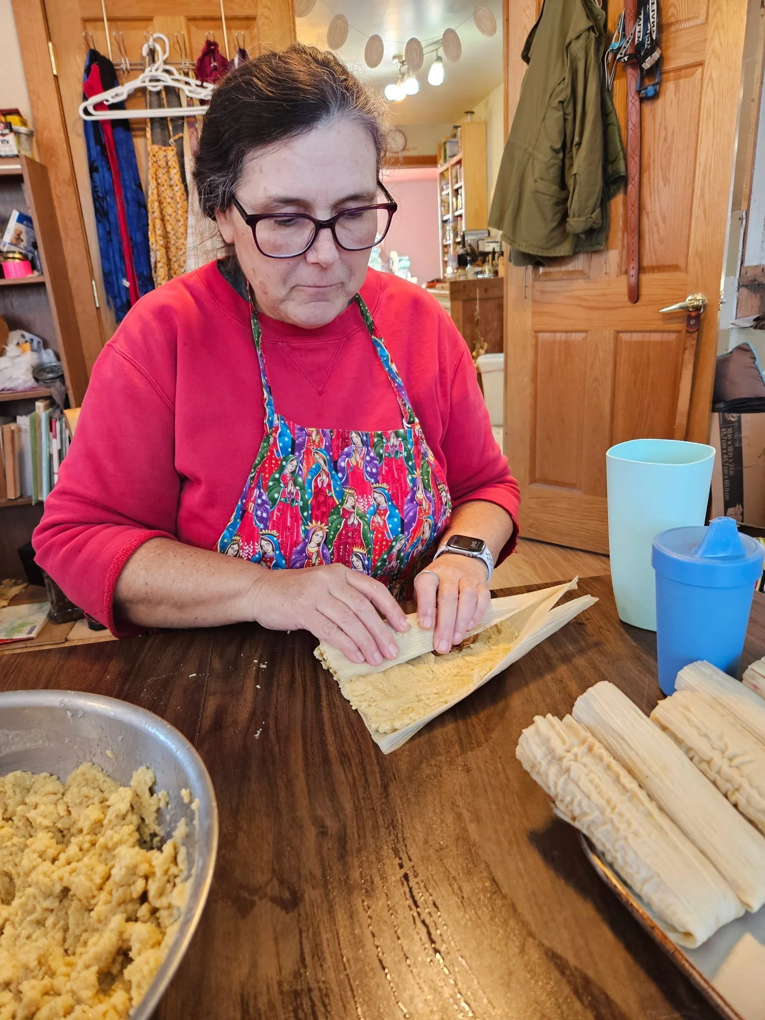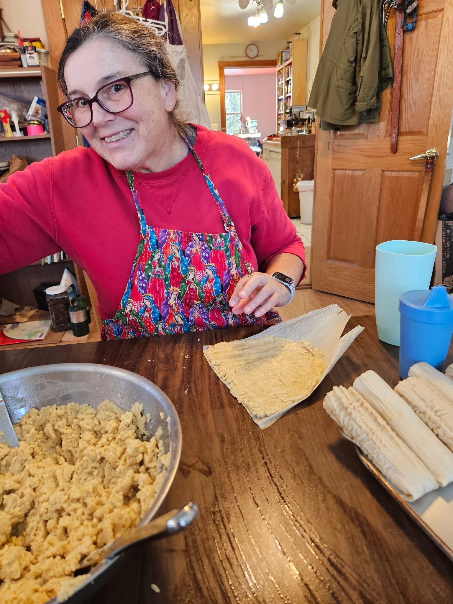 Some people have ham. Others serve turkey. We tuck into tamales on Christmas! Which means, some time prior, we have a tamalada, or a tamale making party. Today was that day!