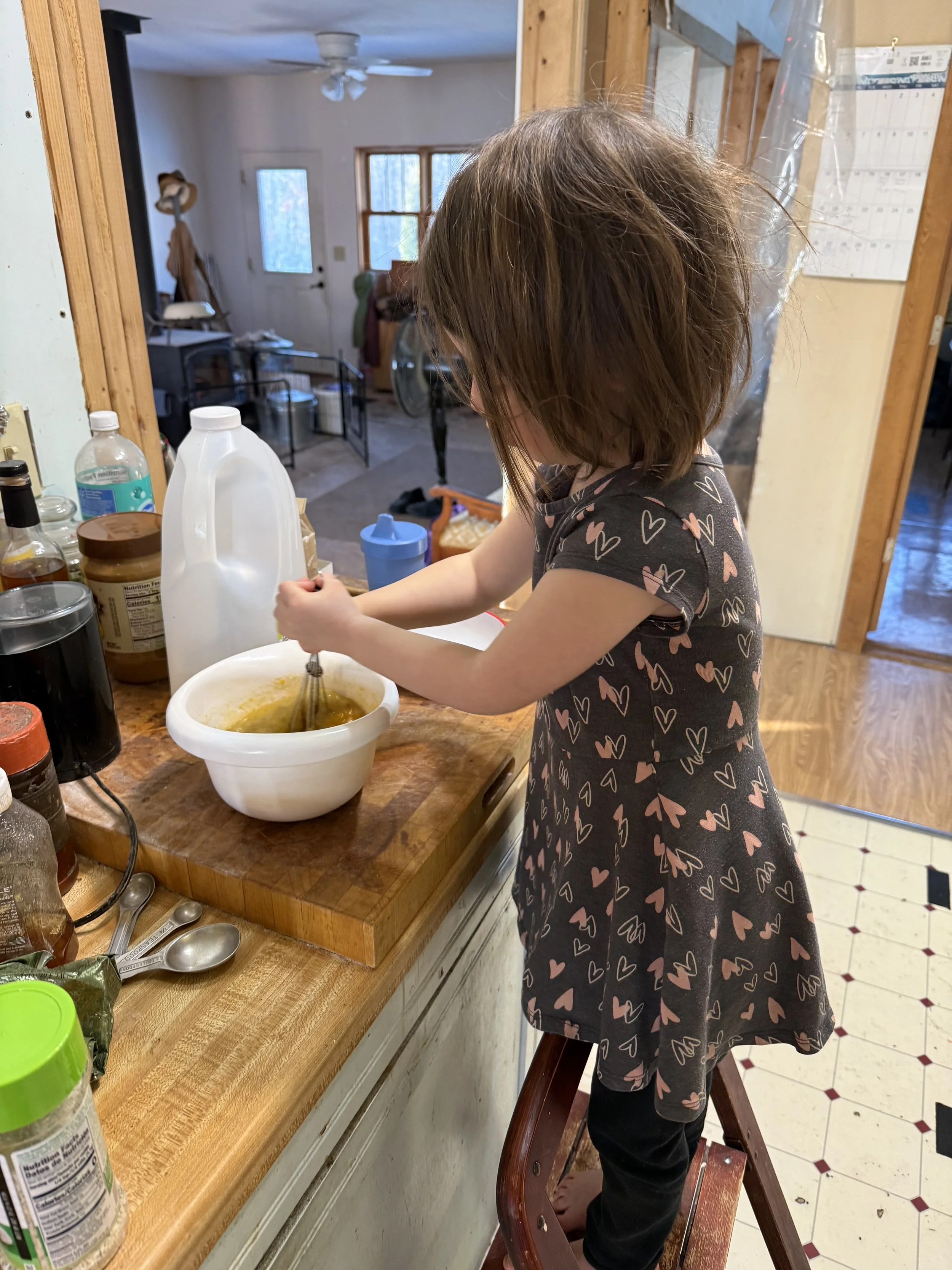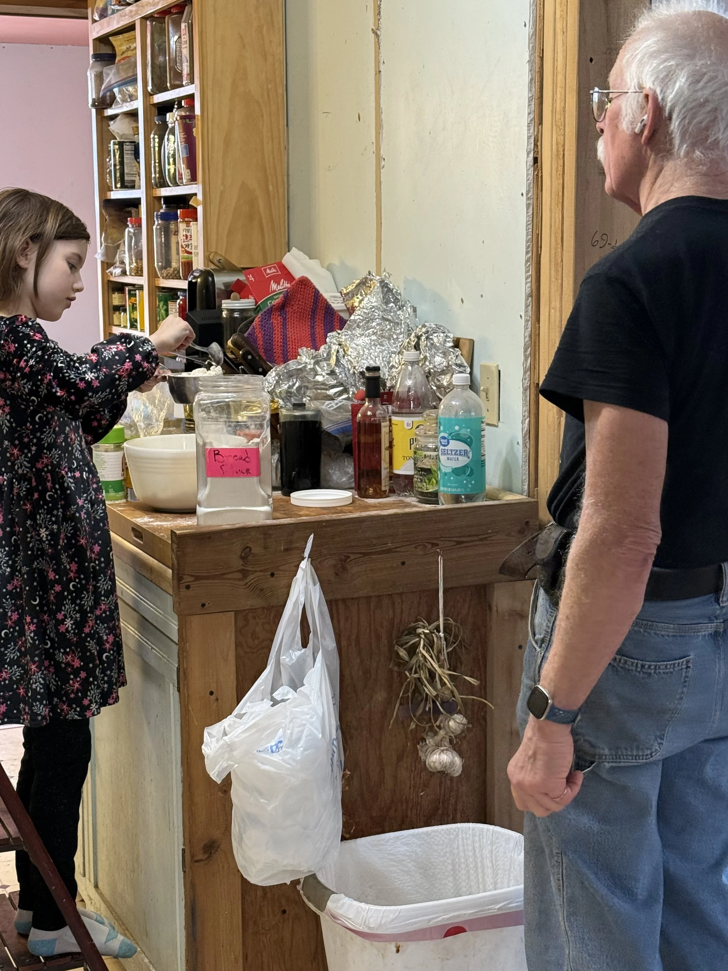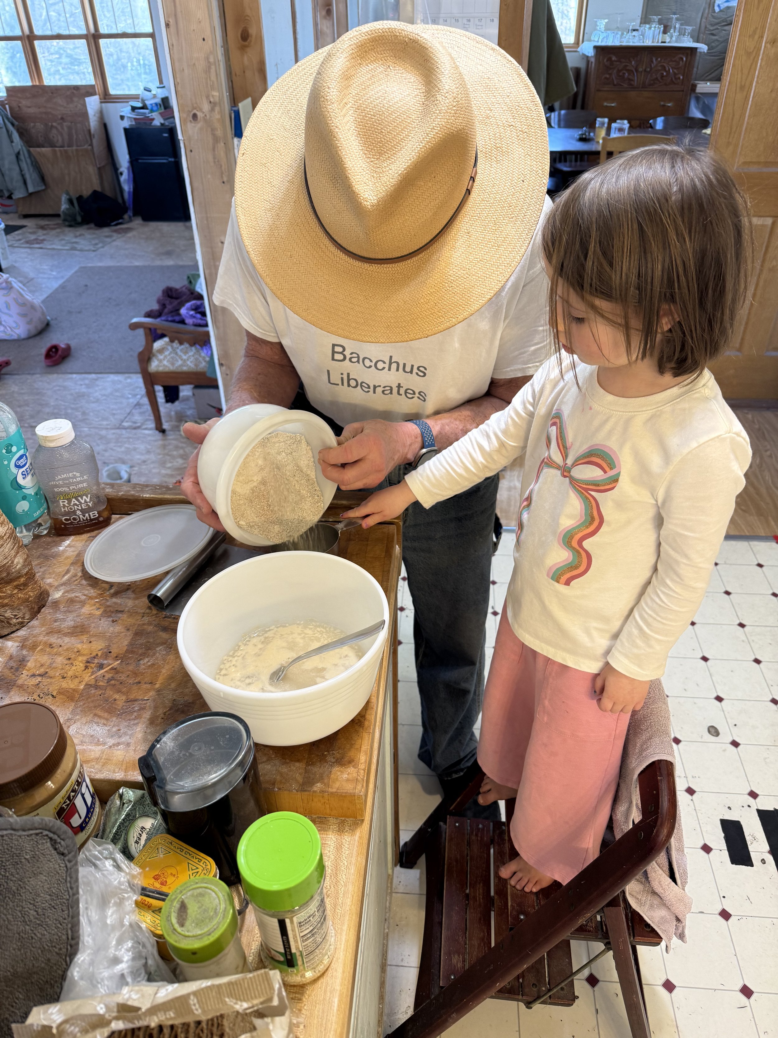 Later in the day, GG#1 learned how to make her favorite bread: no knead baguettes.