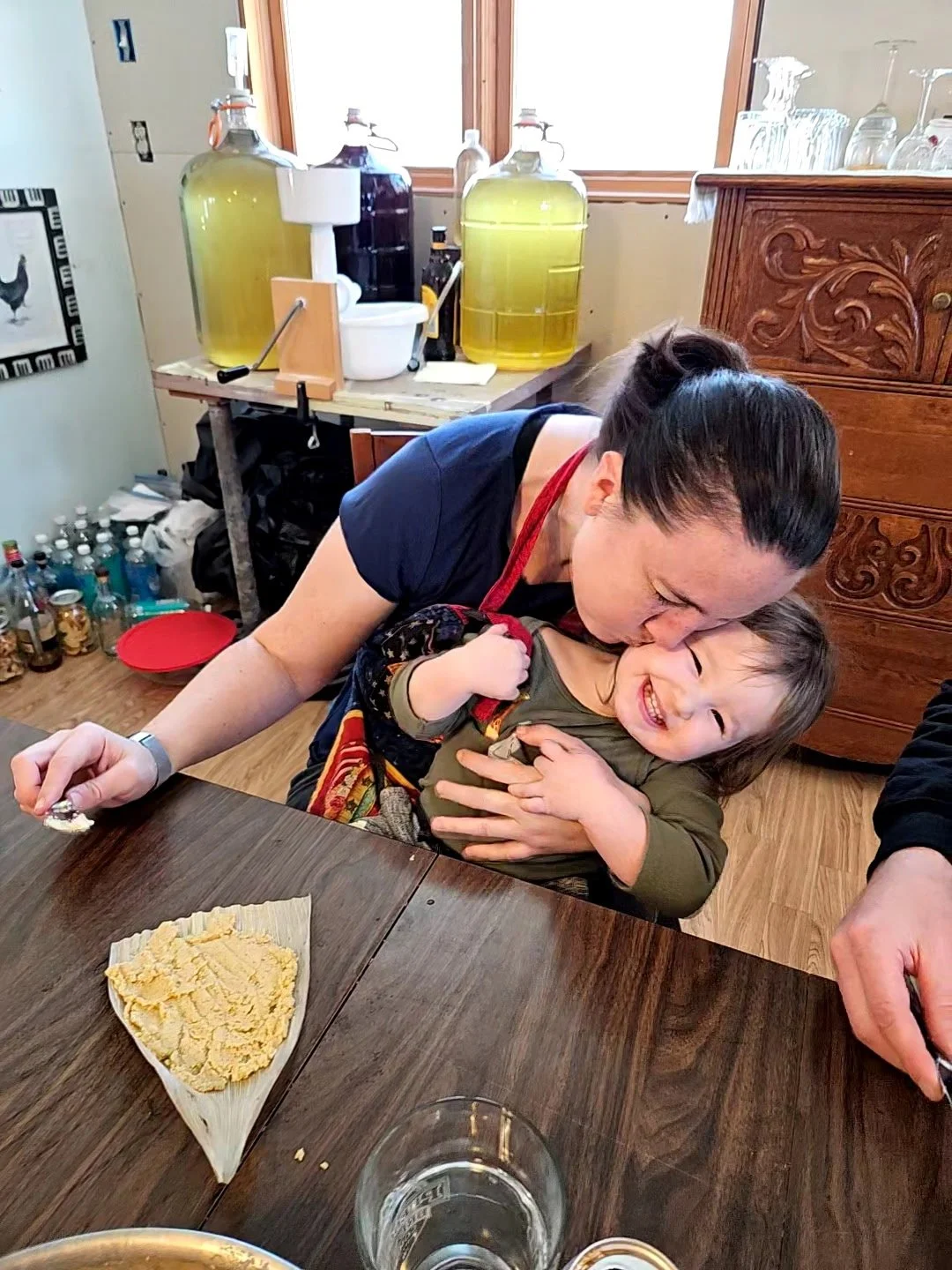 We squished pears today. We got 8 gallons of pear juice. 6 we will process into cider. We will do something delicious with the rest.