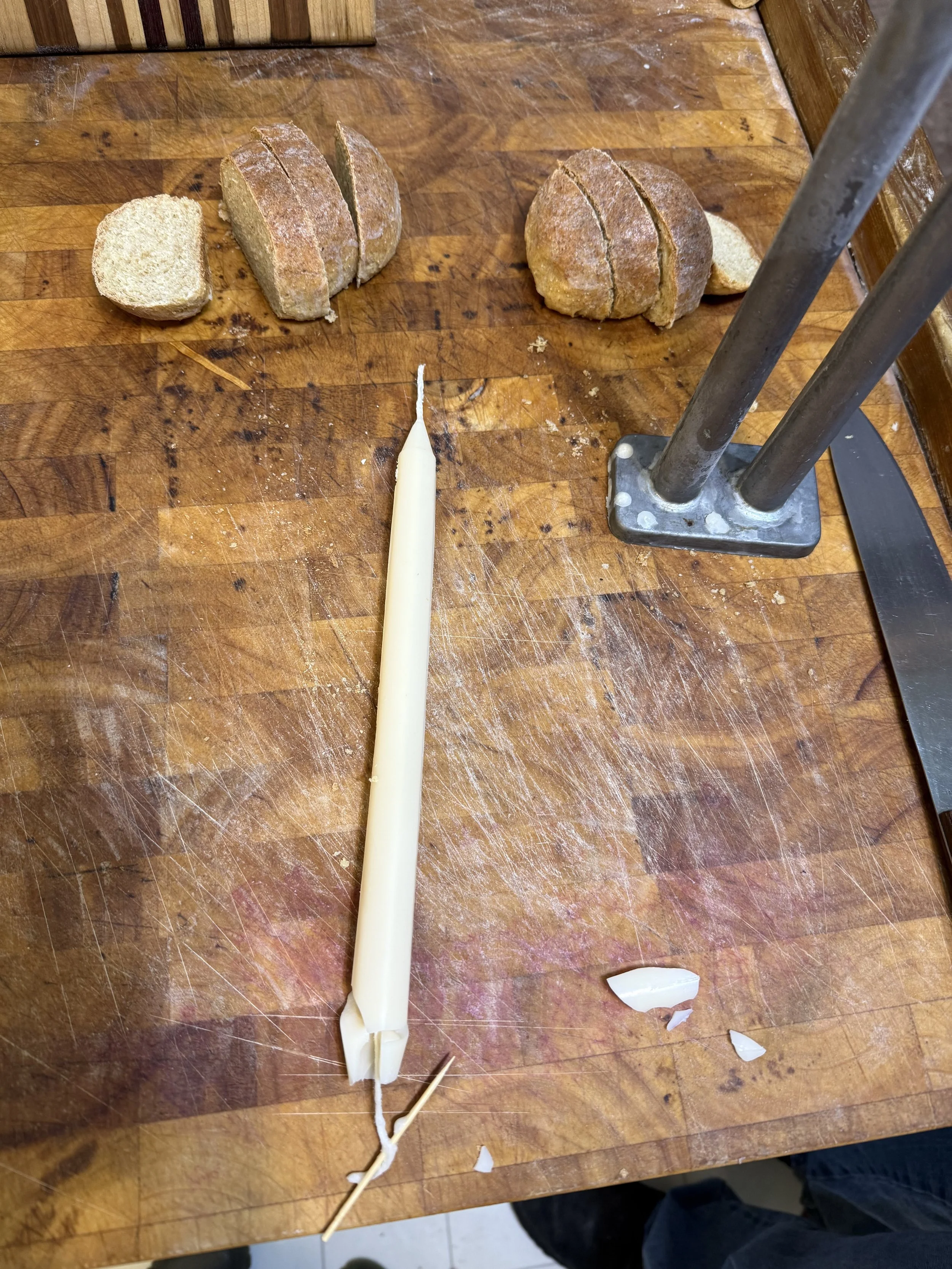 It burns well once the wick got below the tip of the candle. It doesn’t drip more than normal. It has no scent. We will call this experiment successful, if a bit more exciting than necessary.