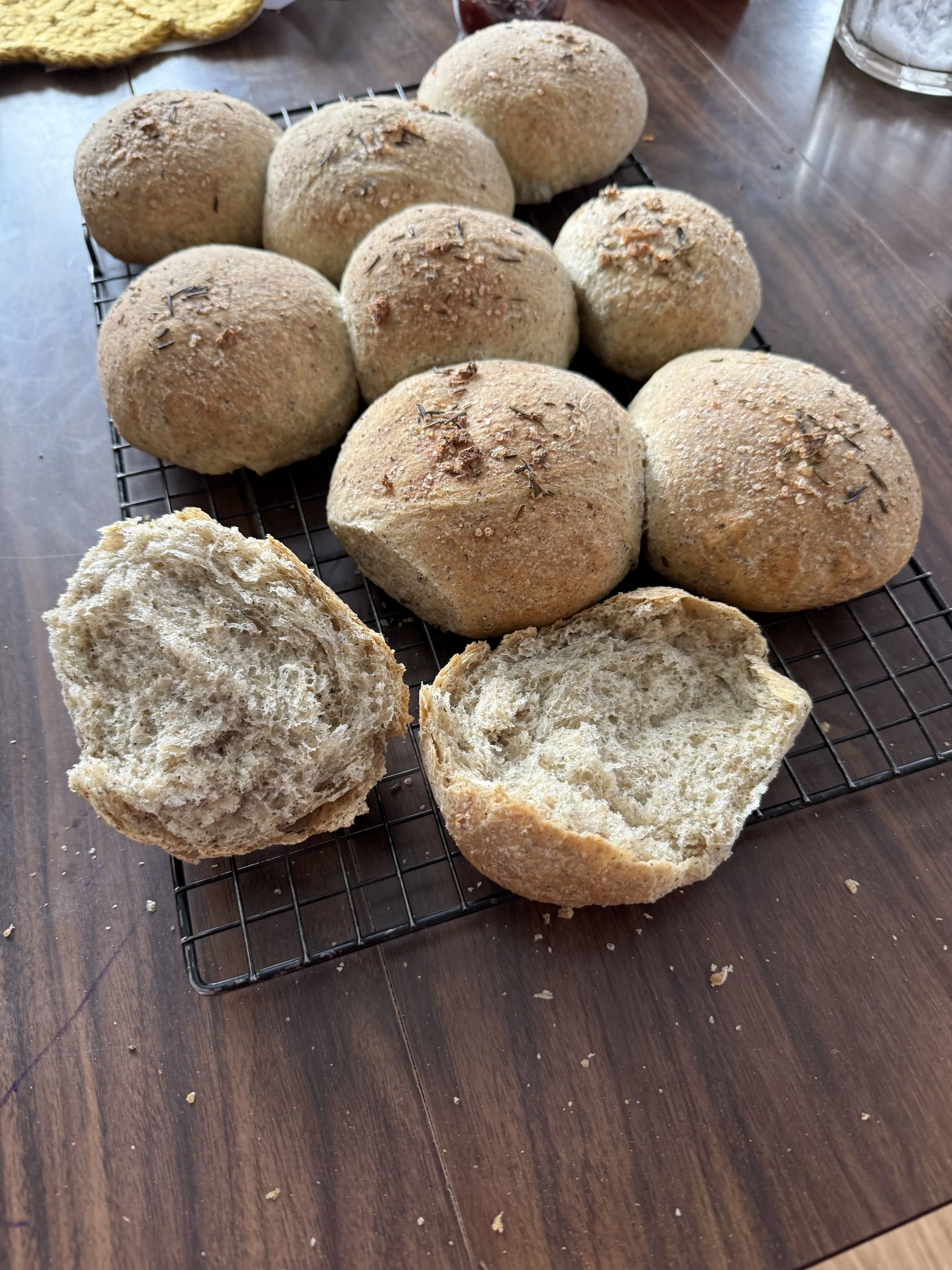 GG#2 then helped make spelt/black barley rolls. They went well with bean soup, which was better received than restaurant fare.