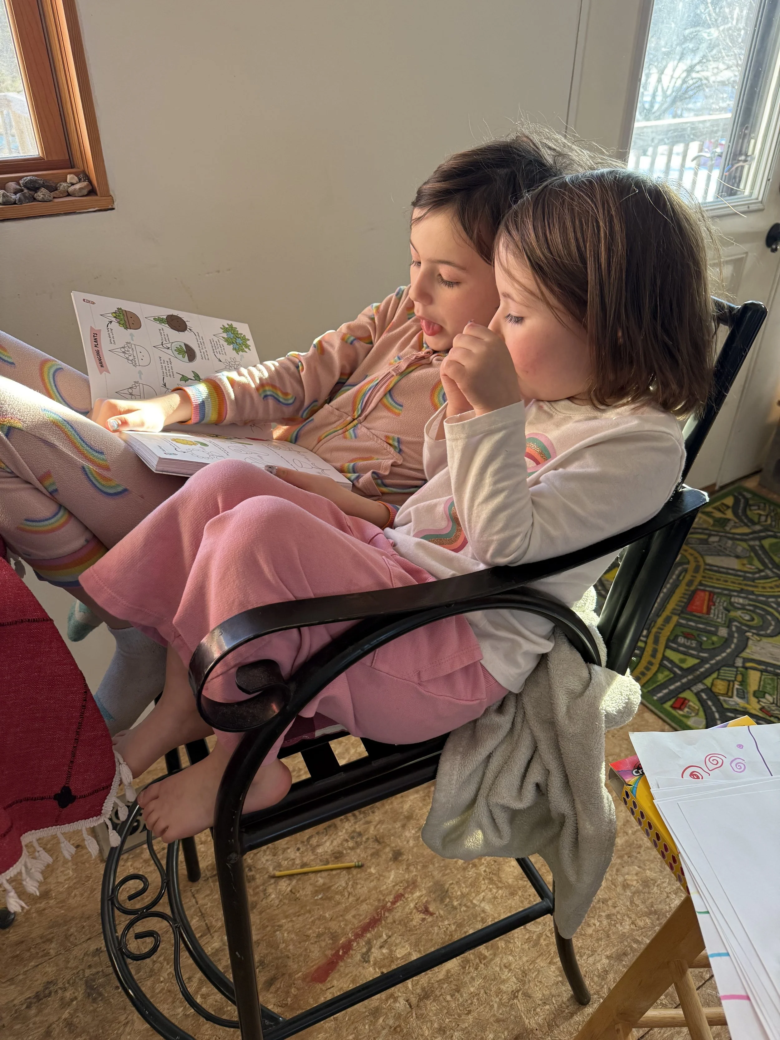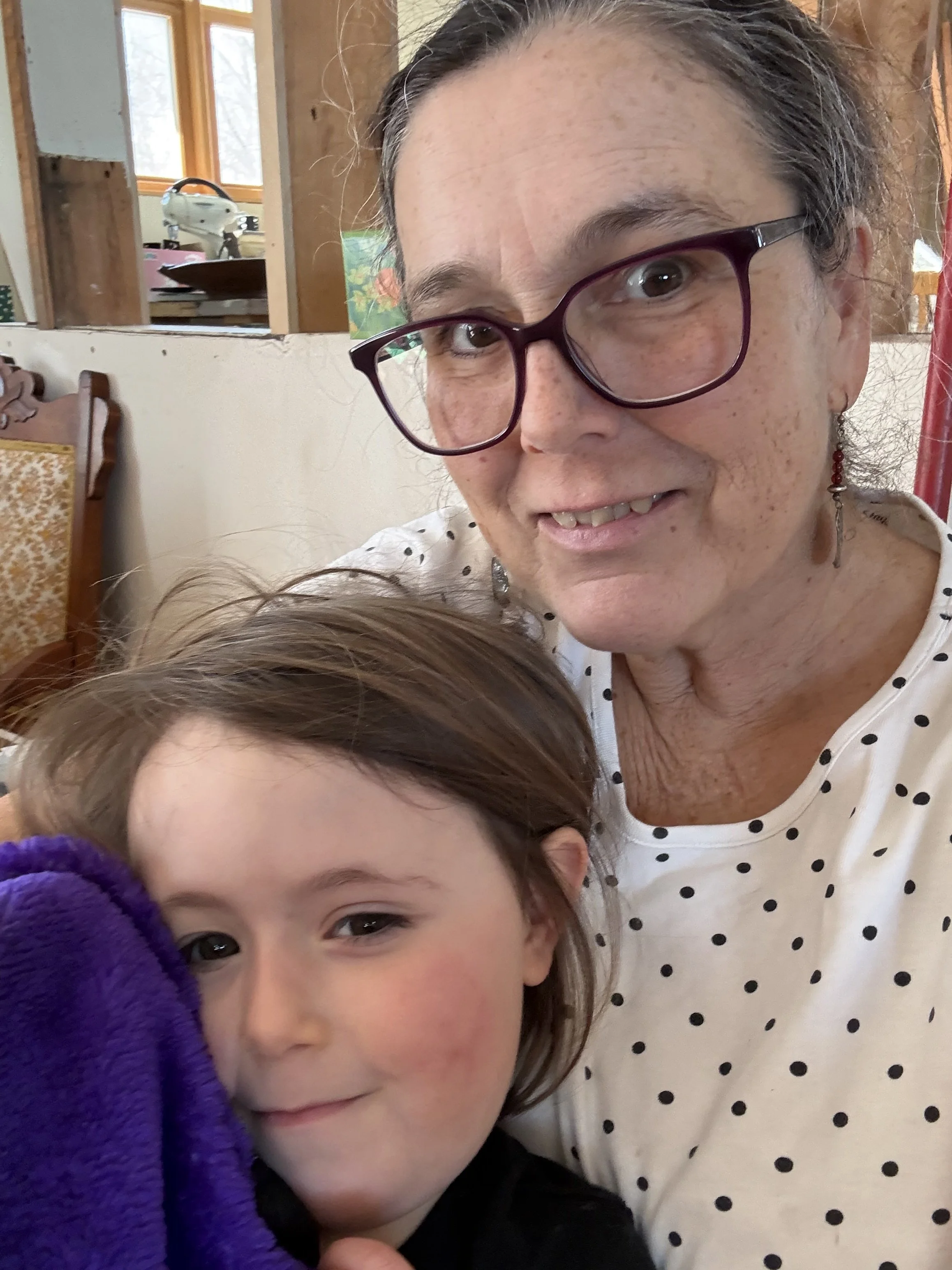 We got our own snuggle time later in the day. No photos of reading books, playing board games, walking in the woods, visiting fuzzy cows, picking up rocks, playing on swings, making snow castles, watching movies, eating popcorn, and other delights. They were happy to go home on Day#4, but also gave us big hugs and promises to visit again. Caring for children is hard work, but the best use of time ever.
