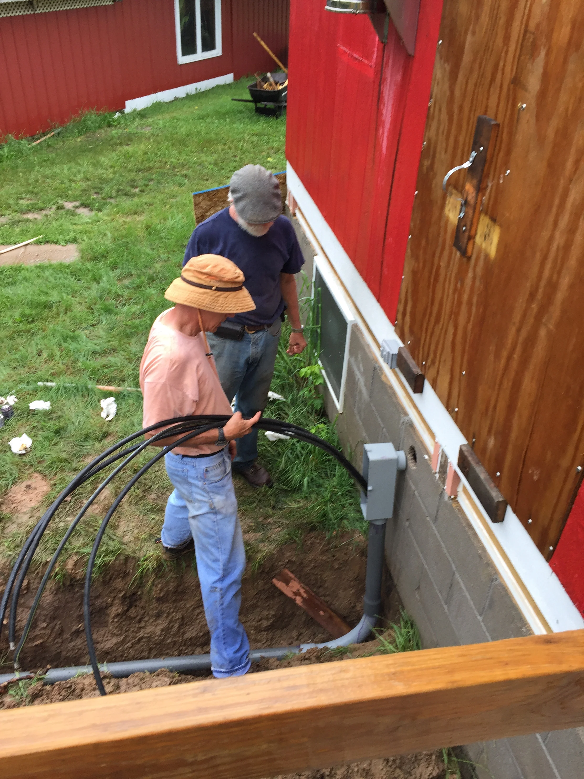 They did work well into the night, connecting the old wires to the new. Not pictured: various runs into town for parts. It always happens.