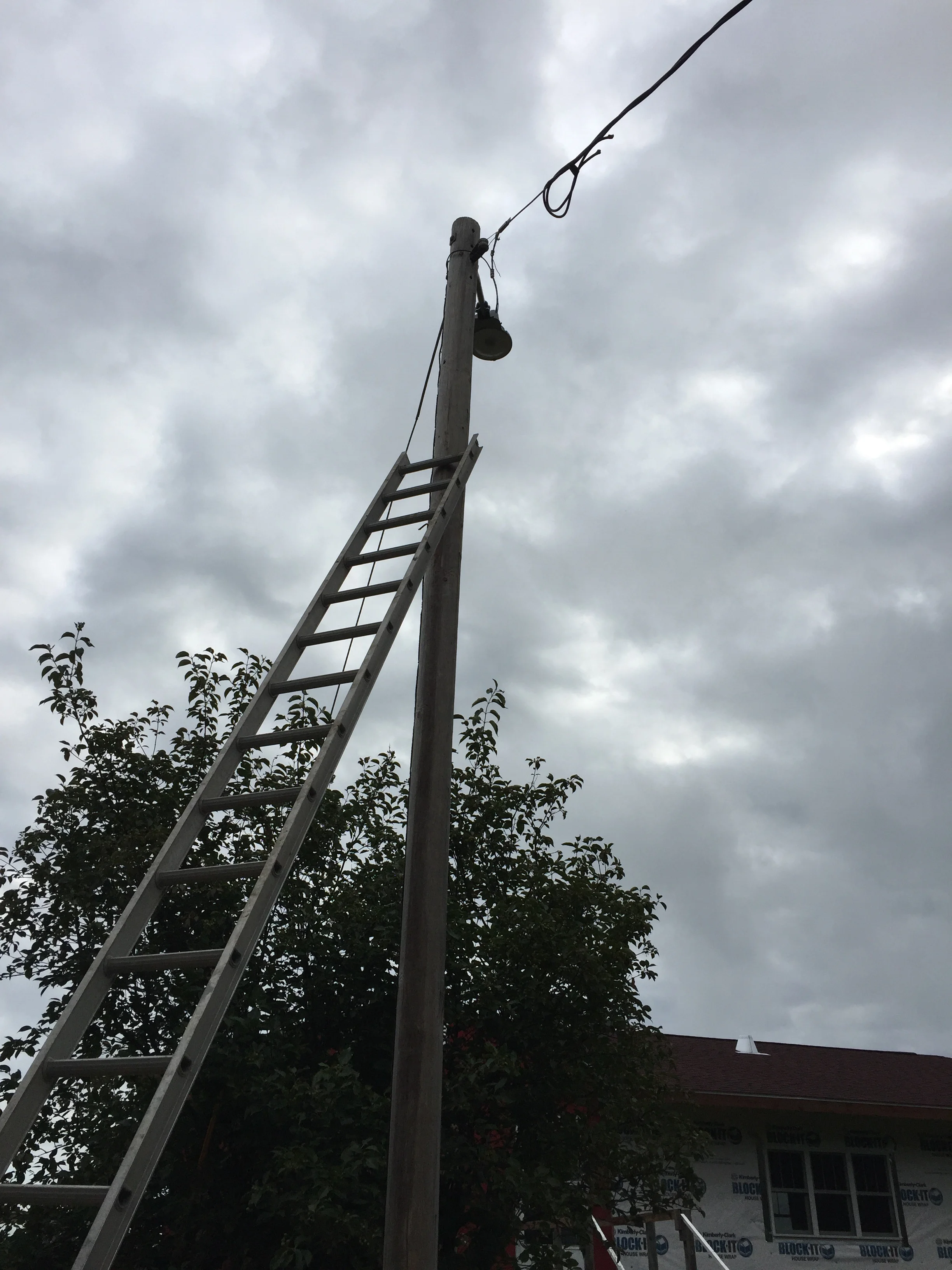 The 100 amp wire came down and the 200 amp went up. The tricky part was raising the wires in the conduit and holding them in place while Douglas secured them to the pole.