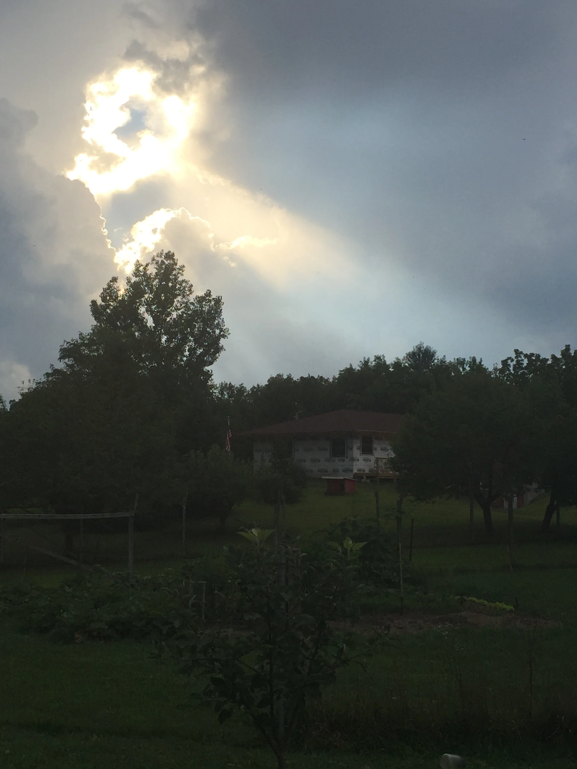 Today, we started our first fire in our wood burning stove, and the mulberry let down her tresses.