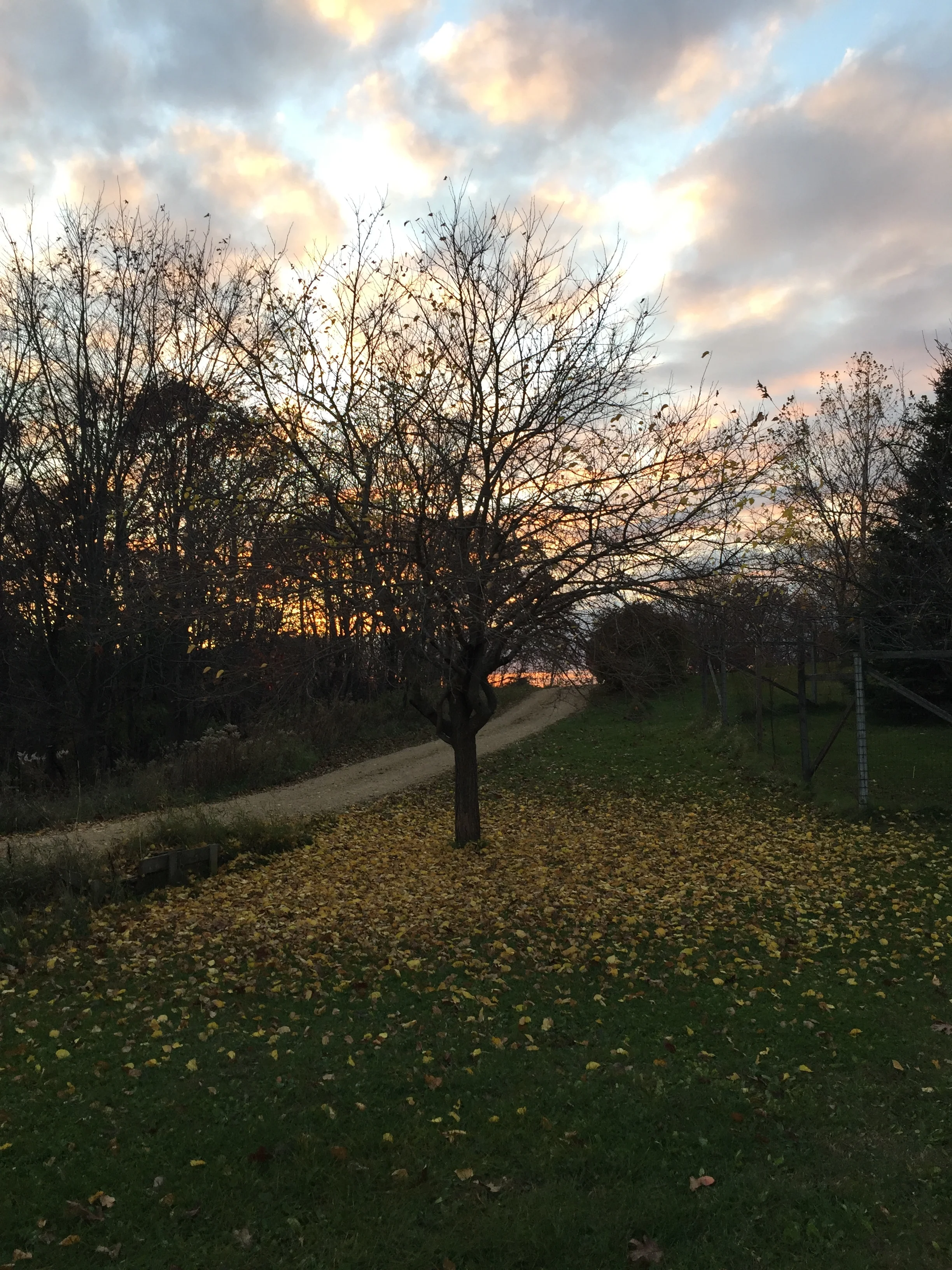 When I started, the mulberry tree stood resplendent in fall foliage.
