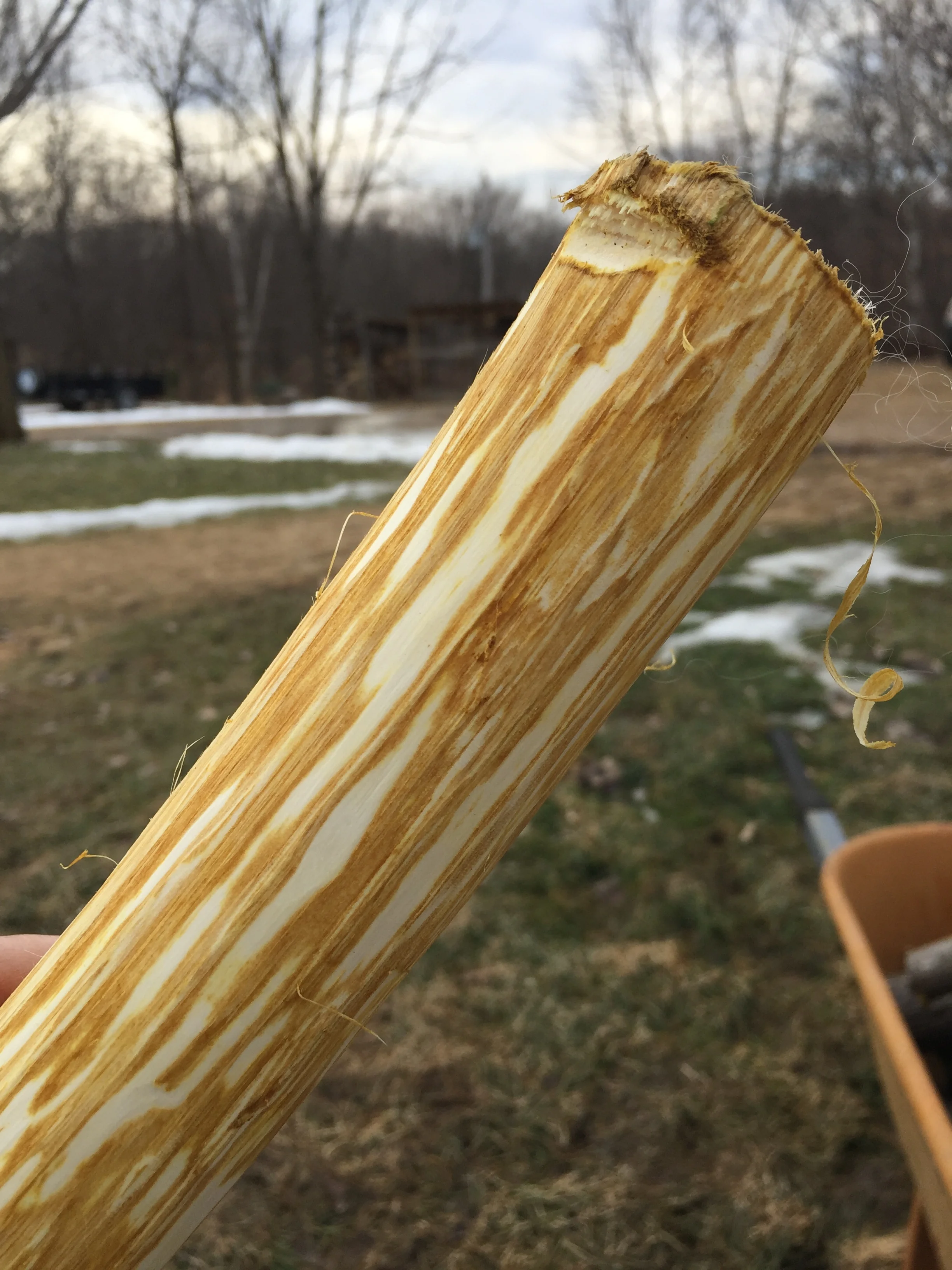Sap ran freely from the cuts. It was slightly sweet and nutty tasting. Box elder is related to maples, having winged seed pods.