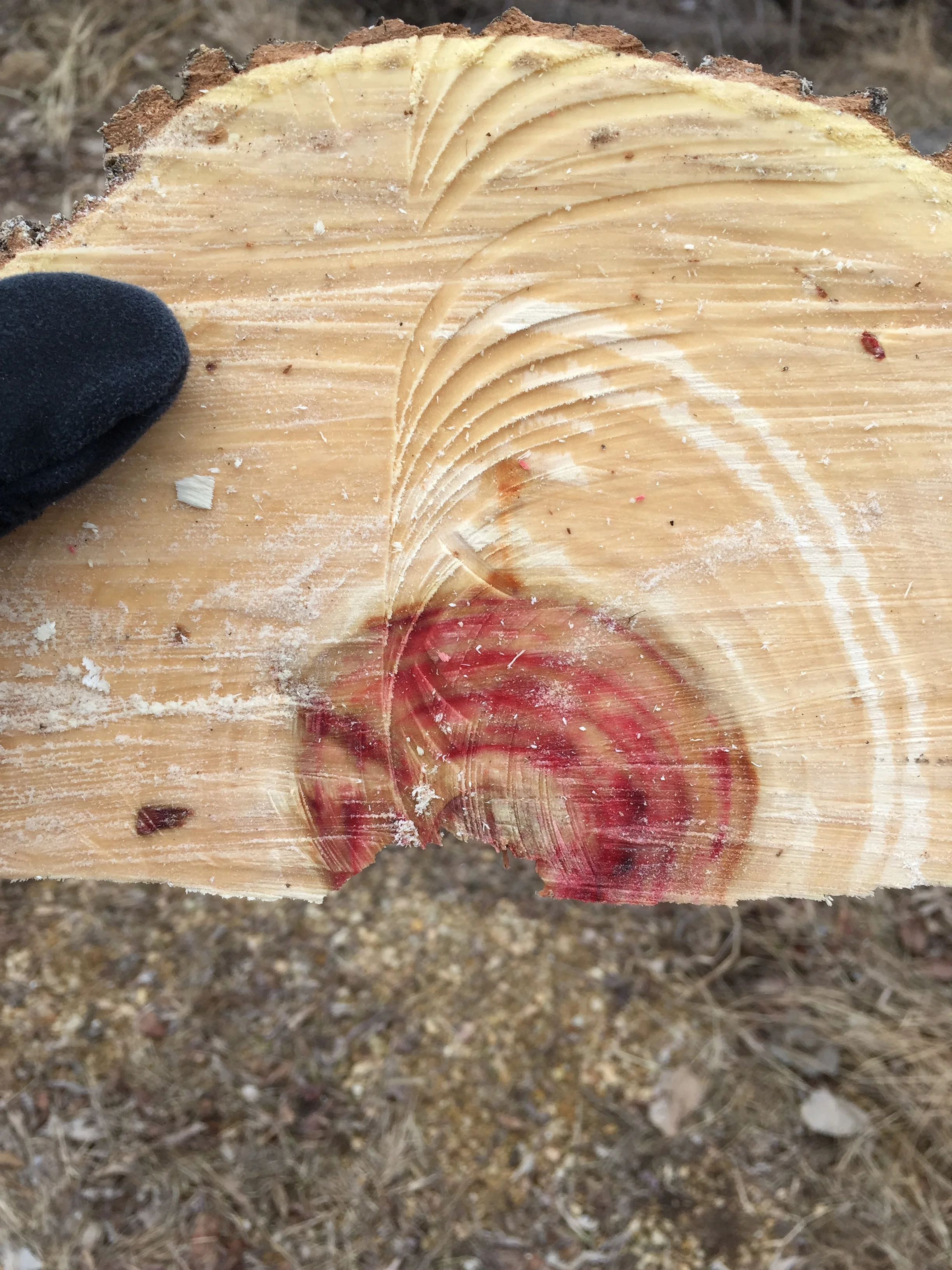 Box elder tends to have colored heartwood. This one is red, but can be blue or yellow.